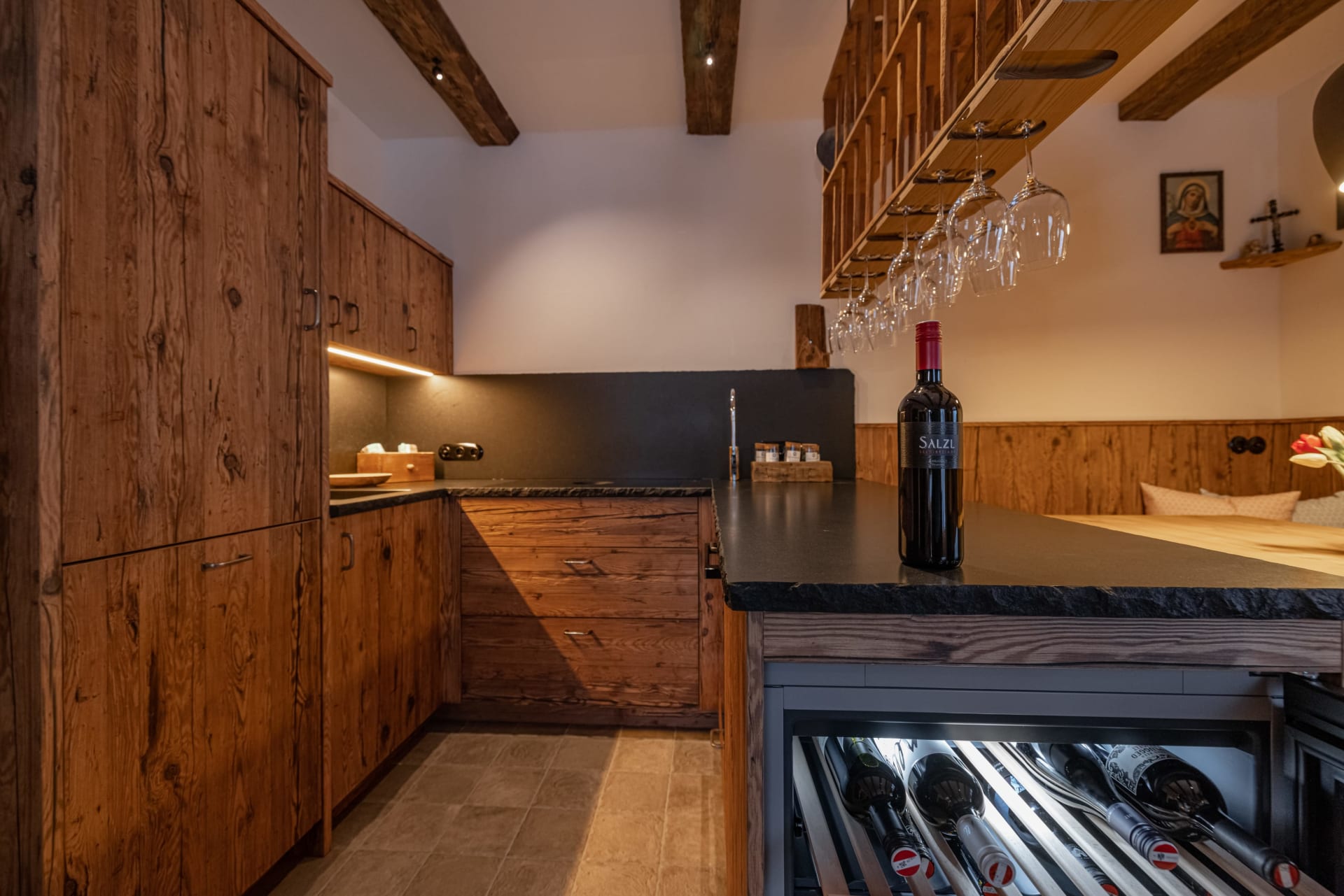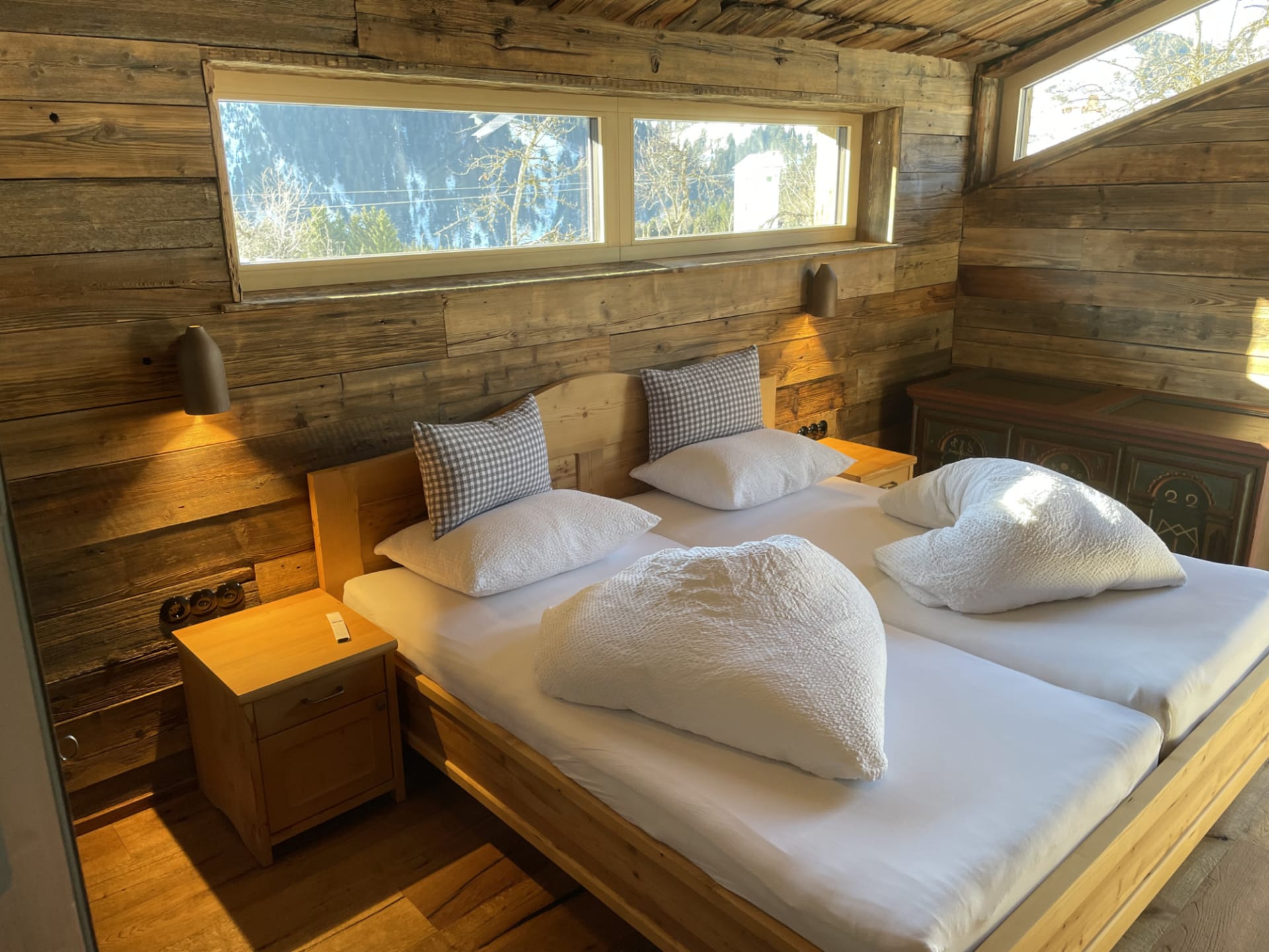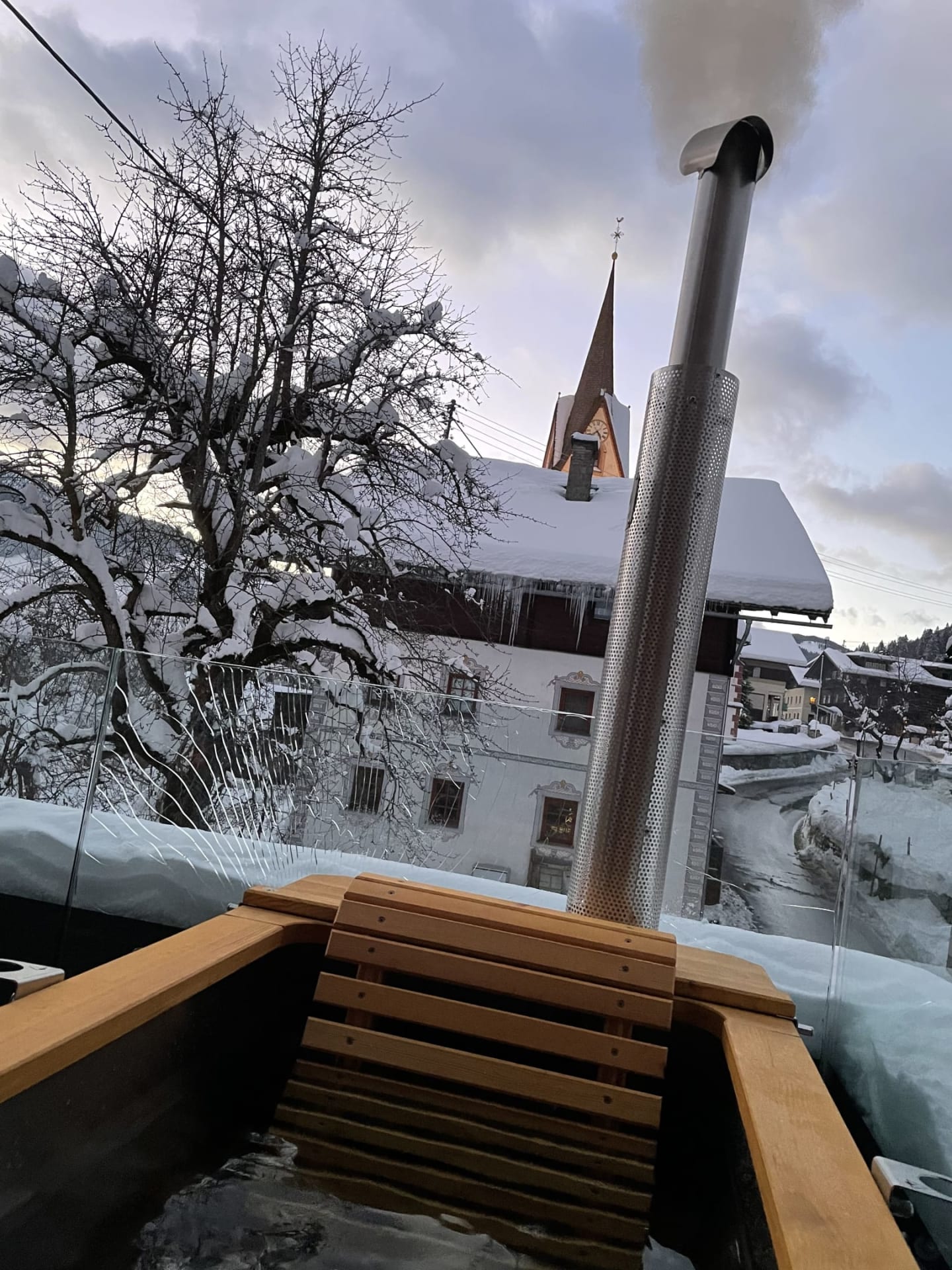 Ihre private Auszeit beginnt hier: Ein ganz persönlicher SPA-Bereich mit Außensauna (finnisch, bio & Infrarot), die einzigartige Feuer-Wasser-Wanne unter freiem Himmel, ein Ofenfeuer, das wohlige Wärme spendet, sowie ein stilvolles Badezimmer mit echten Alpensteinen laden zum Entspannen ein. Drei gemütliche Schlafzimmer, eine großzügige Wohnküche und zwei Dachterrassen schaffen den idealen Rahmen für wertvolle Zeit mit Familie oder Freunden.