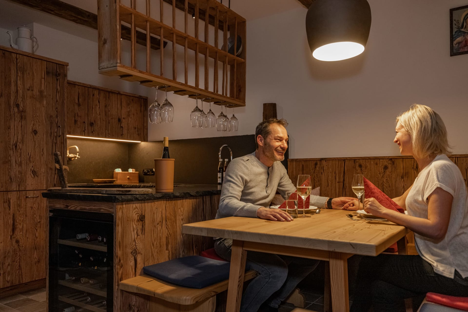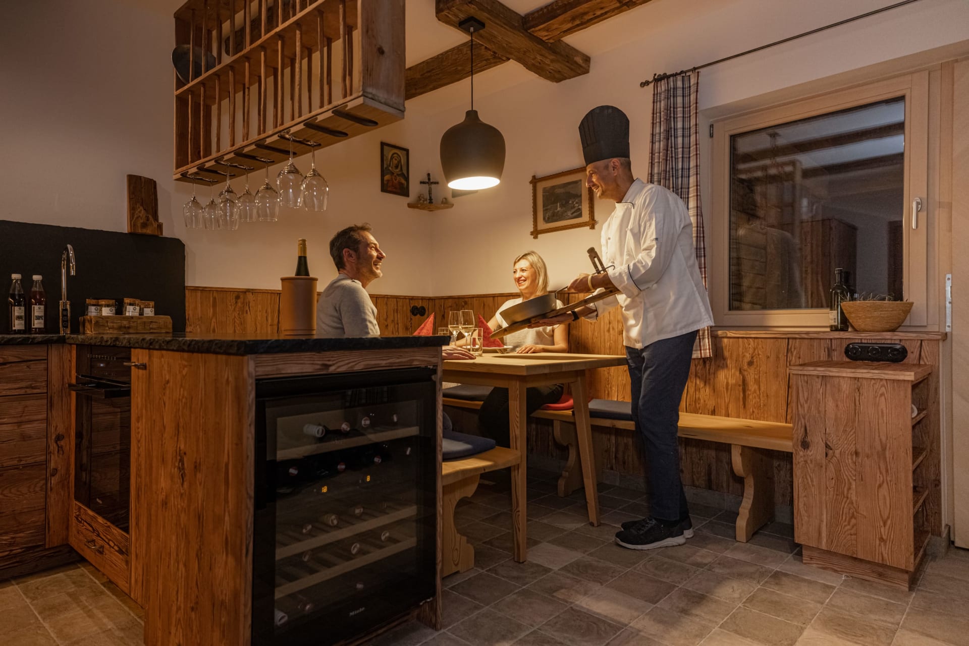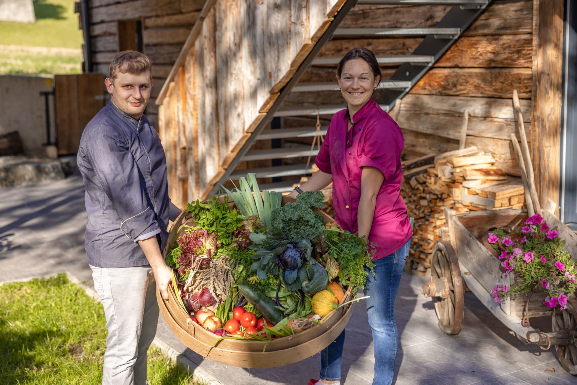 Jeden Morgen erwartet Sie ein reich gefüllter Frühstückskorb mit hofeigenen Produkten, auf Wunsch servieren wir Ihnen auch das Abendessen direkt ins Chalet (gegen Aufpreis).