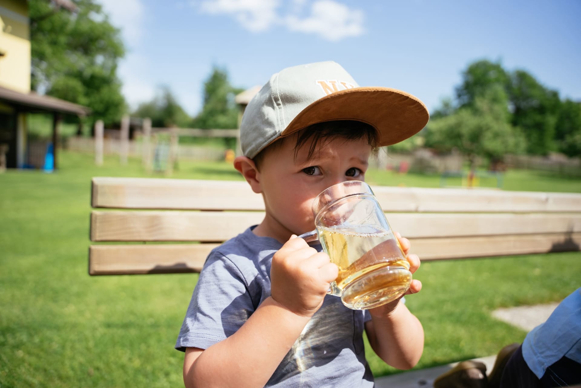 Frühstücksbuffet mit unseren hausgemachten Produkten wie Schinken, Salami, Aufstriche, Joghurt verschiedenen Säften, ... Einmal in der Woche (donnerstags - von Mitte Juni bis Anfang September) findet der Grillabend für unsere Gäste statt.