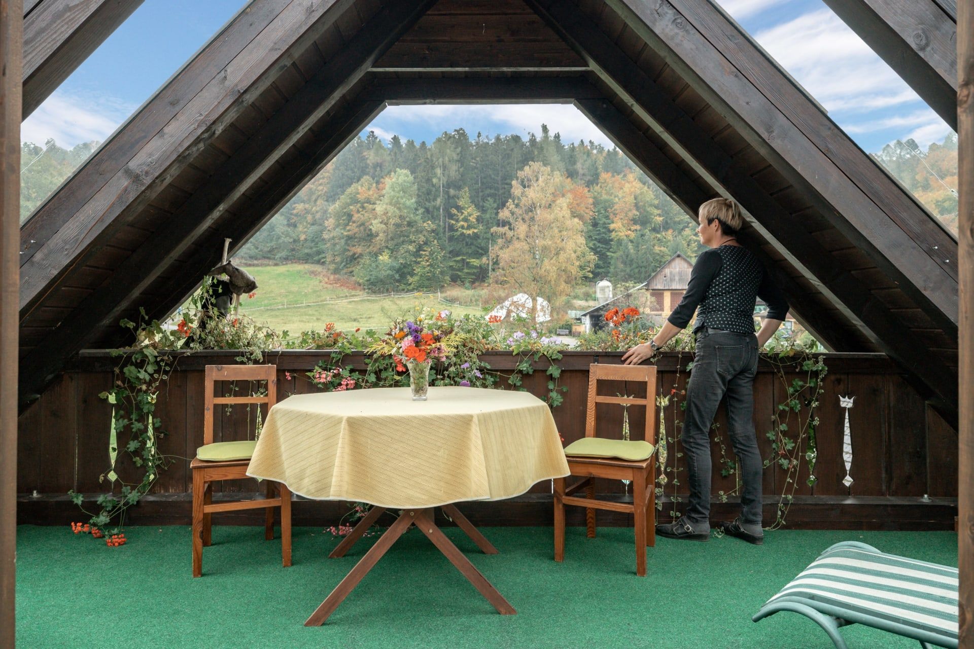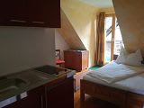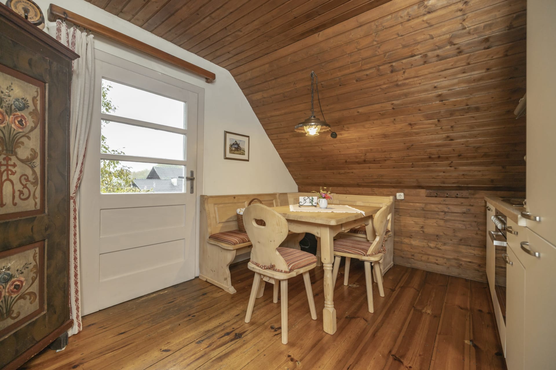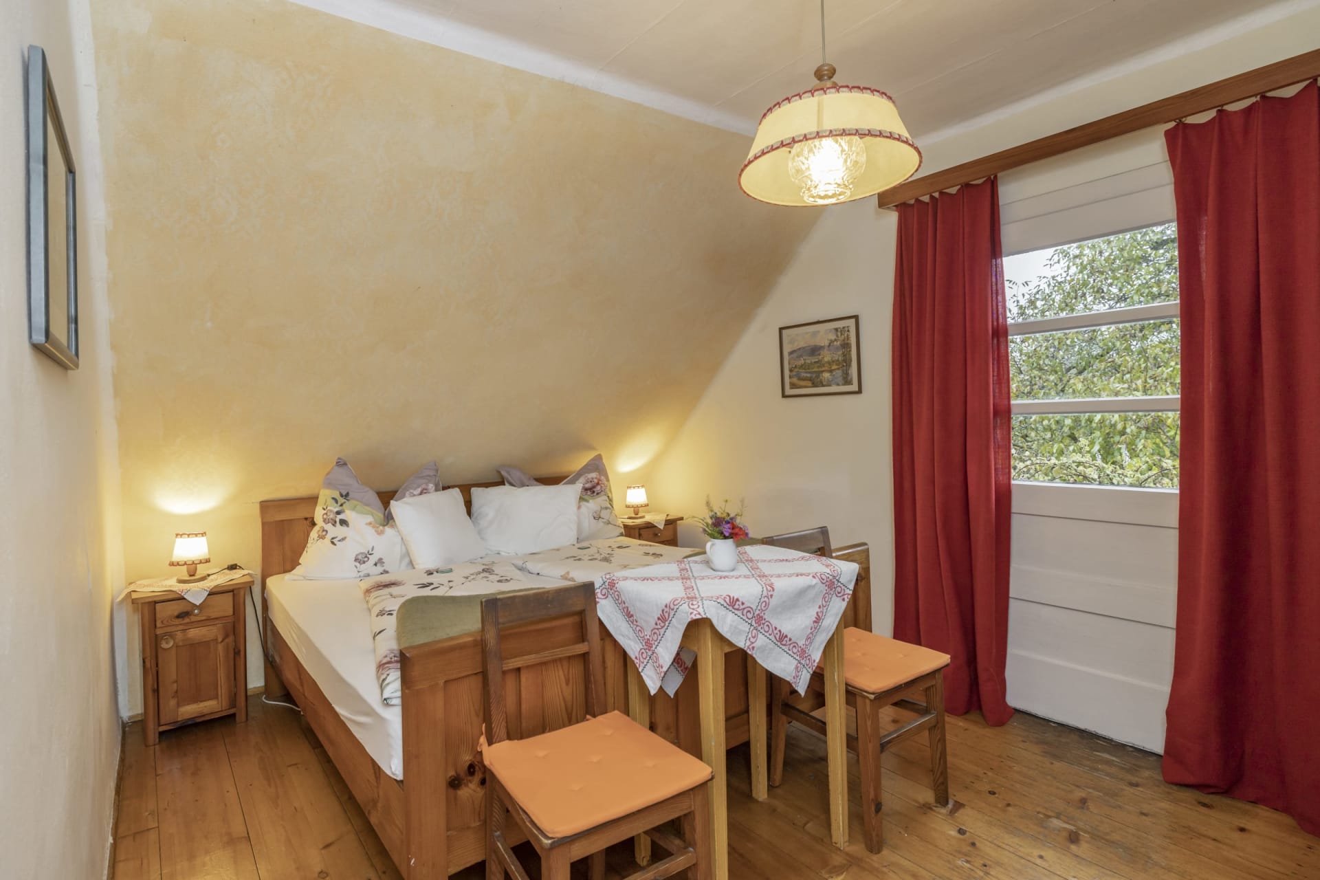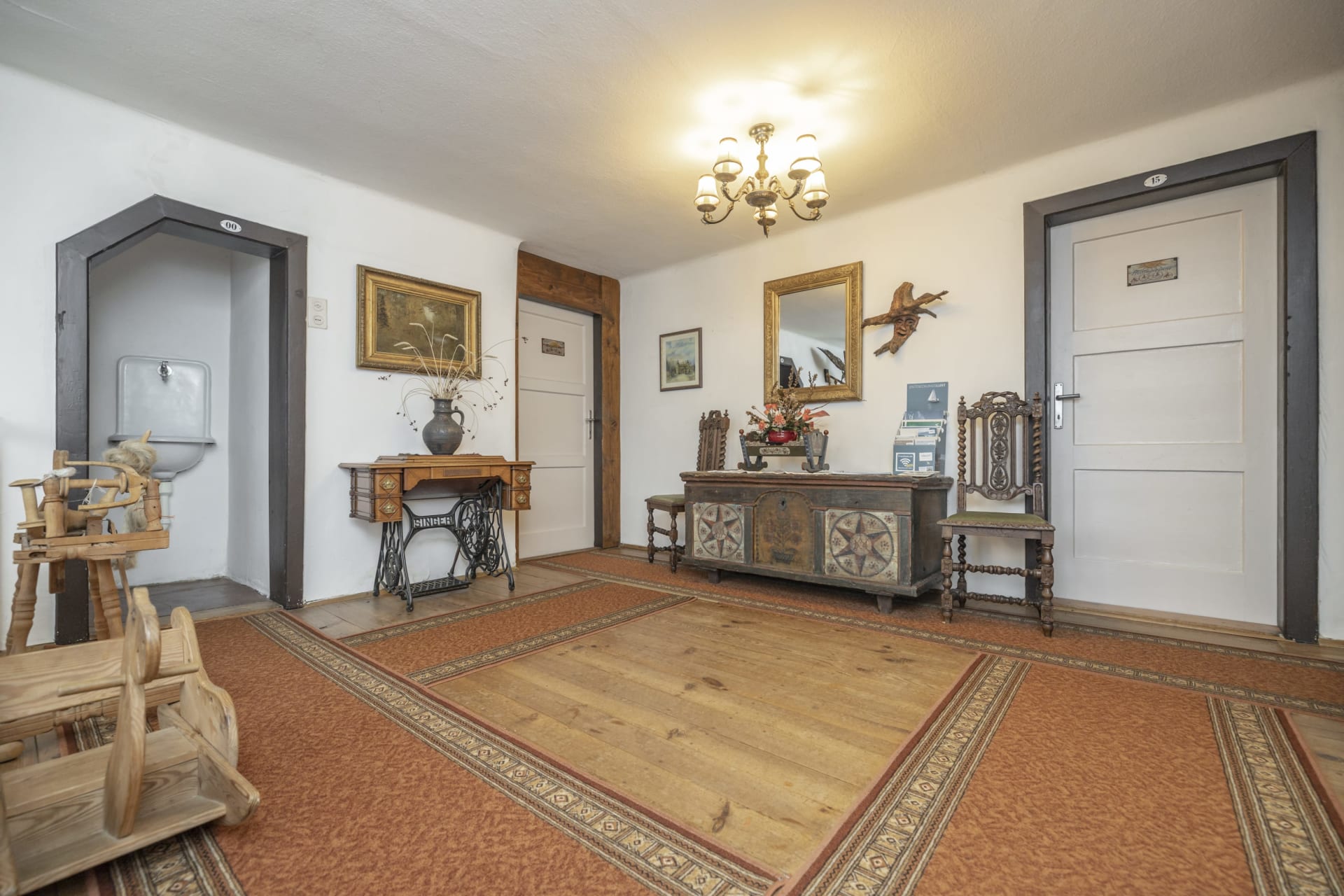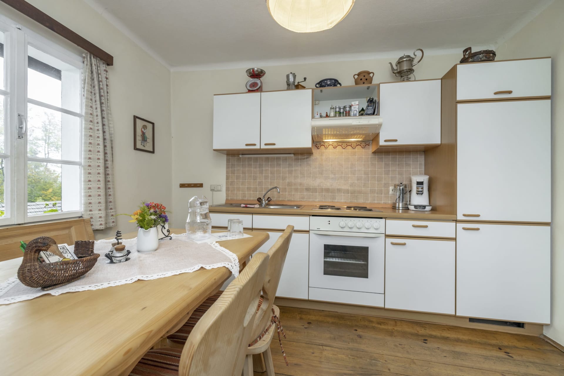 Abendsonnewohnung im 2. Stock mit großem Balkon nach Westen - wo man das Hofleben wunderbar miterleben kann. Man sieht den hofeigenen schönen Nussbaumplatz, die Hofkapelle und das Stallgebäude mit dem Reitplatz wo gleich dahinter der Wörthersee herausblitzt. Zusätzlich hat die Abendsonnewohnung eine mit Glaseinbau überdachte Dachterrasse nach Süden ausgerichtet mit Tisch und Stühlen und zwei bequeme Liegestühle zugehörig zum Zweibettzimmer Mittagssonne mit SAT-TV, Dusche und kleiner Küche. Von dieser Dachterrasse aus sieht man auf das hauseigene Biotop, Pferdewiese und den Nachbarhof, der Blick schweift weiter zum hofeigenen blumengeschmückten Bauernhaus - die Residenz der Großeltern. Die Abendsonnewohnung hat eine gemütliche Wohn-/Essküche, eine Pantryküche , zwei SAT-TV, drei separate Schlafräumen für bis zu 6 Personen, zwei Duschen und ein separates WC.