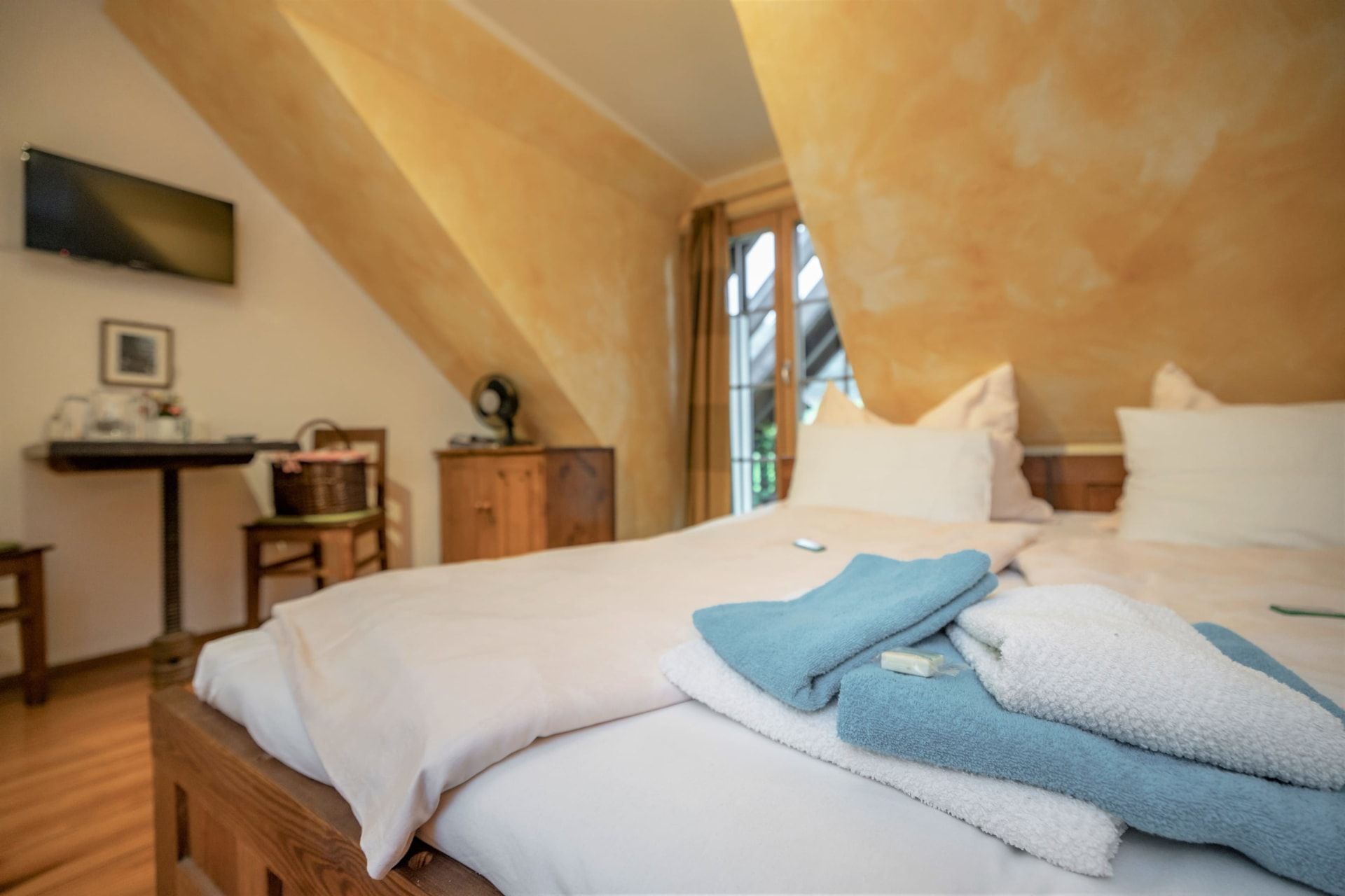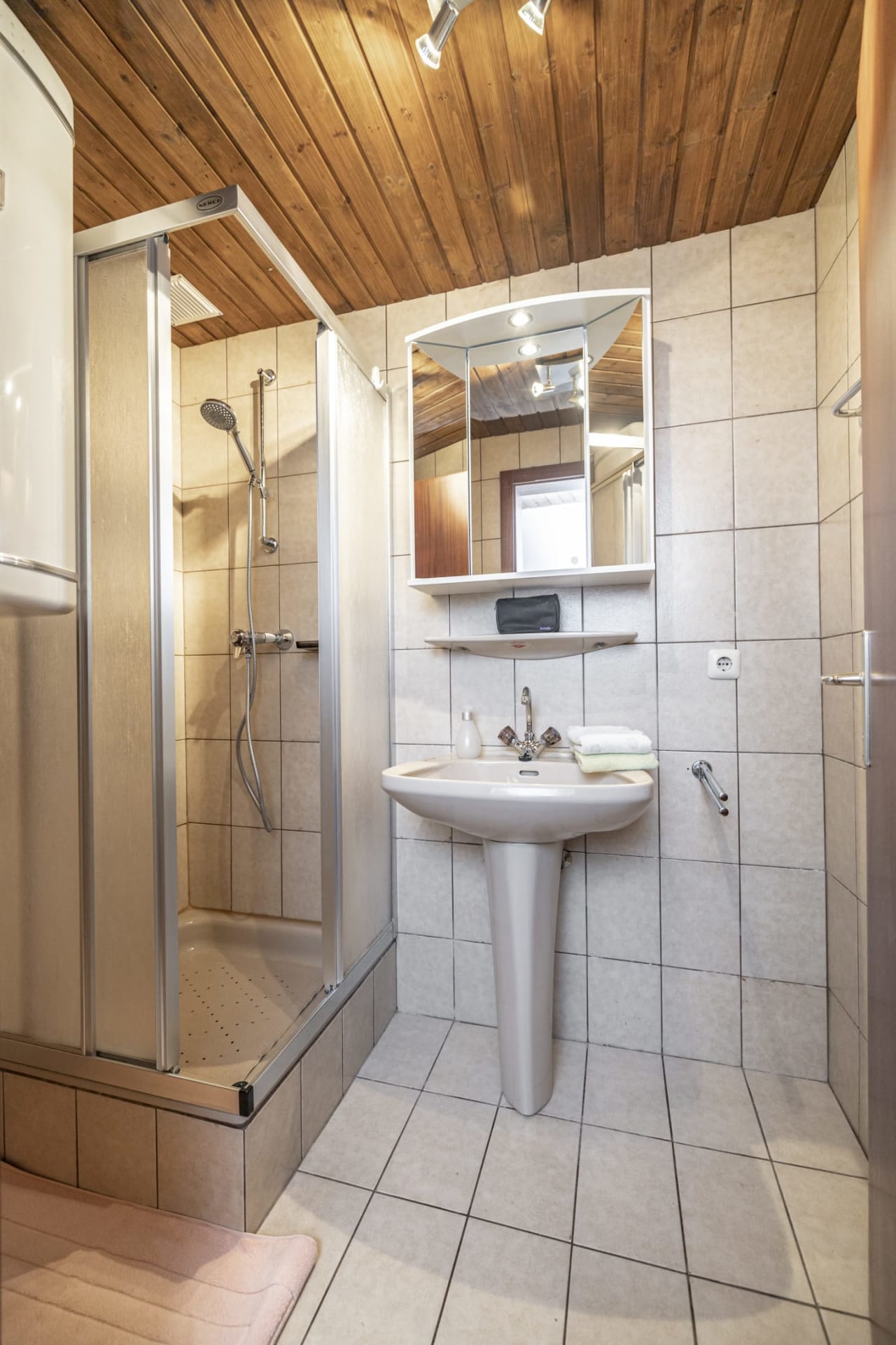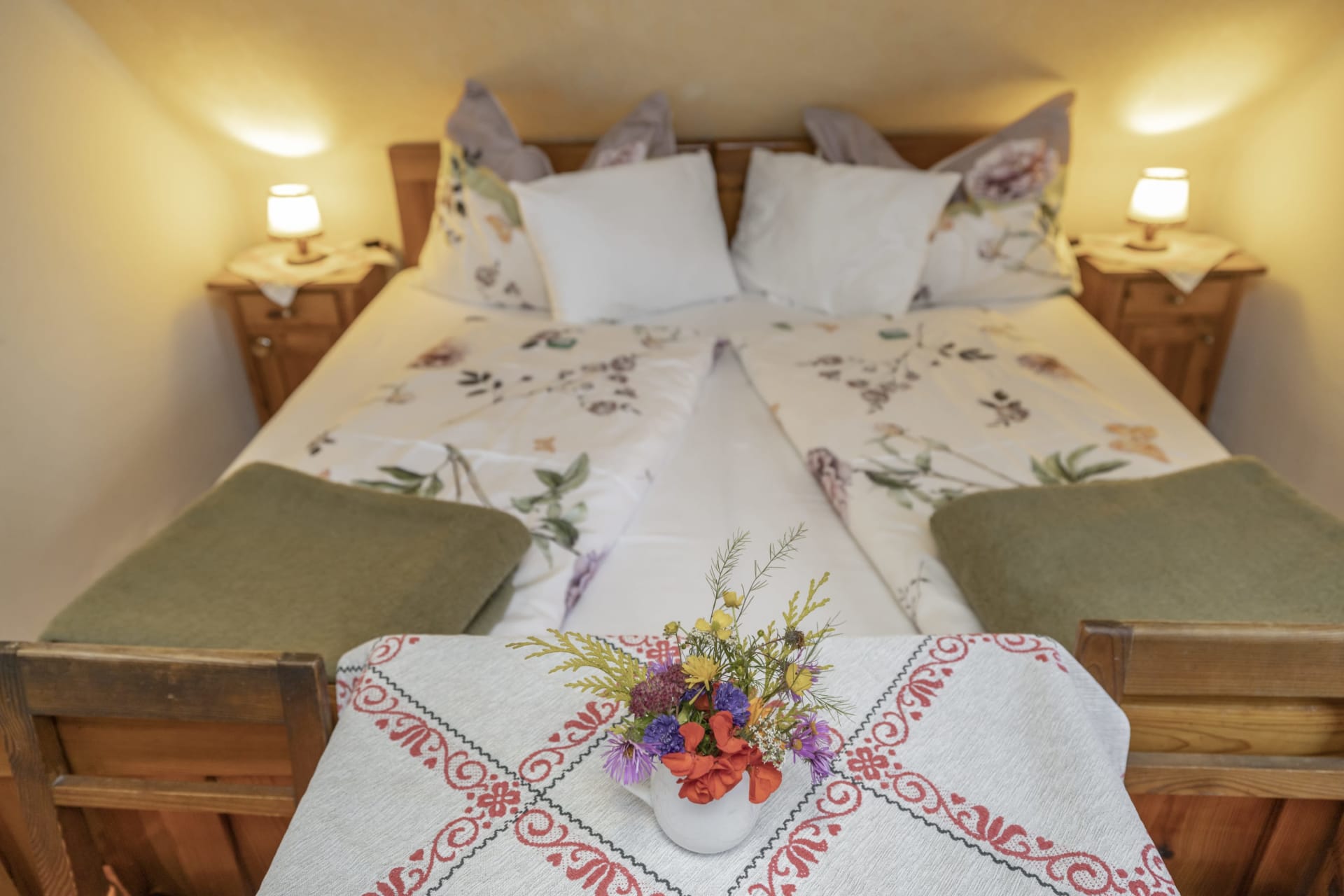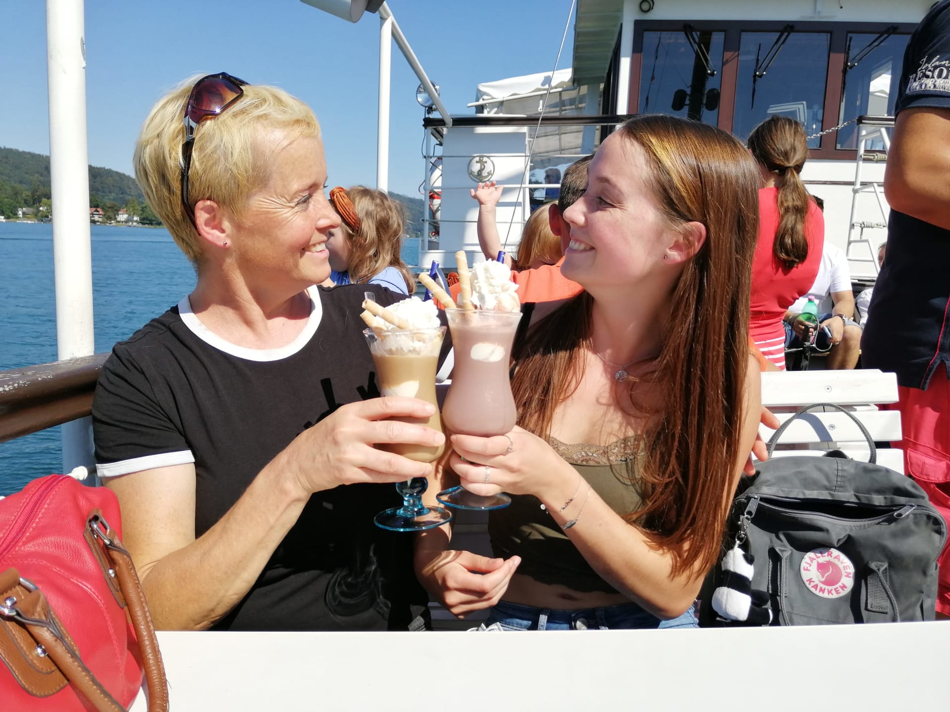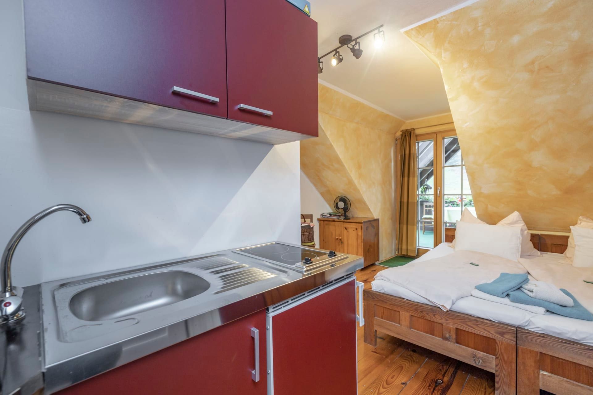 Abendsonnewohnung im 2. Stock mit großem Balkon nach Westen - wo man das Hofleben wunderbar miterleben kann. Man sieht den hofeigenen schönen Nussbaumplatz, die Hofkapelle und das Stallgebäude mit dem Reitplatz wo gleich dahinter der Wörthersee herausblitzt. Zusätzlich hat die Abendsonnewohnung eine mit Glaseinbau überdachte Dachterrasse nach Süden ausgerichtet mit Tisch und Stühlen und zwei bequeme Liegestühle zugehörig zum Zweibettzimmer Mittagssonne mit SAT-TV, Dusche und kleiner Küche. Von dieser Dachterrasse aus sieht man auf das hauseigene Biotop, Pferdewiese und den Nachbarhof, der Blick schweift weiter zum hofeigenen blumengeschmückten Bauernhaus - die Residenz der Großeltern. Die Abendsonnewohnung hat eine gemütliche Wohn-/Essküche, eine Pantryküche , zwei SAT-TV, drei separate Schlafräumen für bis zu 6 Personen, zwei Duschen und ein separates WC.
