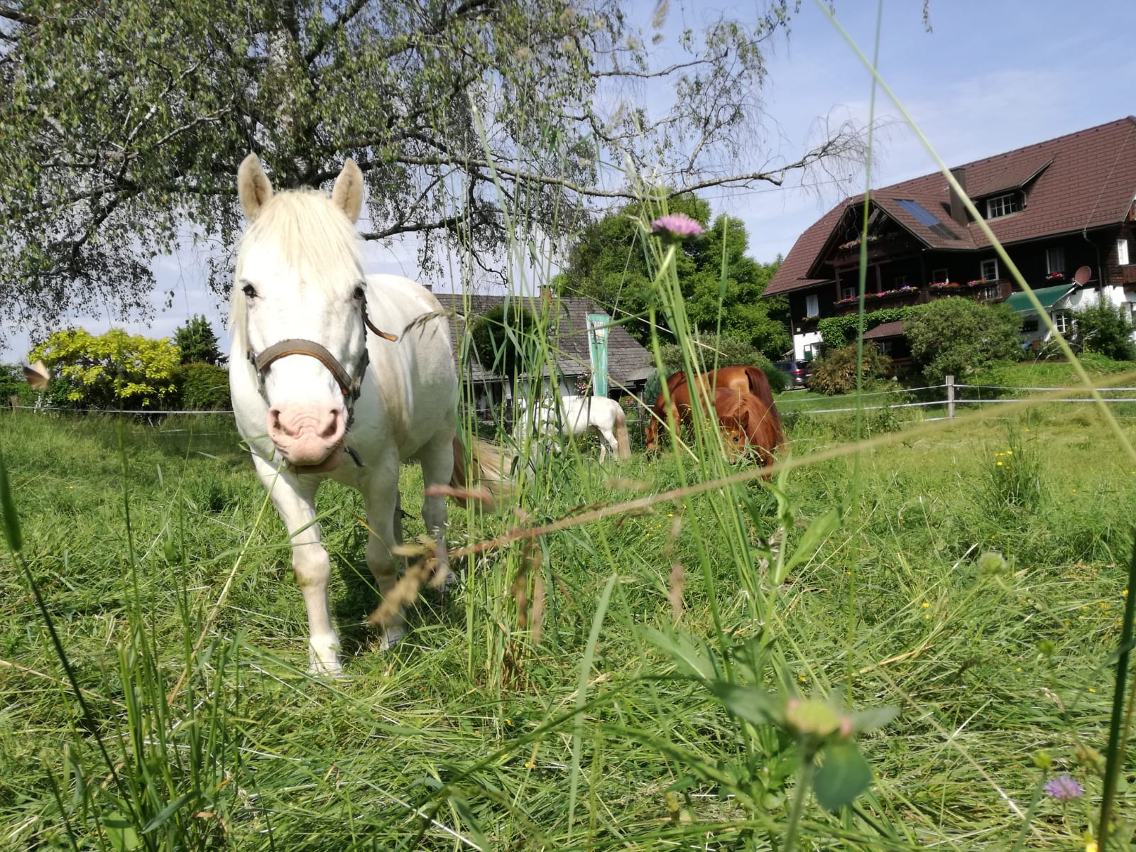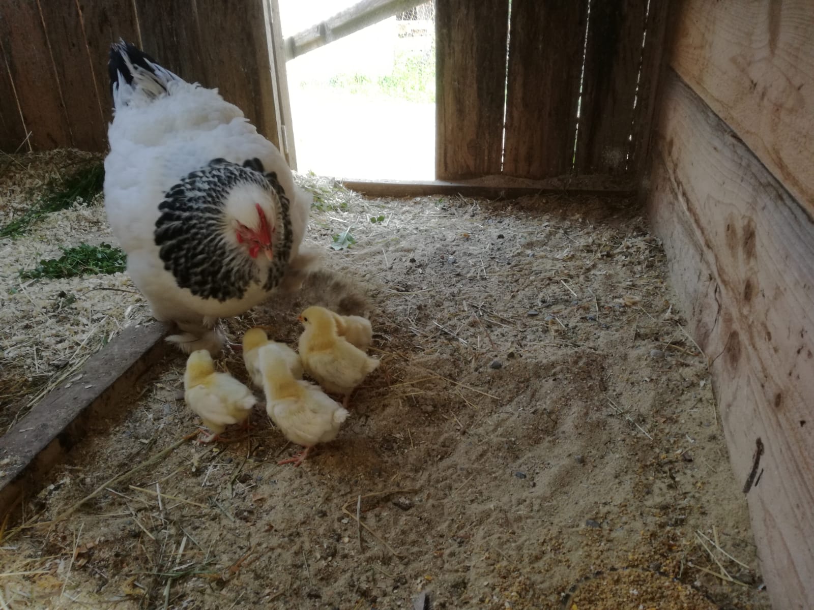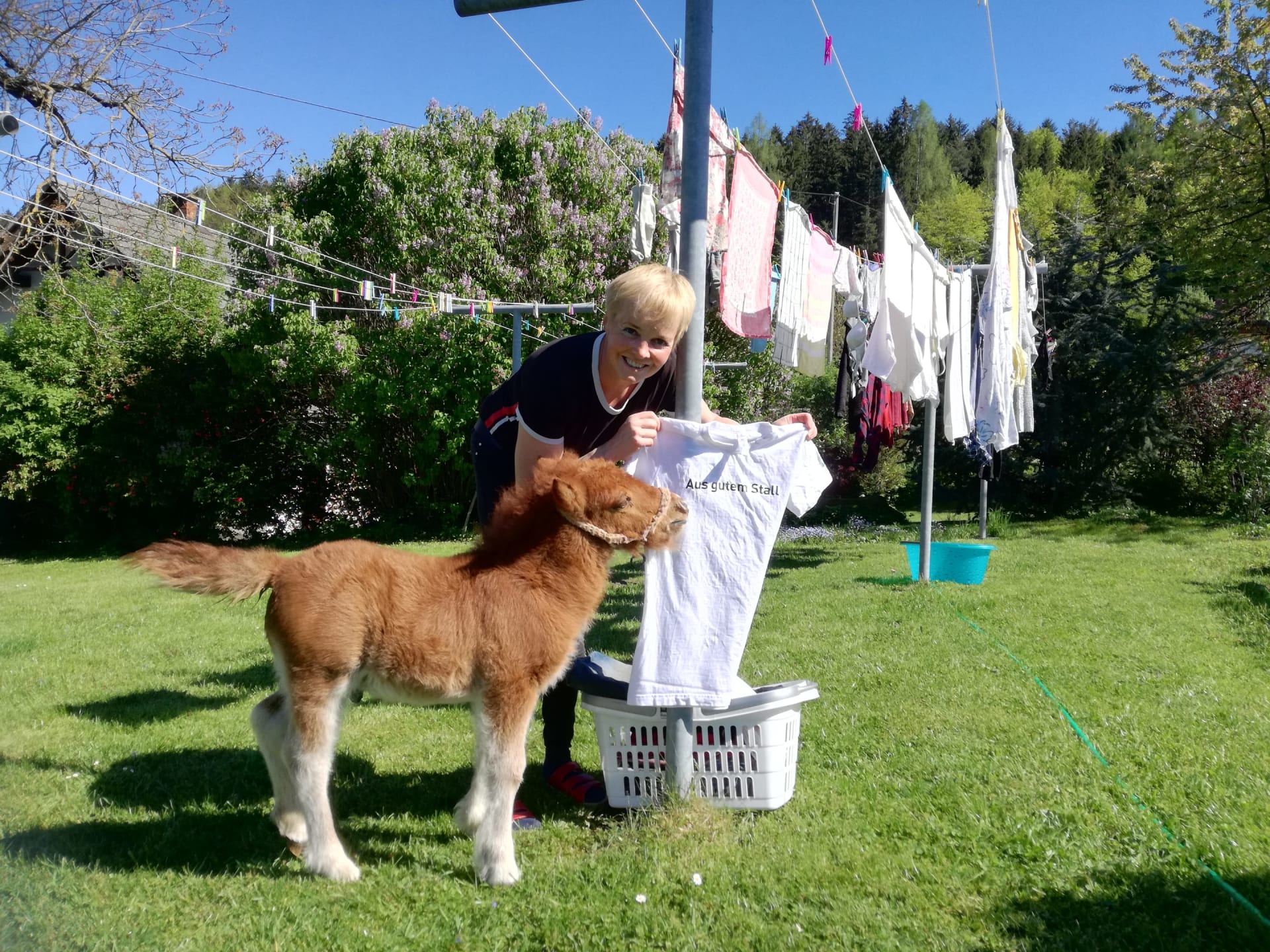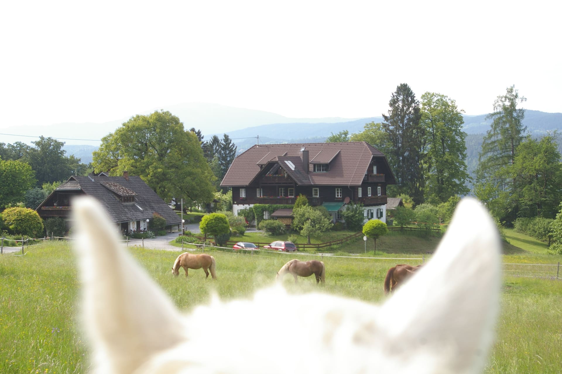 Mittagsonnewohnung im 2. Stock ist sehr effizient und praktisch für 1 bis 2 Personen ausgestattet mit Wohn-/Schlafzimmer gut ventiliert und abgeteiltem Sanitärbereich, wobei sich das WC außerhalb am Gang befindet. Es gibt eine Pantryküche mit 2 Kochplatten, Spüle, ***Kühlschrank, Mikrowelle mit Backfunktion, Wasserkocher, Mixer, Stabmixer und ausreichend Geschirr, SAT-TV und einen großzügig teilweise mit Glaseinbau überdachten Balkon nach Süden ausgerichtet mit einem runden Tisch und 2 Sessel. Vom Balkon aus sieht man auf das hauseigene Biotop, Pferdewiese und den Nachbarhof, der Blick schweift weiter zum hofeigenen blumengeschmückten Bauernhaus - die Residenz der Großeltern.