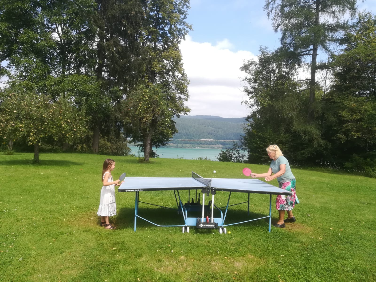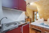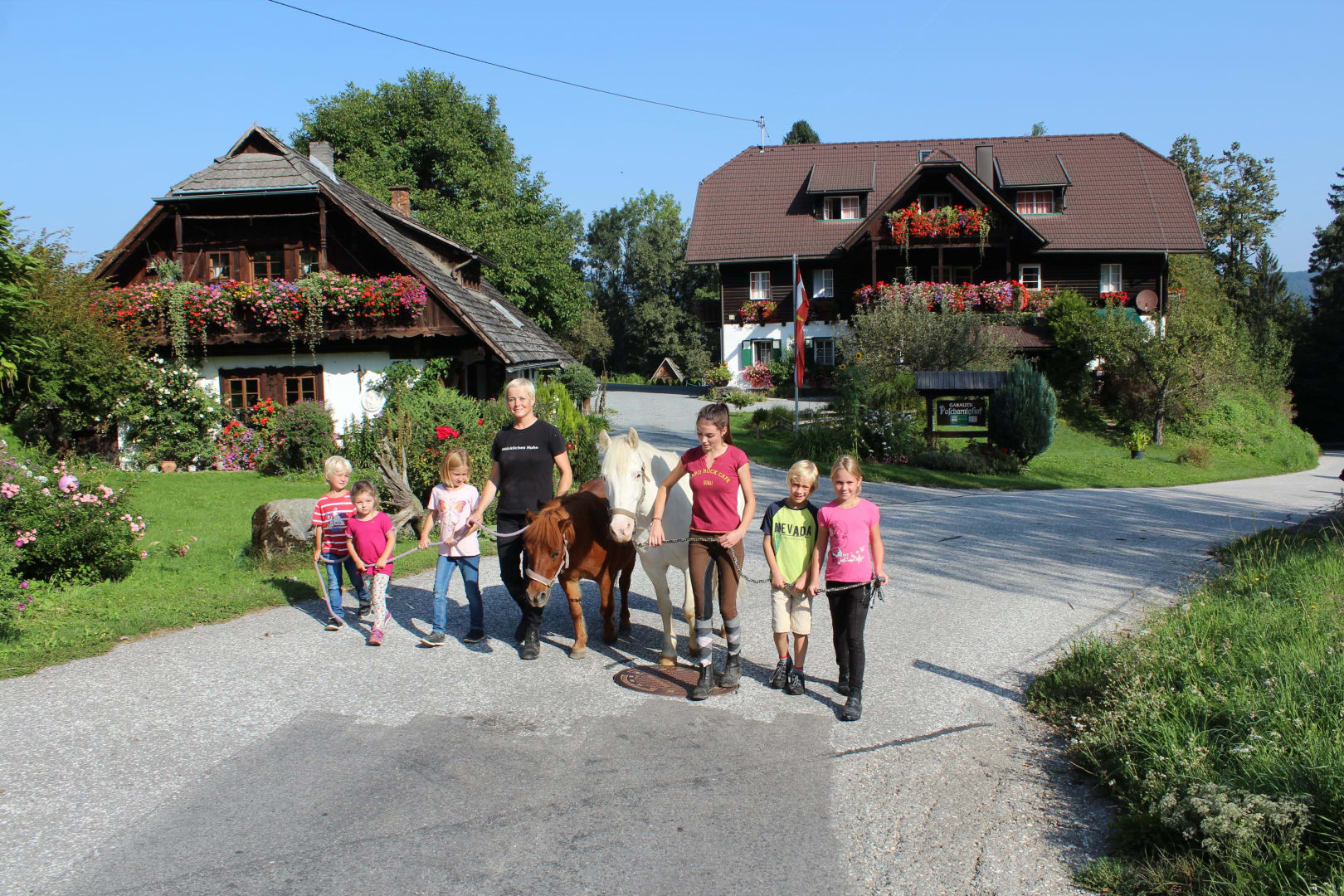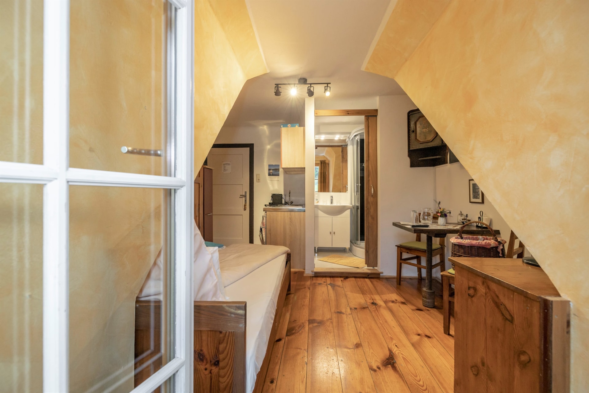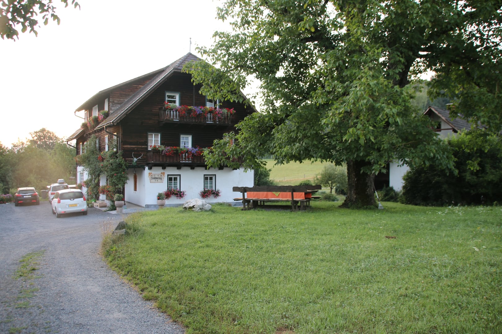 Mittagsonnewohnung im 2. Stock ist sehr effizient und praktisch für 1 bis 2 Personen ausgestattet mit Wohn-/Schlafzimmer gut ventiliert und abgeteiltem Sanitärbereich, wobei sich das WC außerhalb am Gang befindet. Es gibt eine Pantryküche mit 2 Kochplatten, Spüle, ***Kühlschrank, Mikrowelle mit Backfunktion, Wasserkocher, Mixer, Stabmixer und ausreichend Geschirr, SAT-TV und einen großzügig teilweise mit Glaseinbau überdachten Balkon nach Süden ausgerichtet mit einem runden Tisch und 2 Sessel. Vom Balkon aus sieht man auf das hauseigene Biotop, Pferdewiese und den Nachbarhof, der Blick schweift weiter zum hofeigenen blumengeschmückten Bauernhaus - die Residenz der Großeltern.