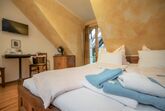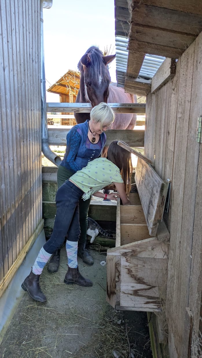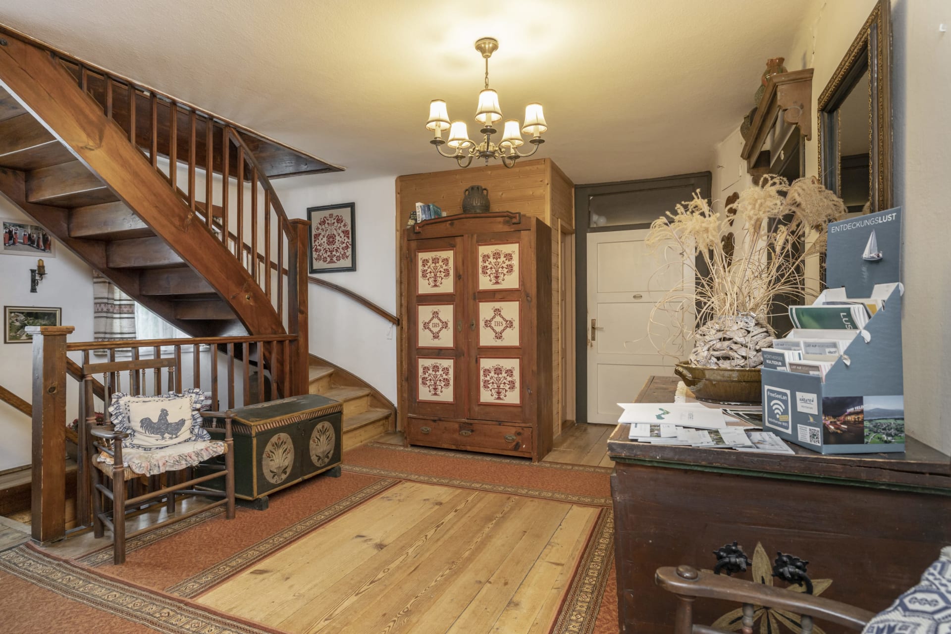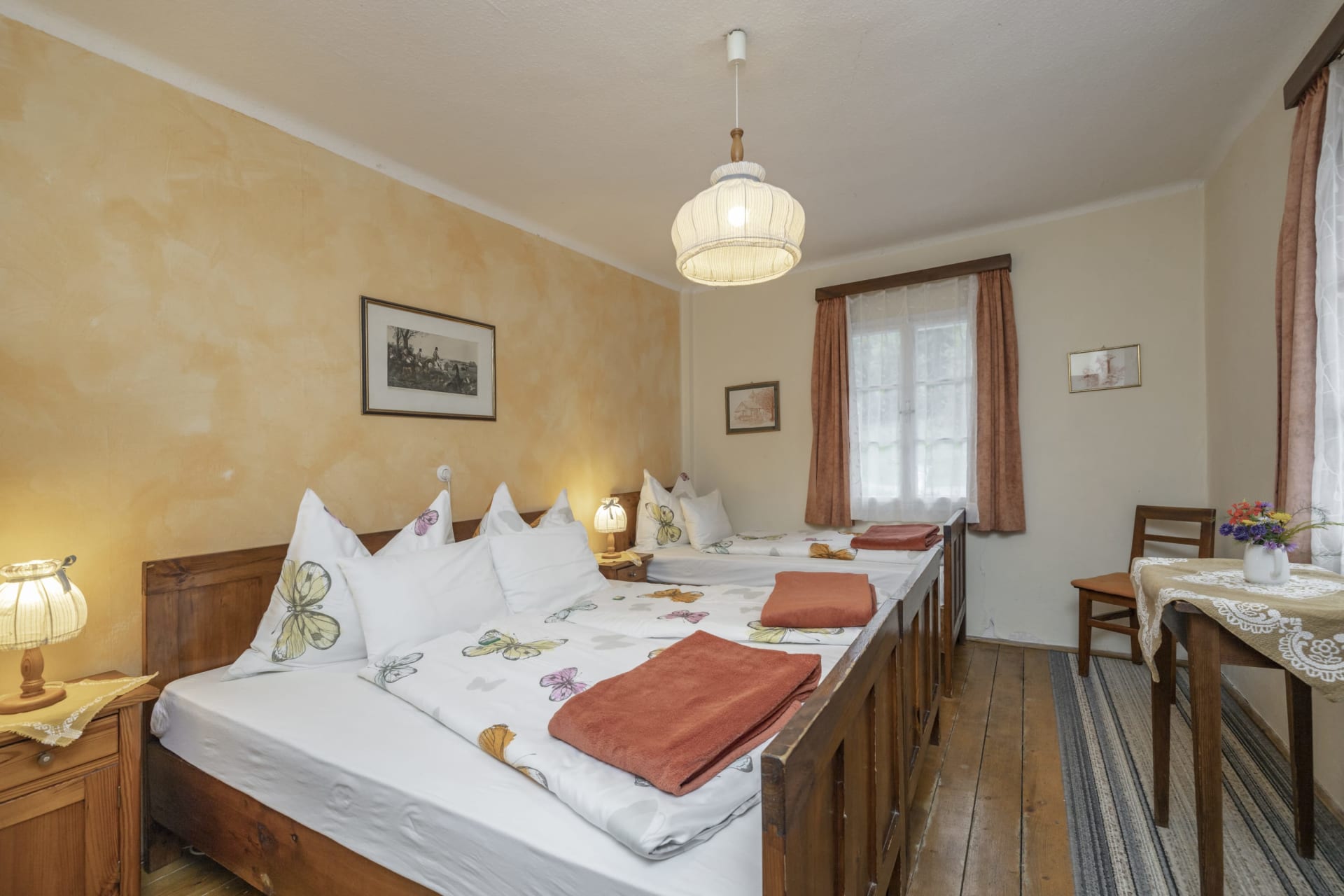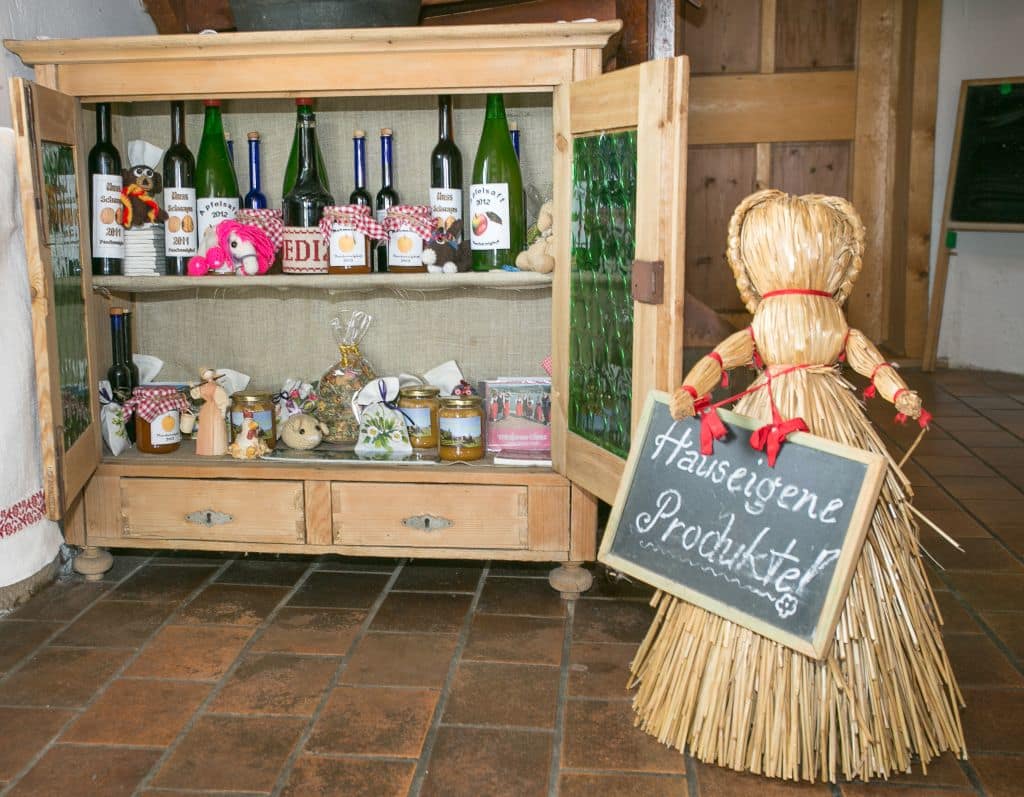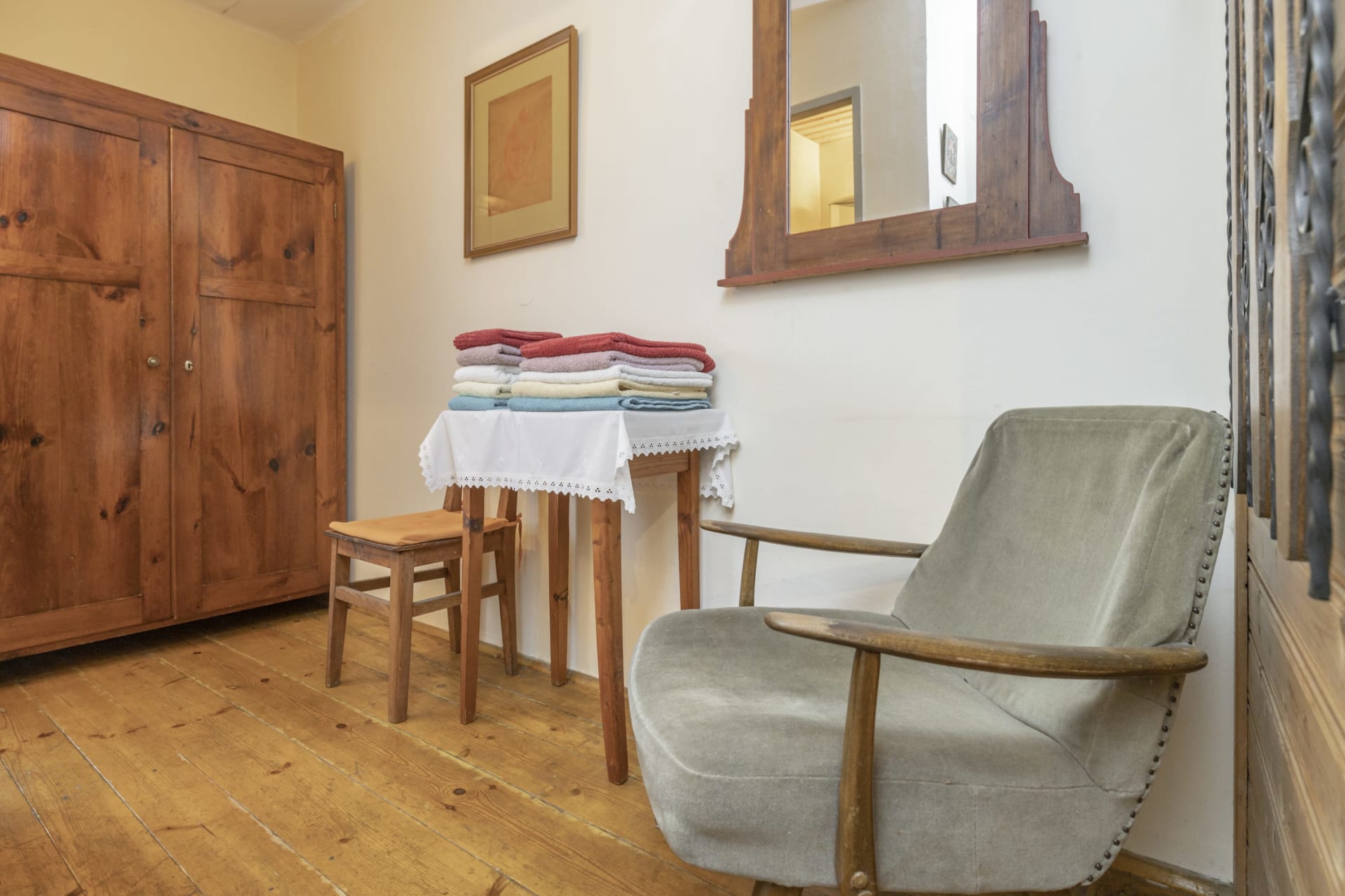 Mittagsonnewohnung im 2. Stock ist sehr effizient und praktisch für 1 bis 2 Personen ausgestattet mit Wohn-/Schlafzimmer gut ventiliert und abgeteiltem Sanitärbereich, wobei sich das WC außerhalb am Gang befindet. Es gibt eine Pantryküche mit 2 Kochplatten, Spüle, ***Kühlschrank, Mikrowelle mit Backfunktion, Wasserkocher, Mixer, Stabmixer und ausreichend Geschirr, SAT-TV und einen großzügig teilweise mit Glaseinbau überdachten Balkon nach Süden ausgerichtet mit einem runden Tisch und 2 Sessel. Vom Balkon aus sieht man auf das hauseigene Biotop, Pferdewiese und den Nachbarhof, der Blick schweift weiter zum hofeigenen blumengeschmückten Bauernhaus - die Residenz der Großeltern.