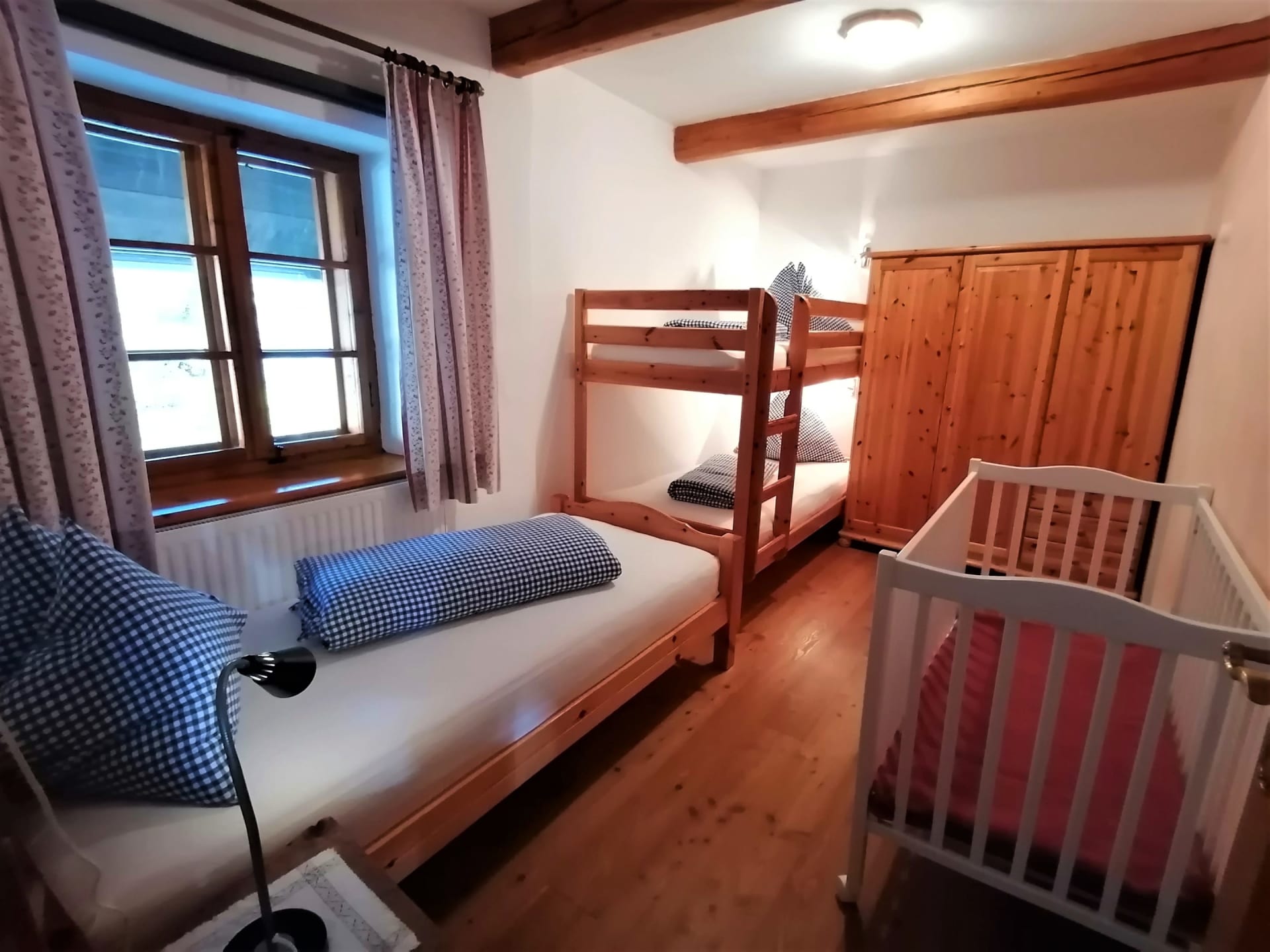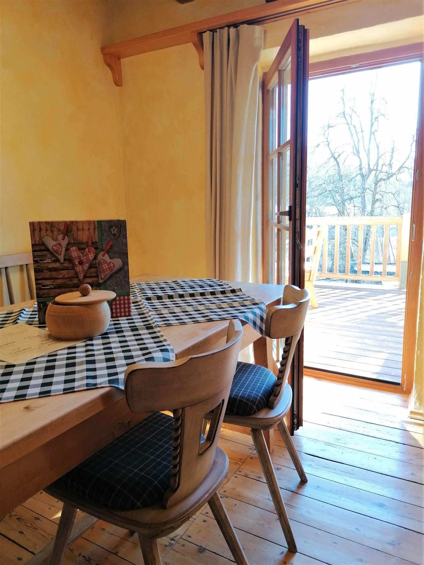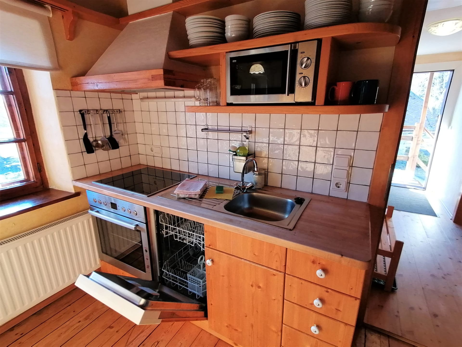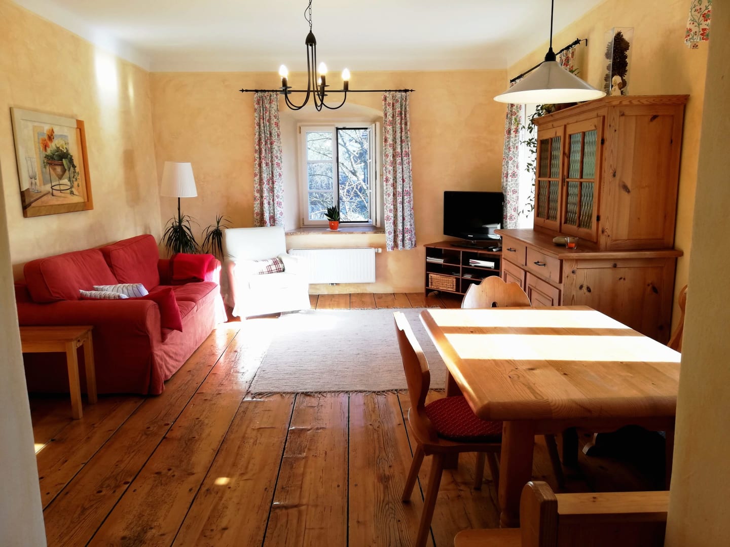 In dieser Ferienwohnung erwartet dich eine gemütliche, große Wohnstube mit einem Esstisch, einer bequemen Sitzecke mit Fernseher, Kinderzimmer mit einem Stockbett und einem Einzelbett, Schlafzimmer mit Doppelbett und ein kleines Schlafzimmer mit französischem Doppelbett (180cm breit). Außerdem einem komfortablen und gut ausgestatteten Kochbereich in Massivholz mit Geschirrspüler, Mikrowelle, E-Herd, Filter-Kaffeemaschine und Wasserkocher. Die liebevoll hergerichteten alten Holzböden und Holzdecken machen eine besonders gemütliche Atmosphäre.