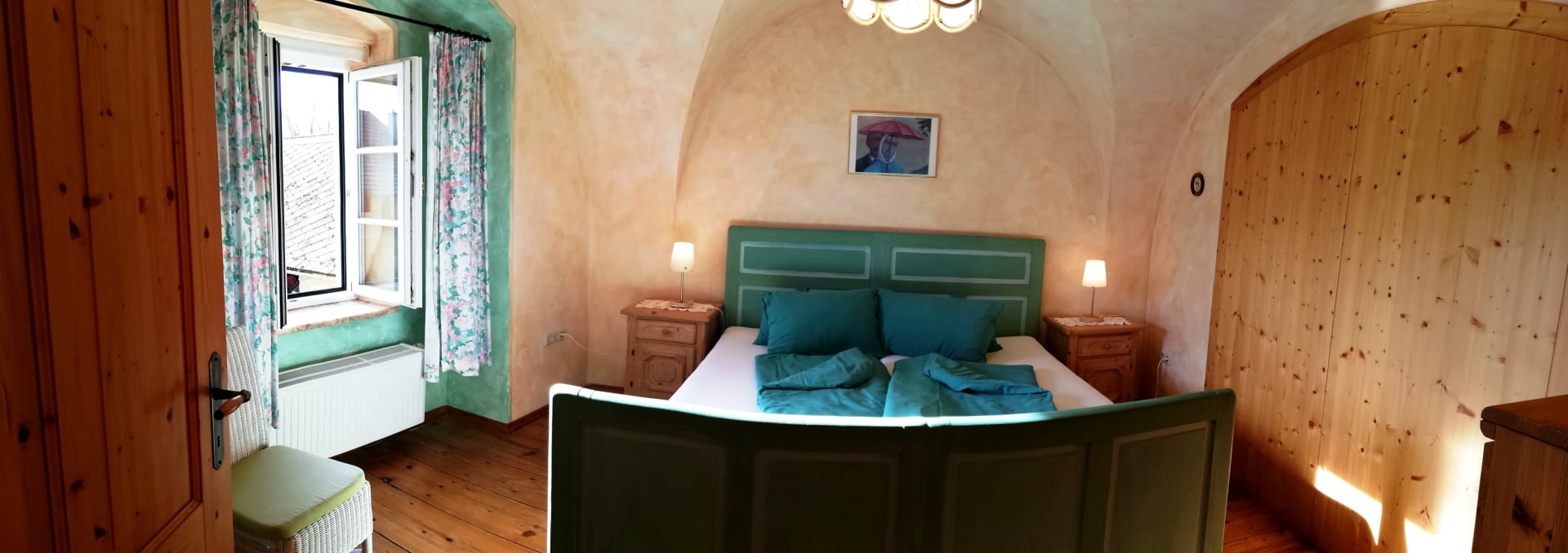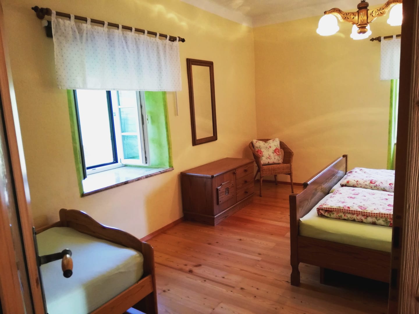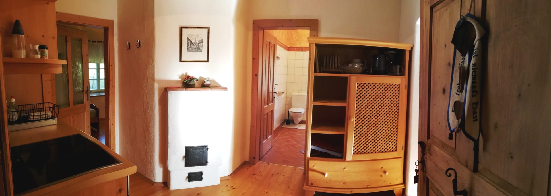 Im 300 Jahre alten Gutshaus haben wir mit viel Liebe diese schönen Räumlichkeiten ausgebaut. Die komfortable Wohnung mit zwei separaten Schlafzimmern ist stilvoll eingerichtet. Die Wohnung beinhaltet zudem auch einen Vorraum mit gut ausgestatteter Küche und einem schönem Badezimmer mit Dusche und WC. Esstisch und gemütliche Couch befinden sich im großem Wohnraum. Der alte Holzboden gibt dem sonnigen Wohnraum ein besonderes Flair.