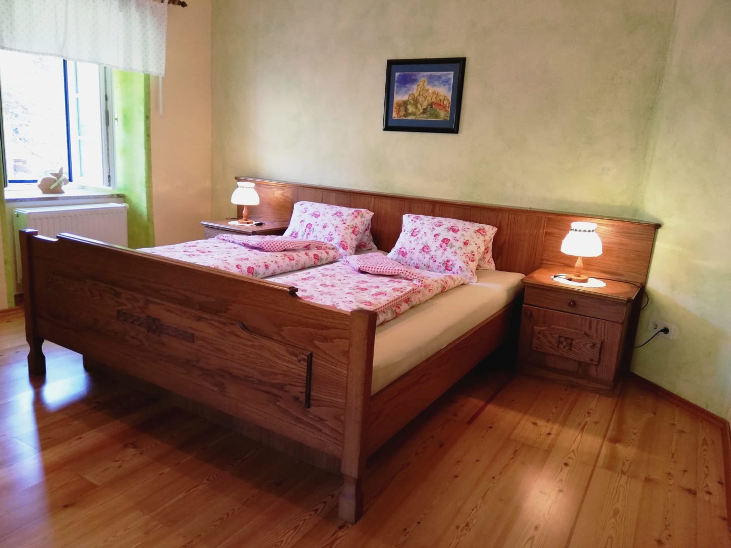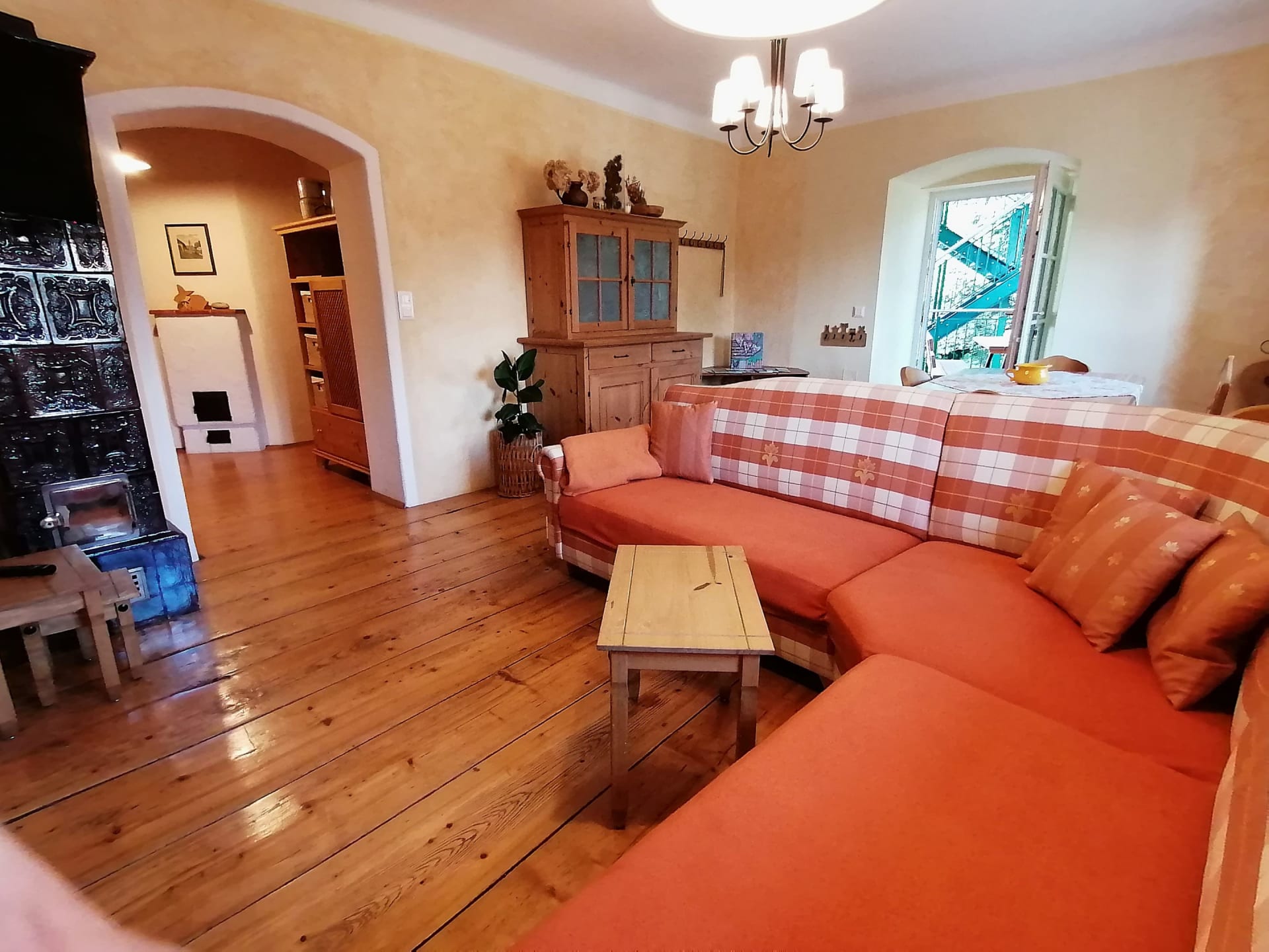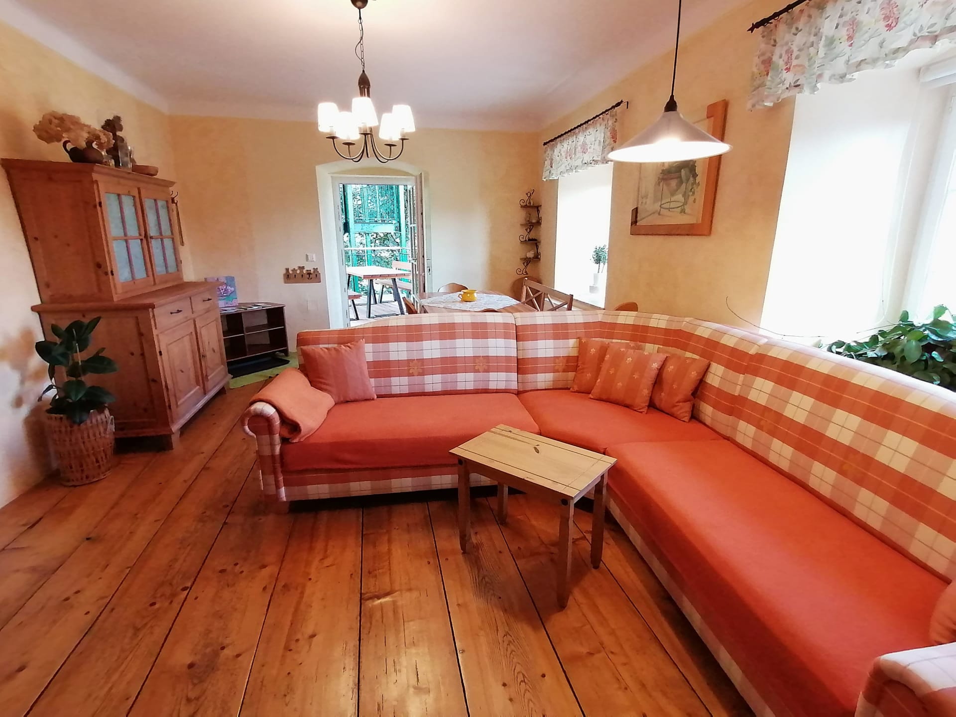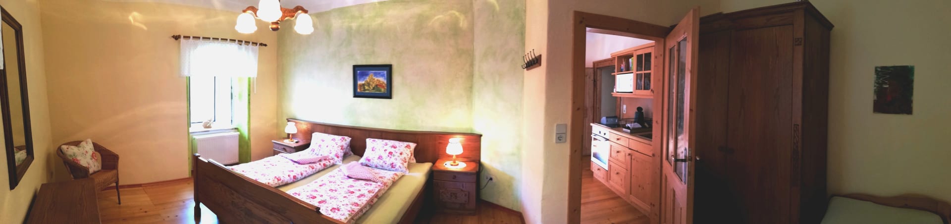 Im 300 Jahre alten Gutshaus haben wir mit viel Liebe diese schönen Räumlichkeiten ausgebaut. Die komfortable Wohnung mit zwei separaten Schlafzimmern ist stilvoll eingerichtet. Die Wohnung beinhaltet zudem auch einen Vorraum mit gut ausgestatteter Küche und einem schönem Badezimmer mit Dusche und WC. Esstisch und gemütliche Couch befinden sich im großem Wohnraum. Der alte Holzboden gibt dem sonnigen Wohnraum ein besonderes Flair.