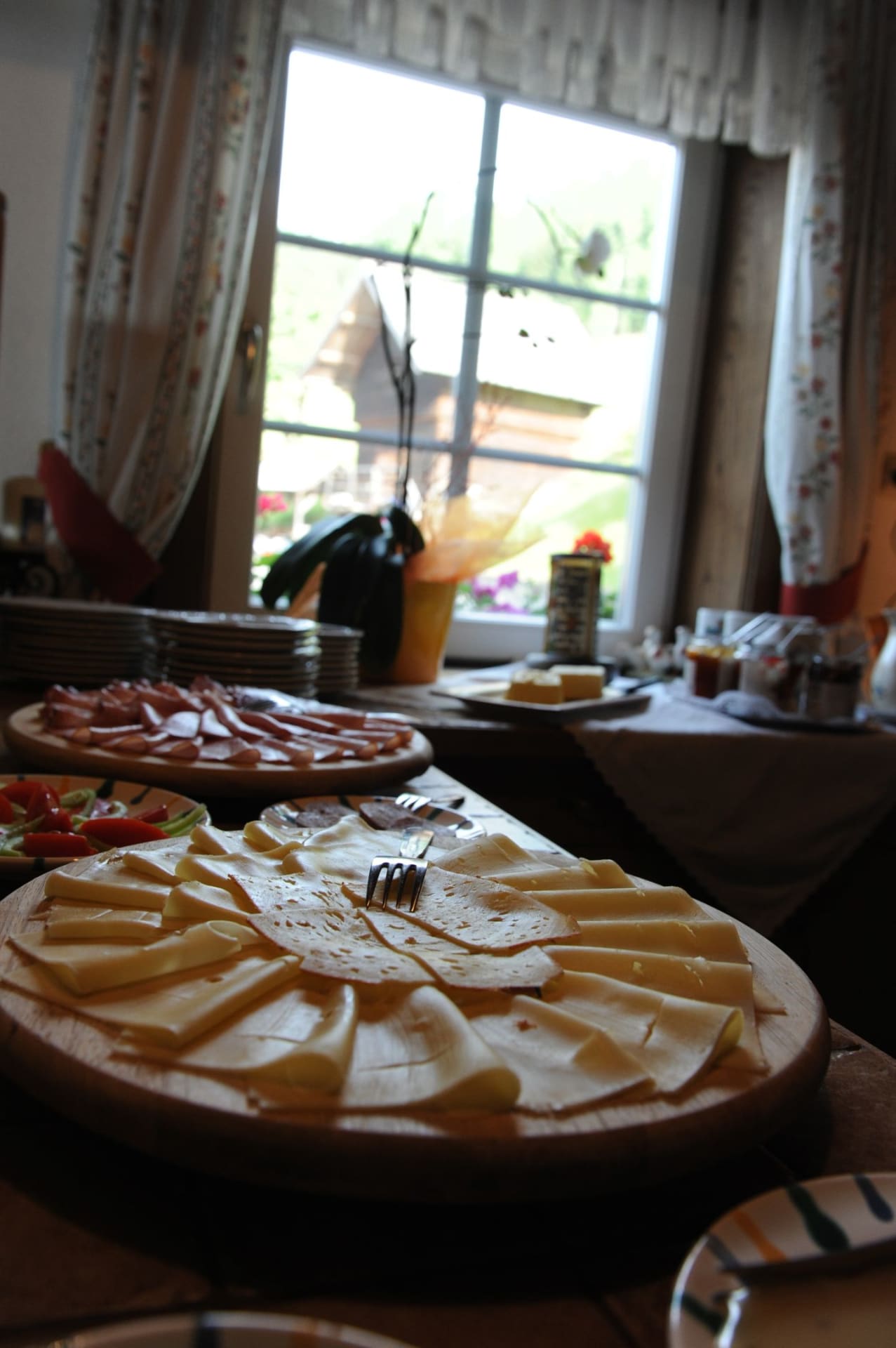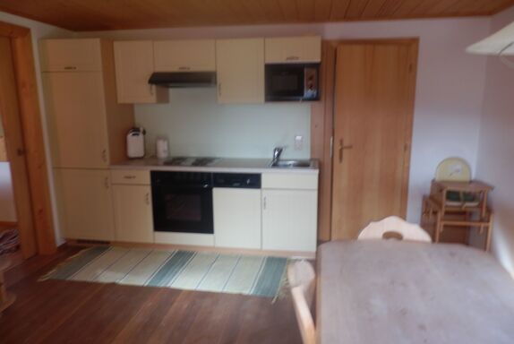 Willkommen in unserer geräumigen und charmanten Ferienwohnung im Erdgeschoss, die auf großzügigen 60 m² Platz für bis zu 5 Personen bietet. Diese Nichtraucherwohnung kombiniert den Komfort eines modernen Zuhauses mit dem gemütlichen Ambiente eines Altbaus. Sie verfügt über ein gemütliches Schlafzimmer mit einem komfortablen Doppelbett sowie ein separates, liebevoll eingerichtetes Kinderzimmer, ausgestattet mit einem Etagenbett und einem Gitterbett – perfekt für Familien mit kleinen Gästen. Ein zusätzliches Schlafsofa im Wohnbereich bietet weitere Schlafgelegenheiten. Die helle und voll ausgestattete Wohnküche lässt keine Wünsche offen. Hier finden Sie einen 4-Platten-Herd, Backofen, Mikrowelle, Kühlschrank und Wasserkocher, ideal für die Zubereitung eigener Mahlzeiten. Ein Fernseher und kostenfreies WLAN sorgen für Unterhaltung und Verbindung. Das moderne Badezimmer ist mit einer Dusche ausgestattet, und ein separates WC sorgt für zusätzlichen Komfort. Ein Haarföhn und frische Handtücher stehen Ihnen selbstverständlich zur Verfügung. Ein besonderes Highlight ist der direkte Zugang zu unserem idyllischen Garten, wo Sie entspannte Stunden verbringen können. Genießen Sie von hier aus oder aus den Fenstern die atemberaubende Aussicht auf die umliegende Berglandschaft. Diese Ferienwohnung ist der ideale Rückzugsort für unvergessliche Familienurlaube und Erholung pur.