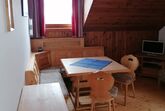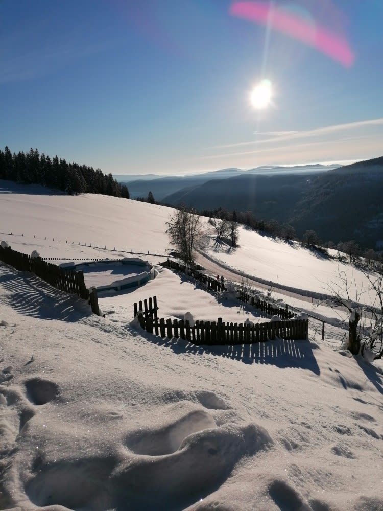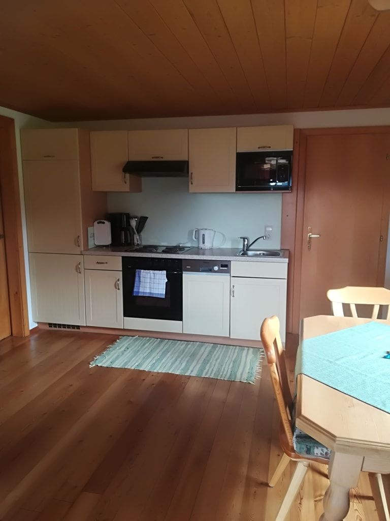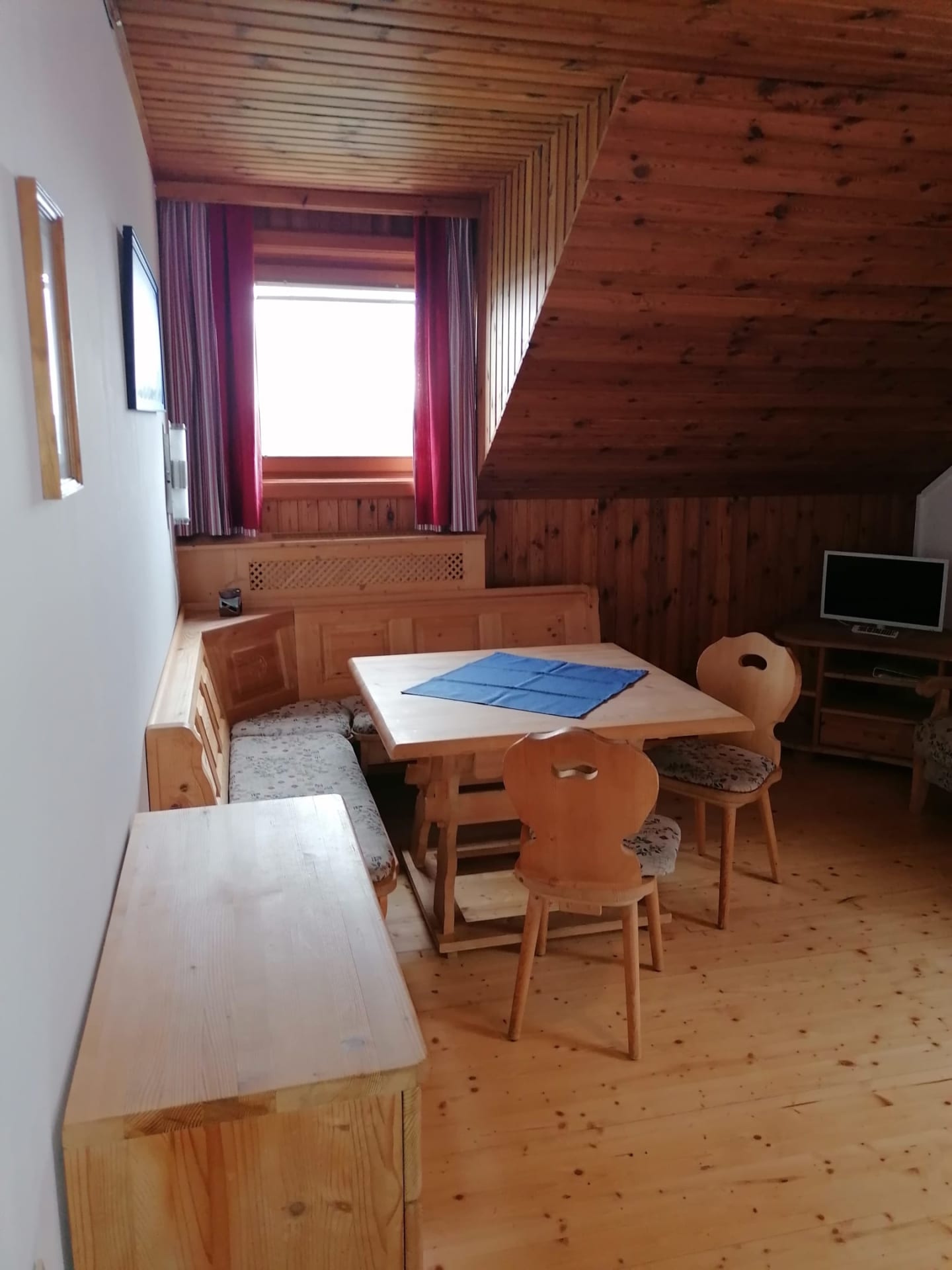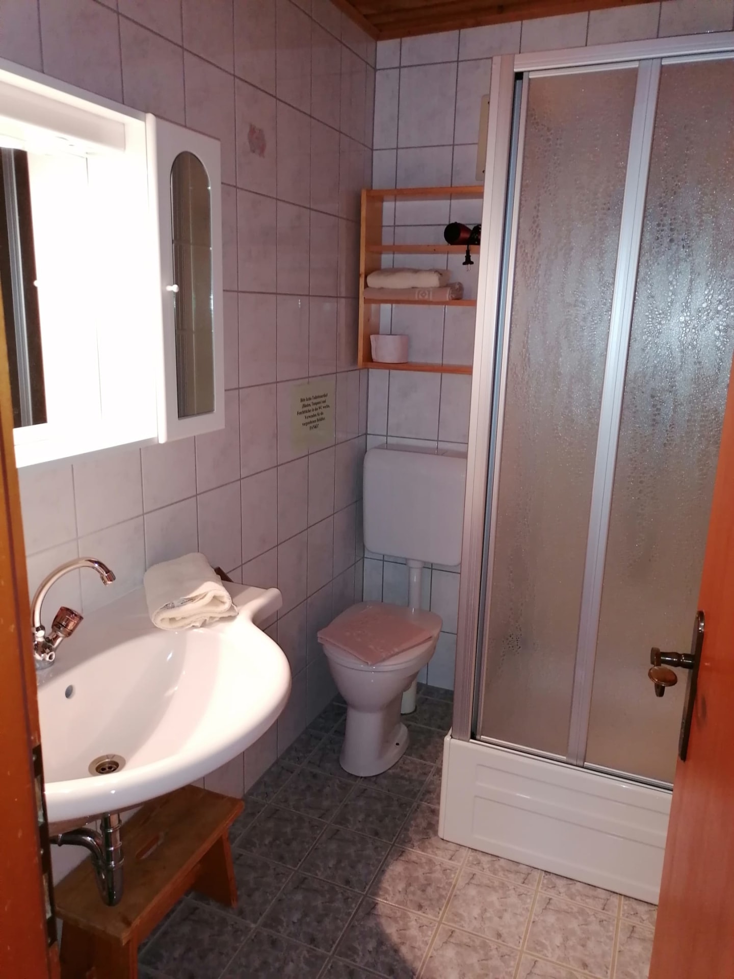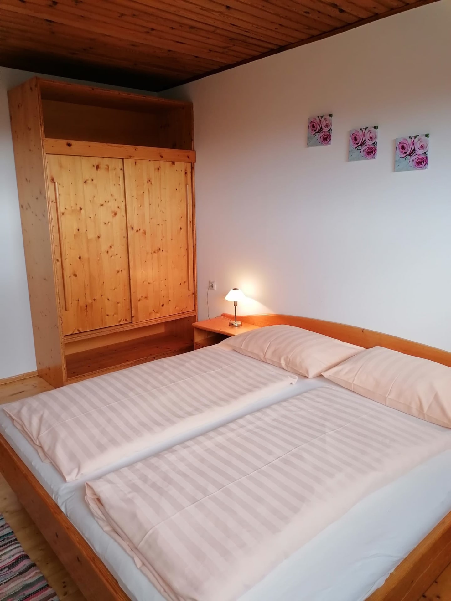 Herzlich willkommen in unserer charmanten Ferienwohnung im Obergeschoss! Auf großzügigen 50 m² bietet sie Platz für bis zu 4 Personen und ist ideal für Familien oder kleine Gruppen. Die Wohnung verfügt über zwei separate Schlafzimmer: ein gemütliches Doppelzimmer und ein liebevoll eingerichtetes Kinderzimmer mit einem Etagenbett. Der offene Wohnbereich mit einer voll ausgestatteten Küche lädt zum Verweilen und gemeinsamen Kochen ein. Hier finden Sie alles, was Sie für die Selbstversorgung benötigen: einen 4-Plattenherd, Backofen, Mikrowelle, Kühlschrank, Kaffeemaschine und Wasserkocher. Das moderne Badezimmer ist mit Dusche, WC, Haarföhn und frischen Handtüchern ausgestattet. Ein besonderes Highlight ist Ihr privater Balkon oder die Terrasse, von der aus Sie eine atemberaubende Aussicht auf die umliegende Berglandschaft genießen können. Für Ihre Unterhaltung und Konnektivität sorgen ein Fernseher und kostenloses WLAN. Als Nichtraucherwohnung garantieren wir Ihnen ein angenehmes und frisches Raumklima. Erleben Sie erholsame Tage in traditionellem Altbau-Ambiente mit modernem Komfort.