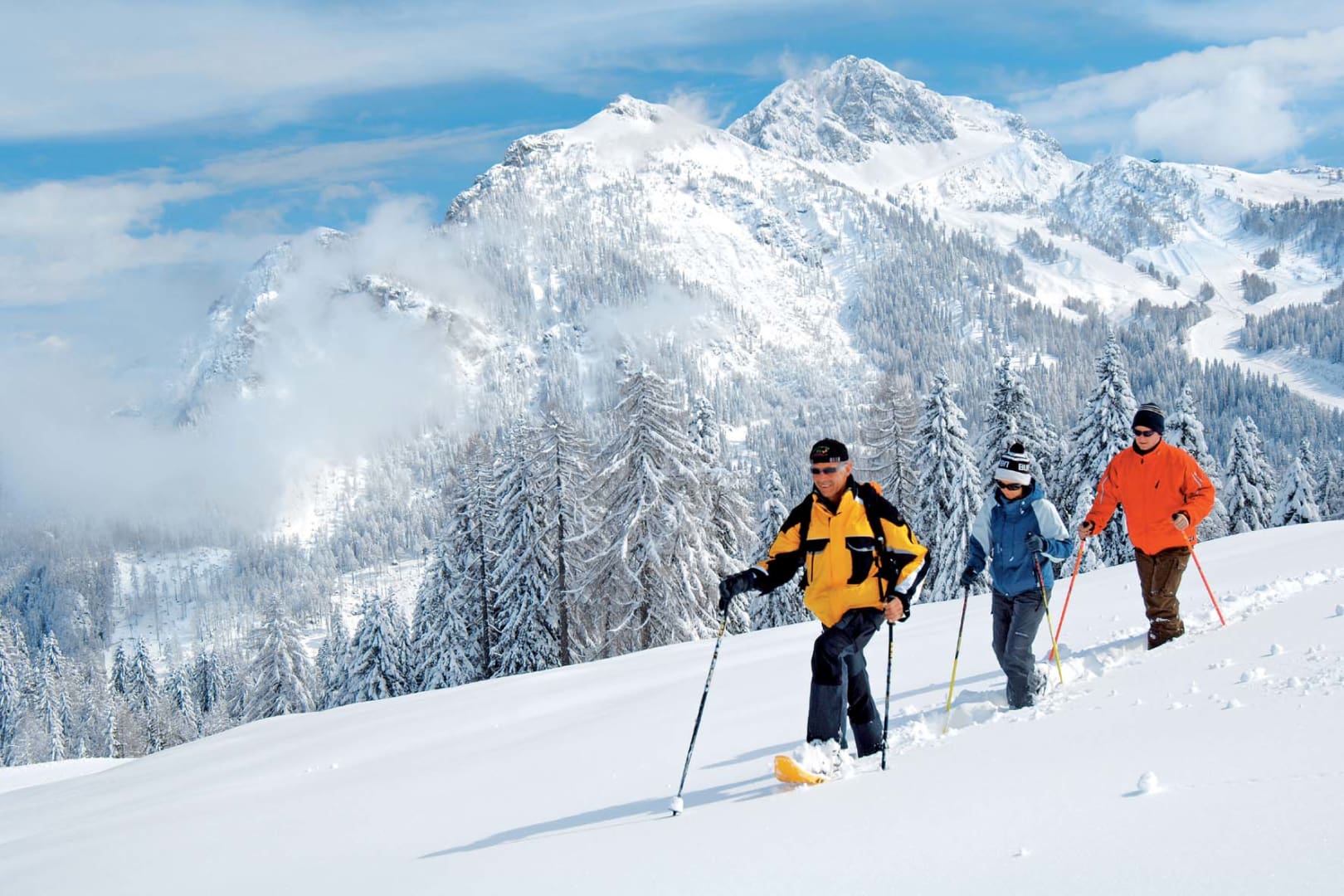 Genießen Sie eine Winterwanderung mit der Familie mit herrlichen Weitblick über die schneebedeckten Kärntner Bergwelt im Biospährenpark Nockberge.