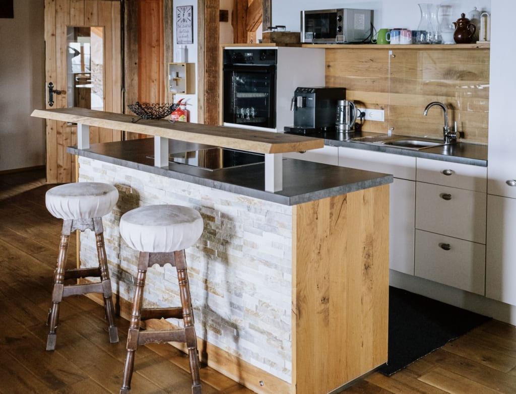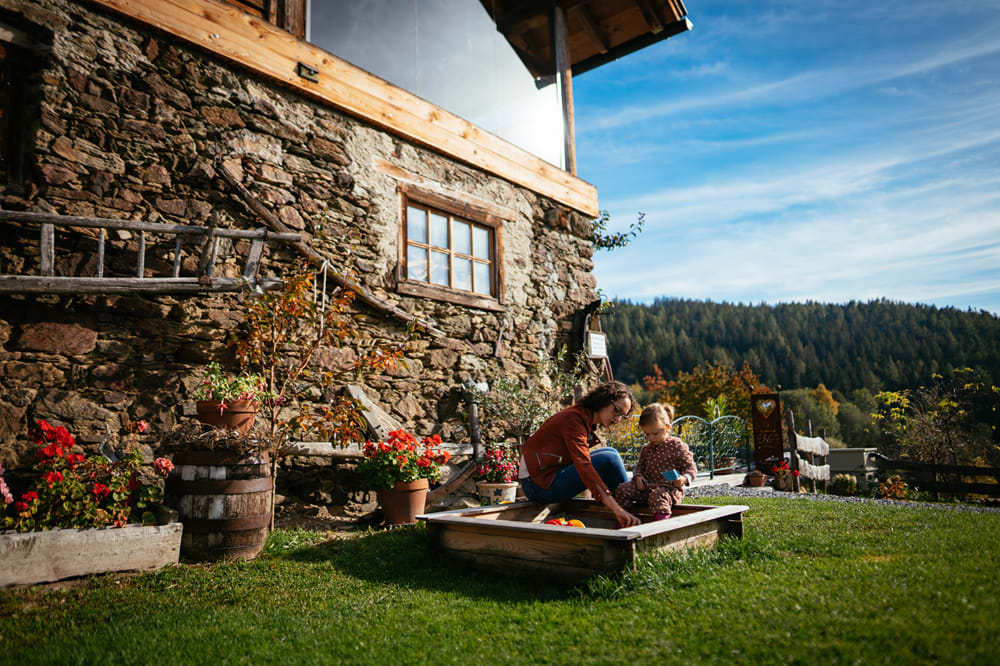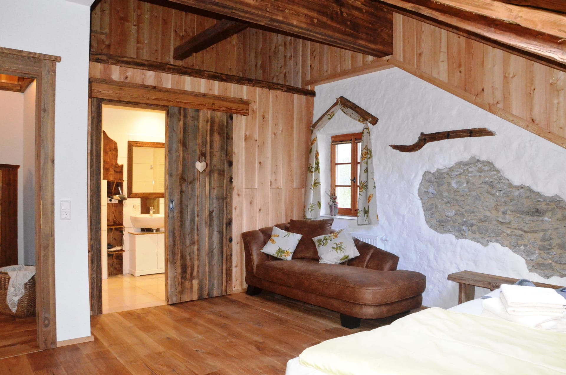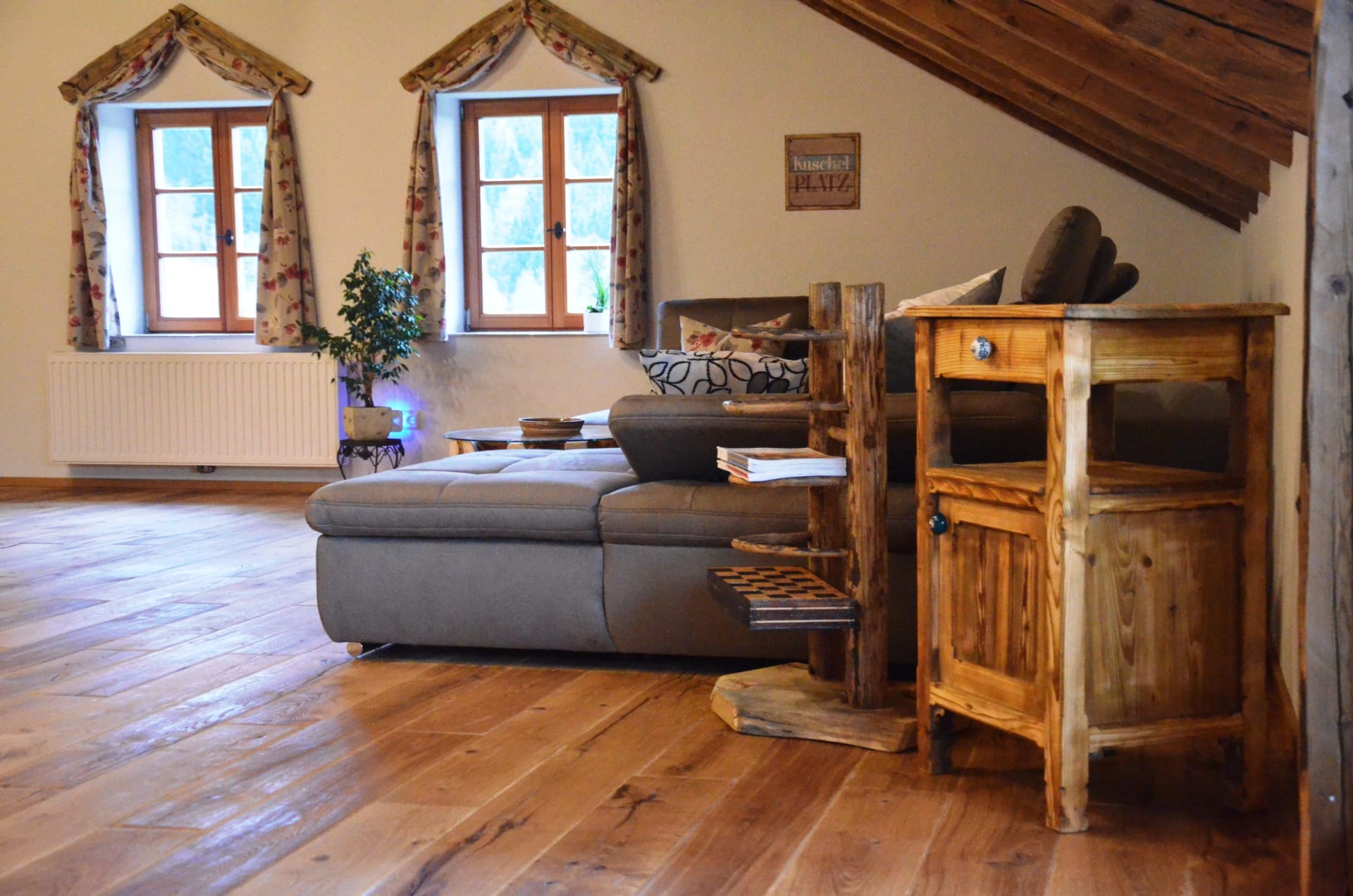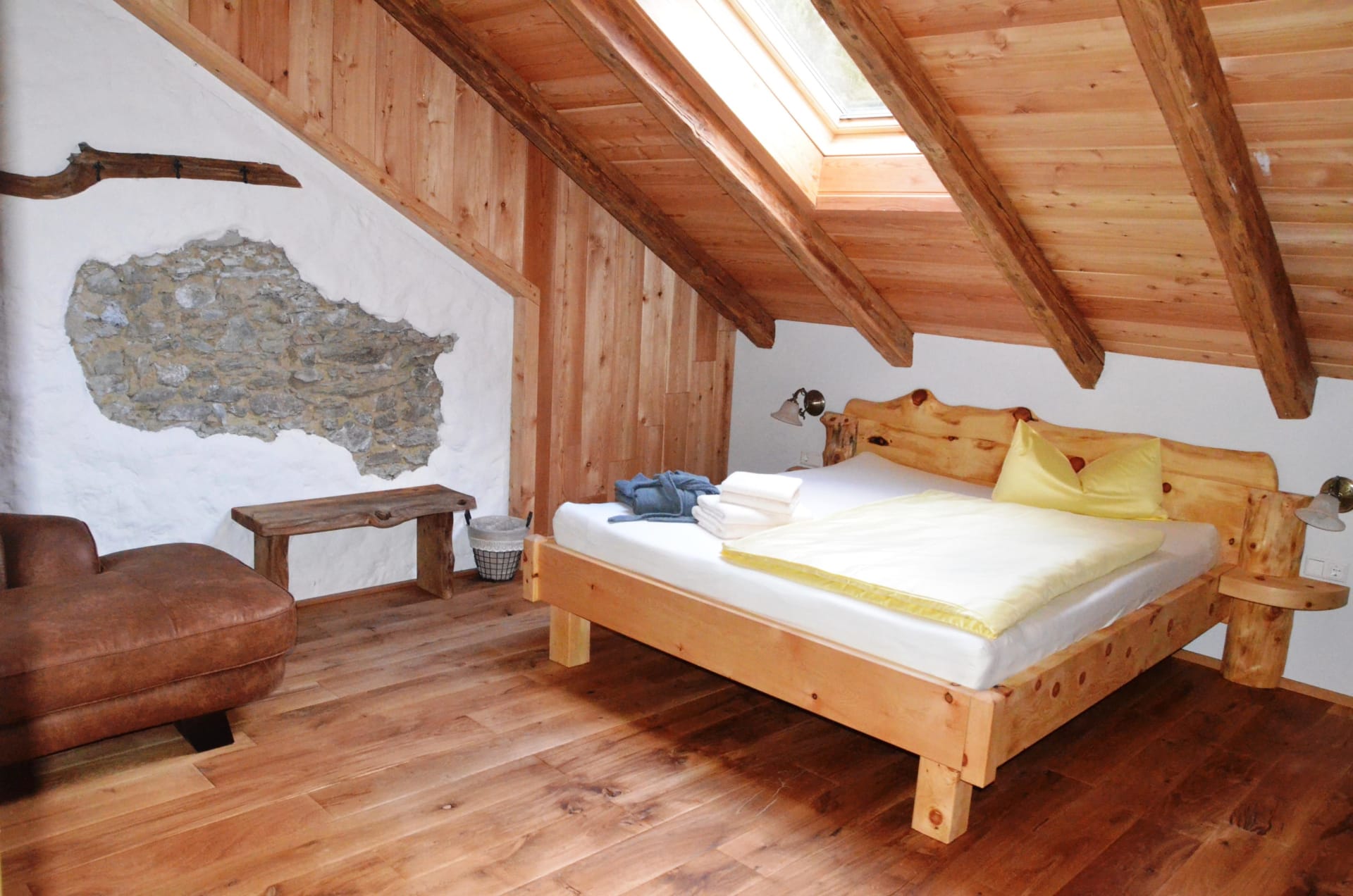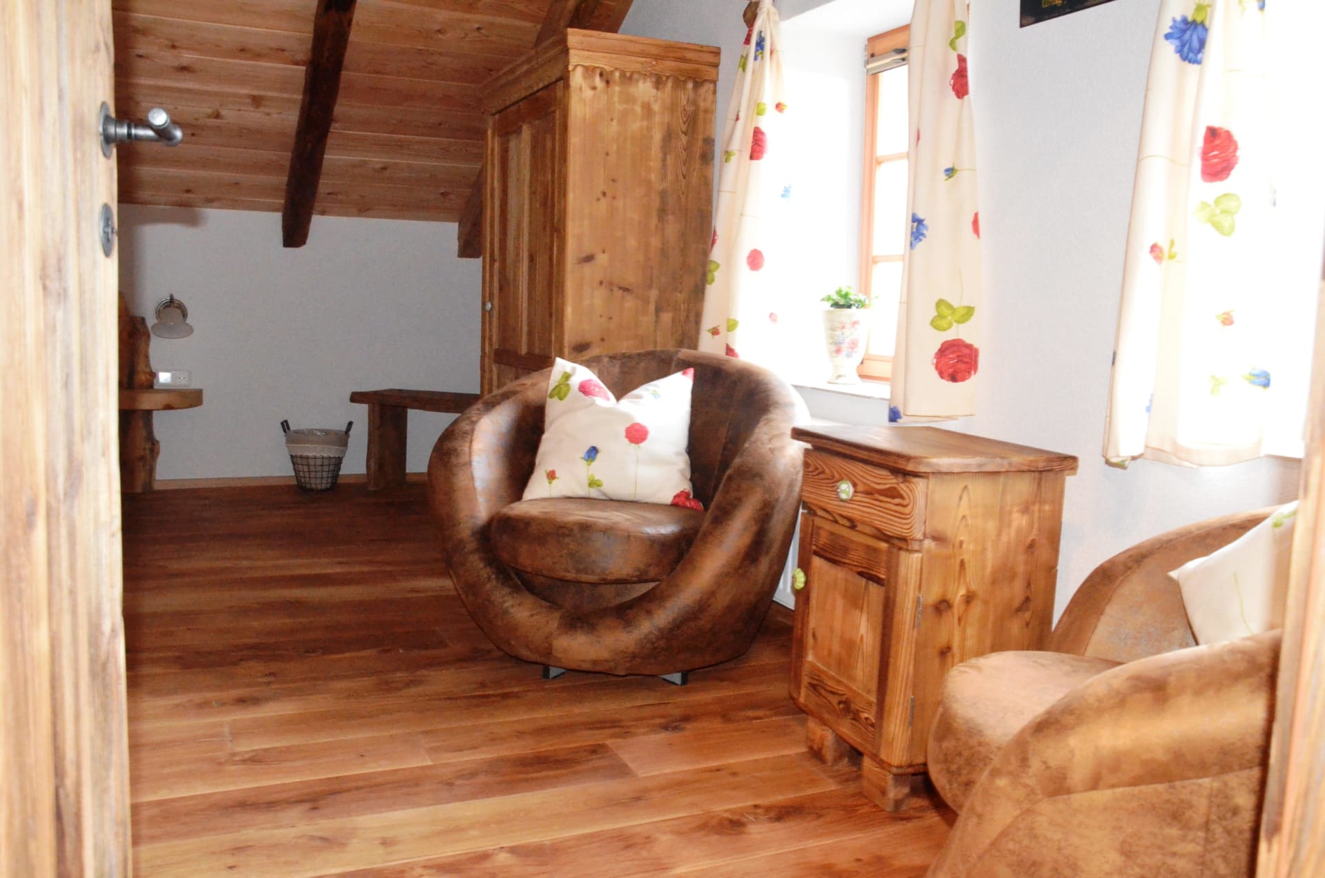 Unser Bergbauernhof wurde komplett revitalisiert, wobei auf stilvolles Ambiente und gesundes Material Wert gelegt wurde; im Obergeschoß steht eine Ferienwohnung als Wohlfühloase mit 180 m² zur Verfügung. Ein exklusives Zuhause für deinen Urlaub.