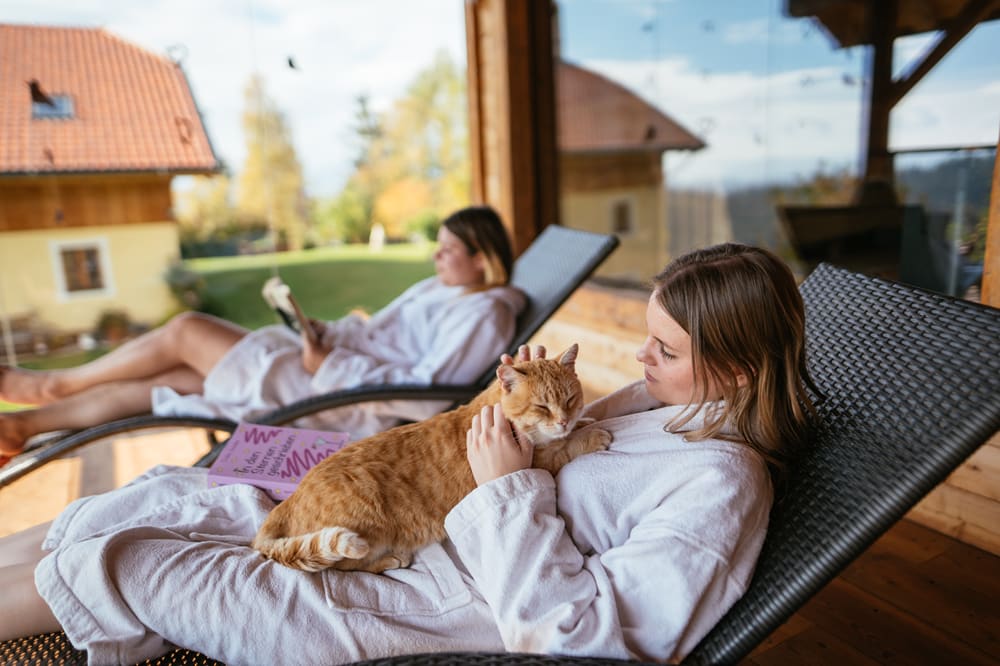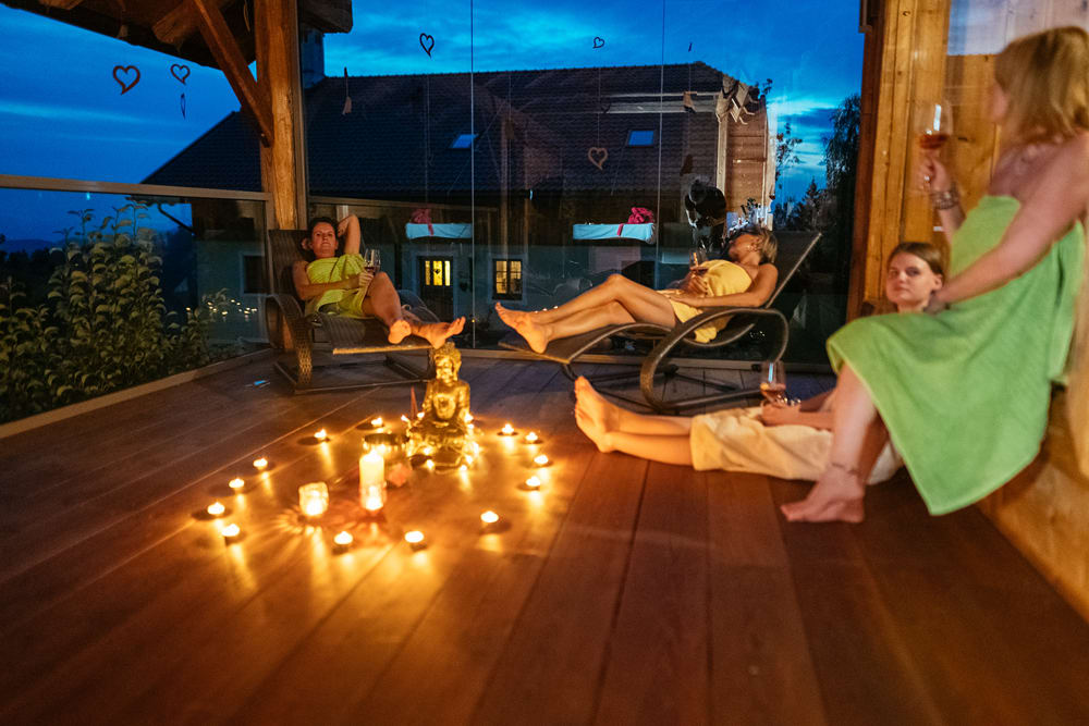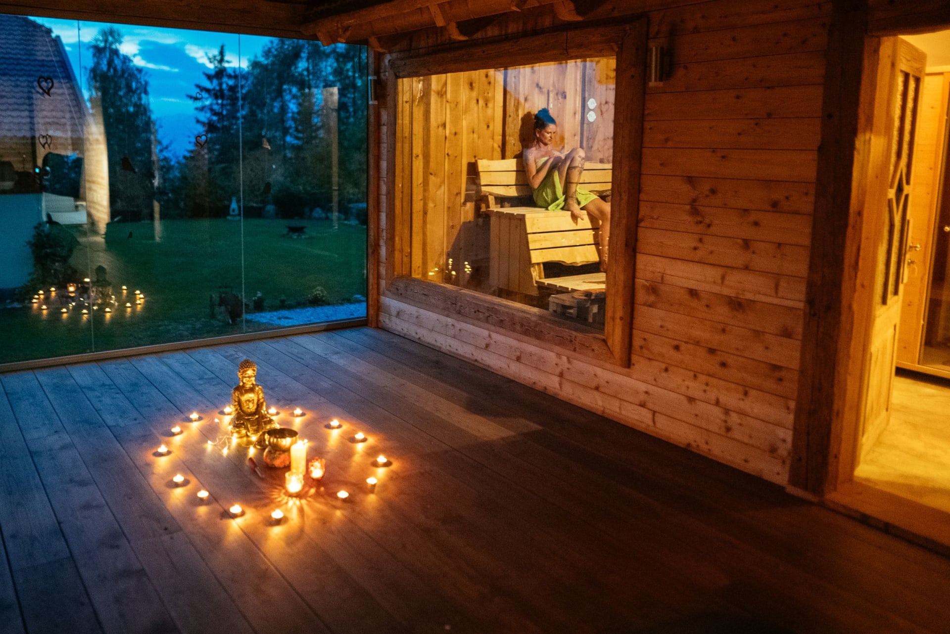 Zur Entspannung befindet sich im Nebengebäude eine Zirbensauna, eine Infrarotkabine, ein HotTube mit Ruheraum. Der neu errichtete Badeteich lässt ebenfalls keine Wünsche mehr offen.