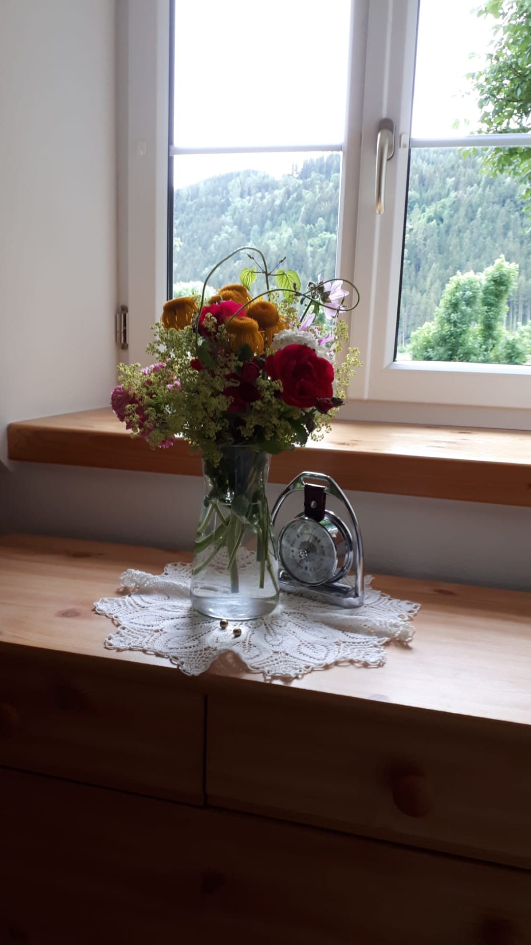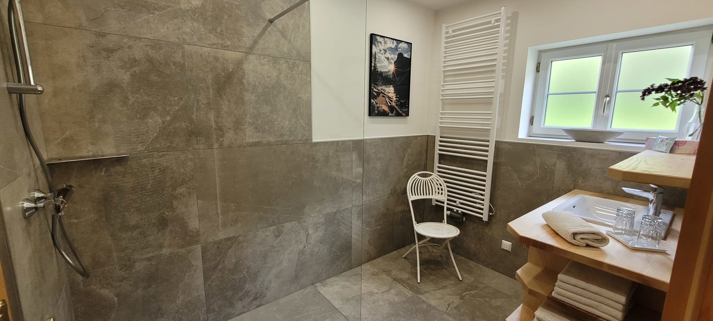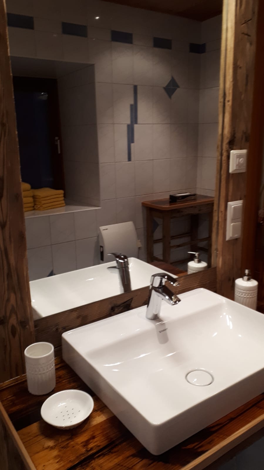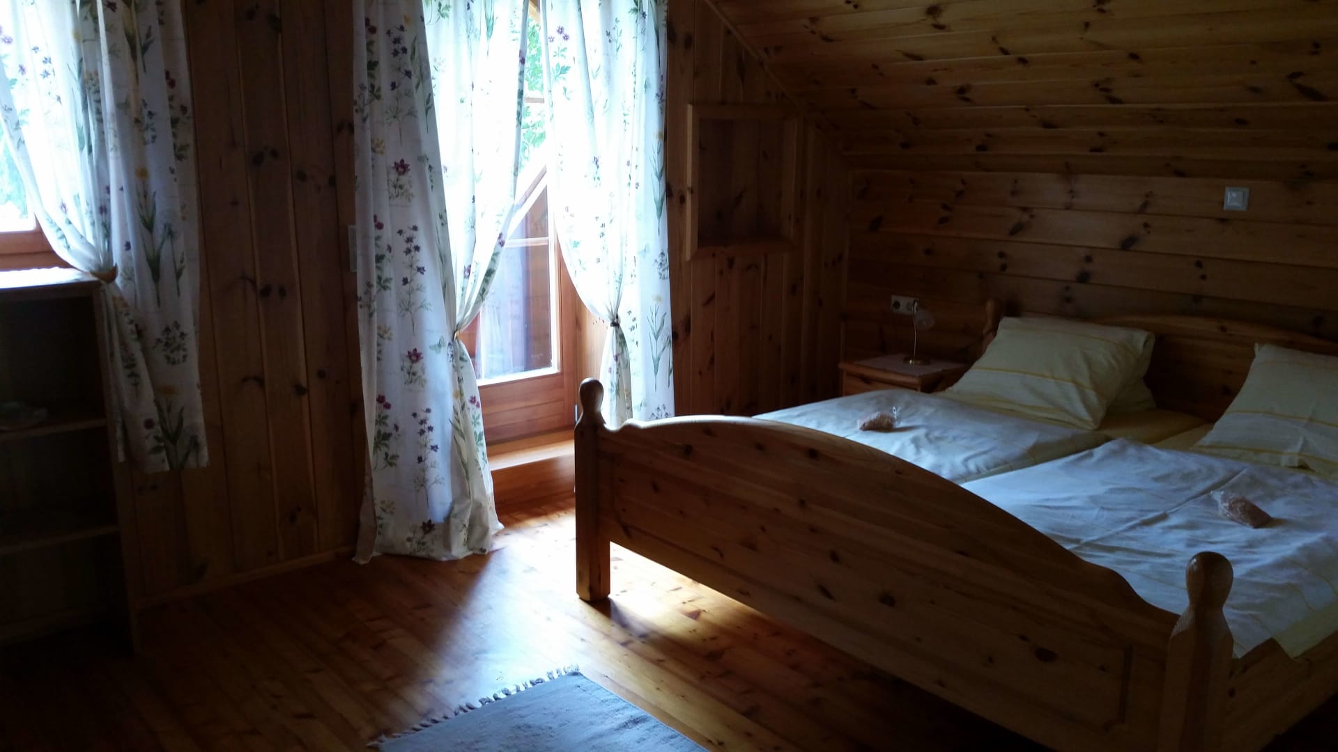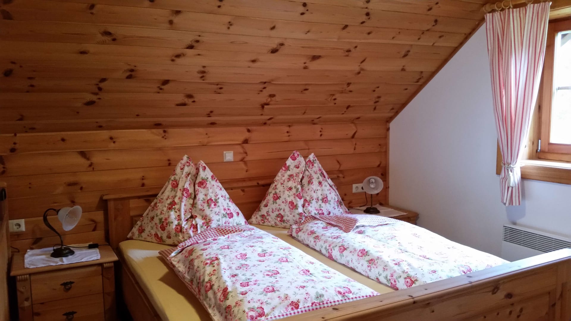 Apartment über gesamtes Obergeschoss mit Balkon; Küche(E-Herd mit Backofen, Mikrowelle, Toaster, Kaffeemaschine, Radio, 2 Schlafzimmer, ein großer Wohn-,Esszimmer mit Balkon, SAT-TV, WC, Badezimmer(Dusche, Badewanne, Waschmaschine, Fußbodenheizung.