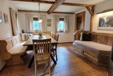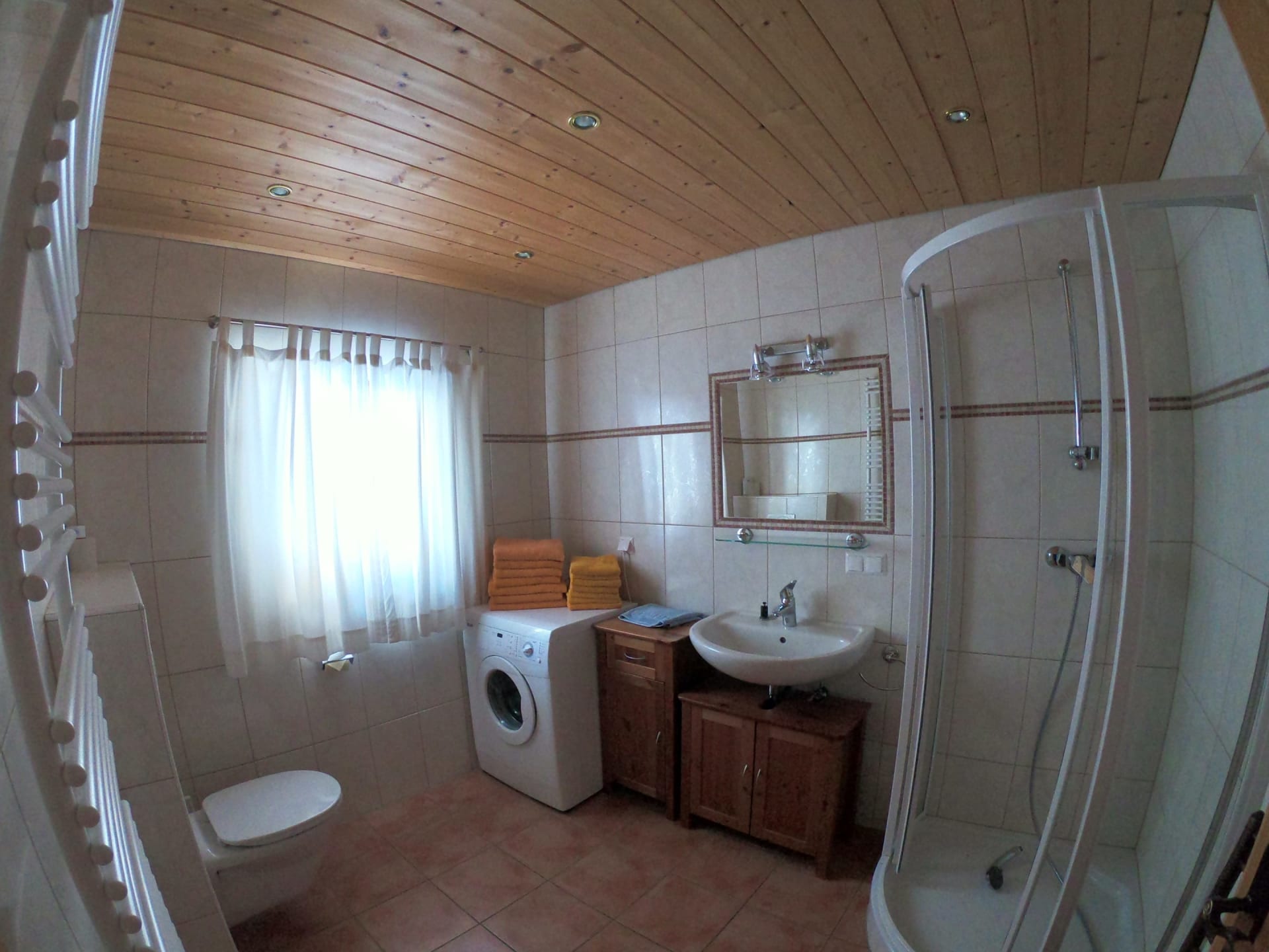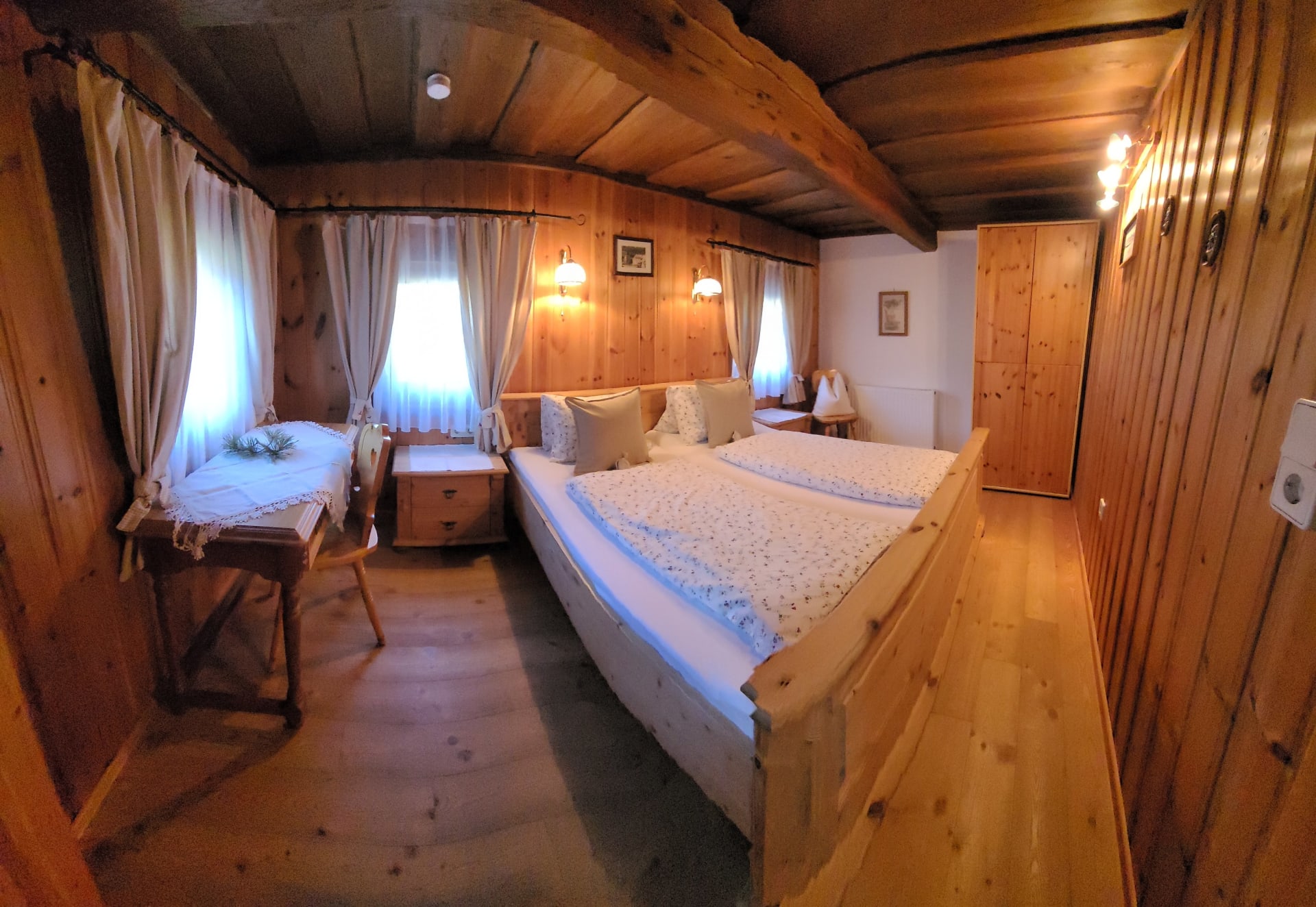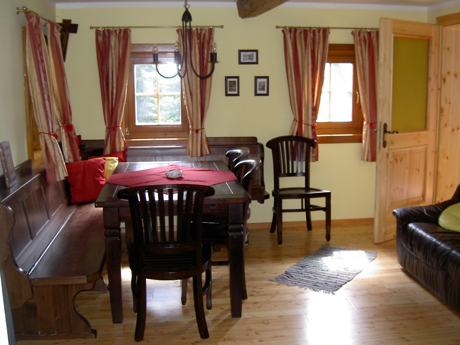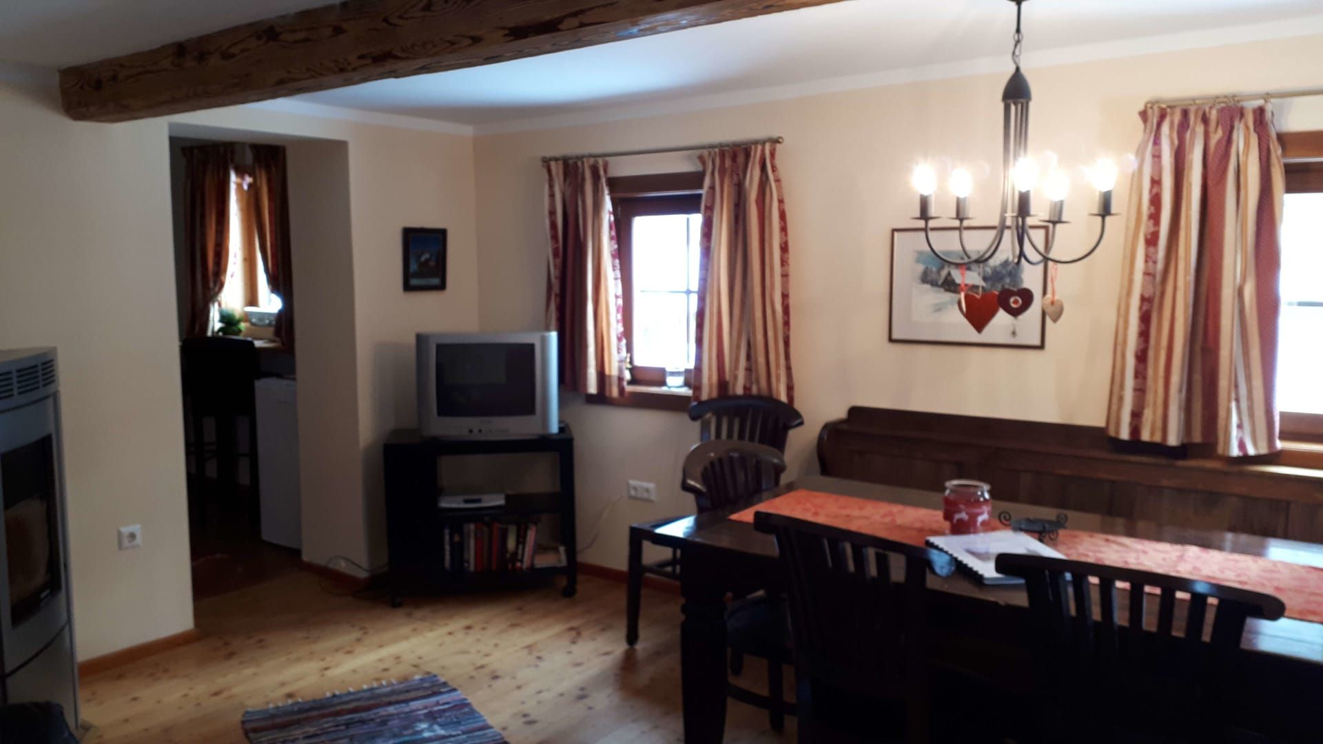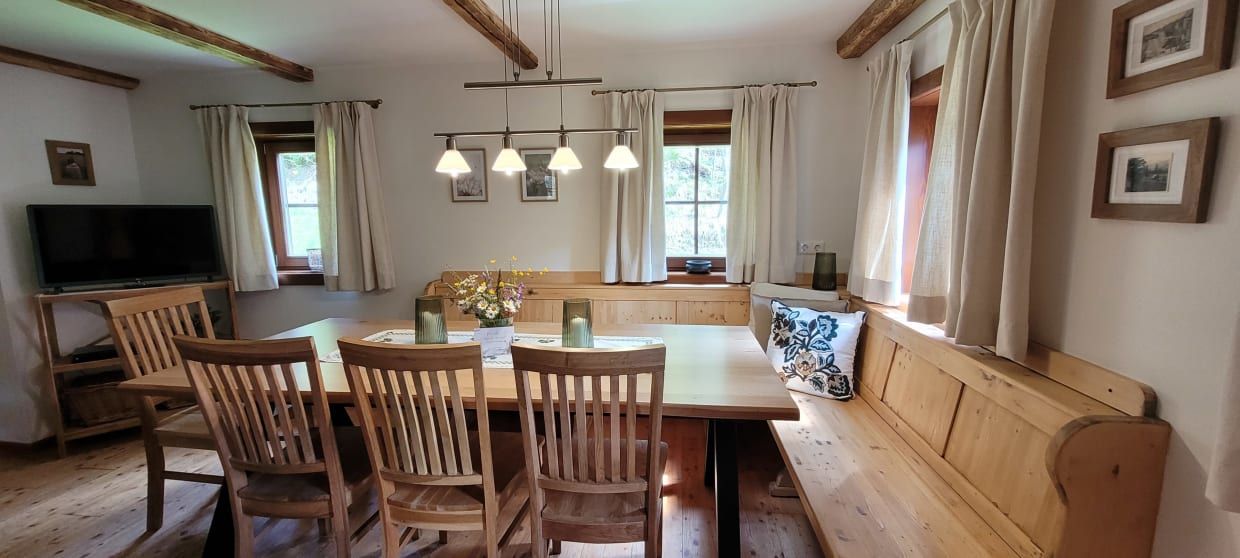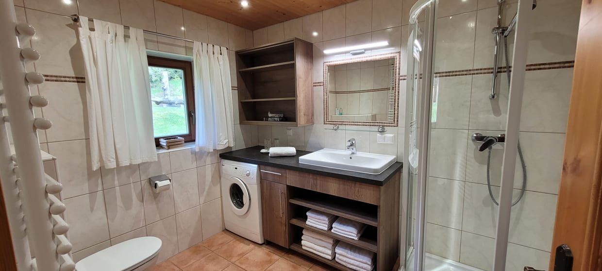 Es erwartet Sie eine Almhütte mit großem Komfort: Küche mit E-Herd, Kaffeemaschine, Toaster, Wohn-Esszimmer mit Pelletsofen und Fernseher, drei Schlafzimmer (Gitterbett vorhanden), WC, Badezimmer mit Dusche und WC, Leseecke in der oberen Etage, Sauna für 6 Personen