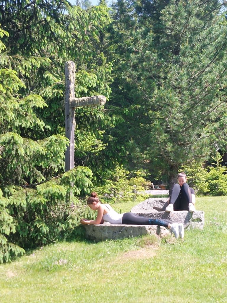 Im Gartenbereich befindet sich ein Salettl mit Bänken und einem Tisch, ein fahrbarer Holzkohlegrill, ein Lagerfeuerplatz, Brunnen mit Trinkwasser