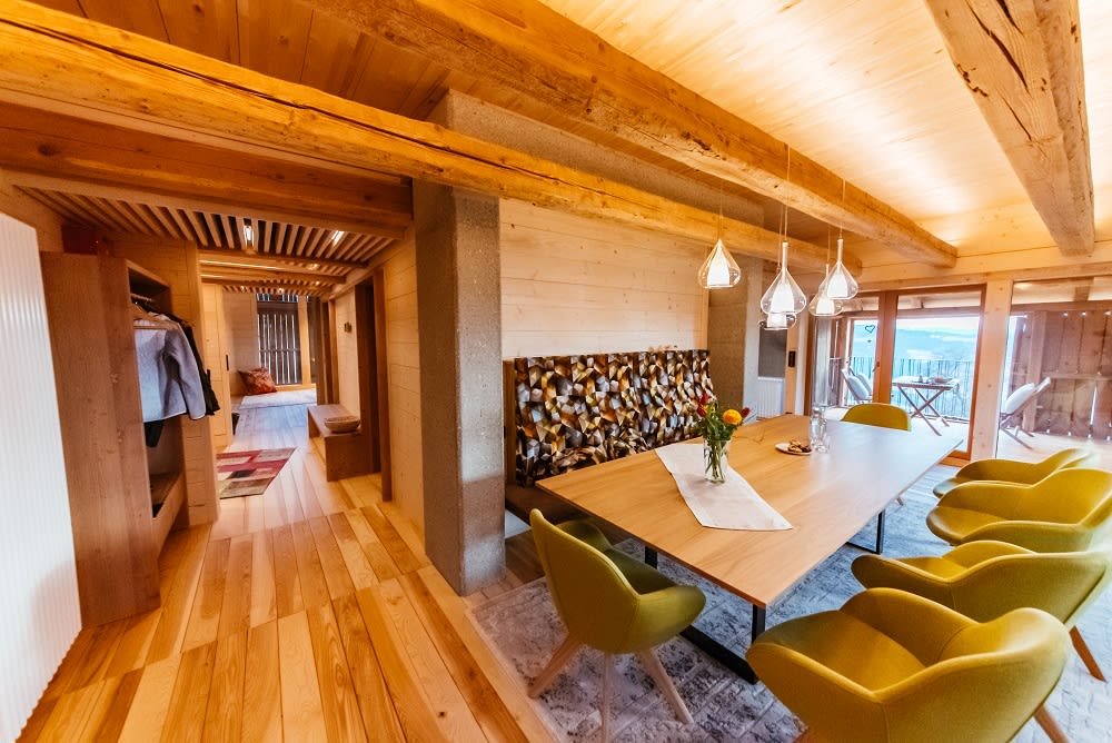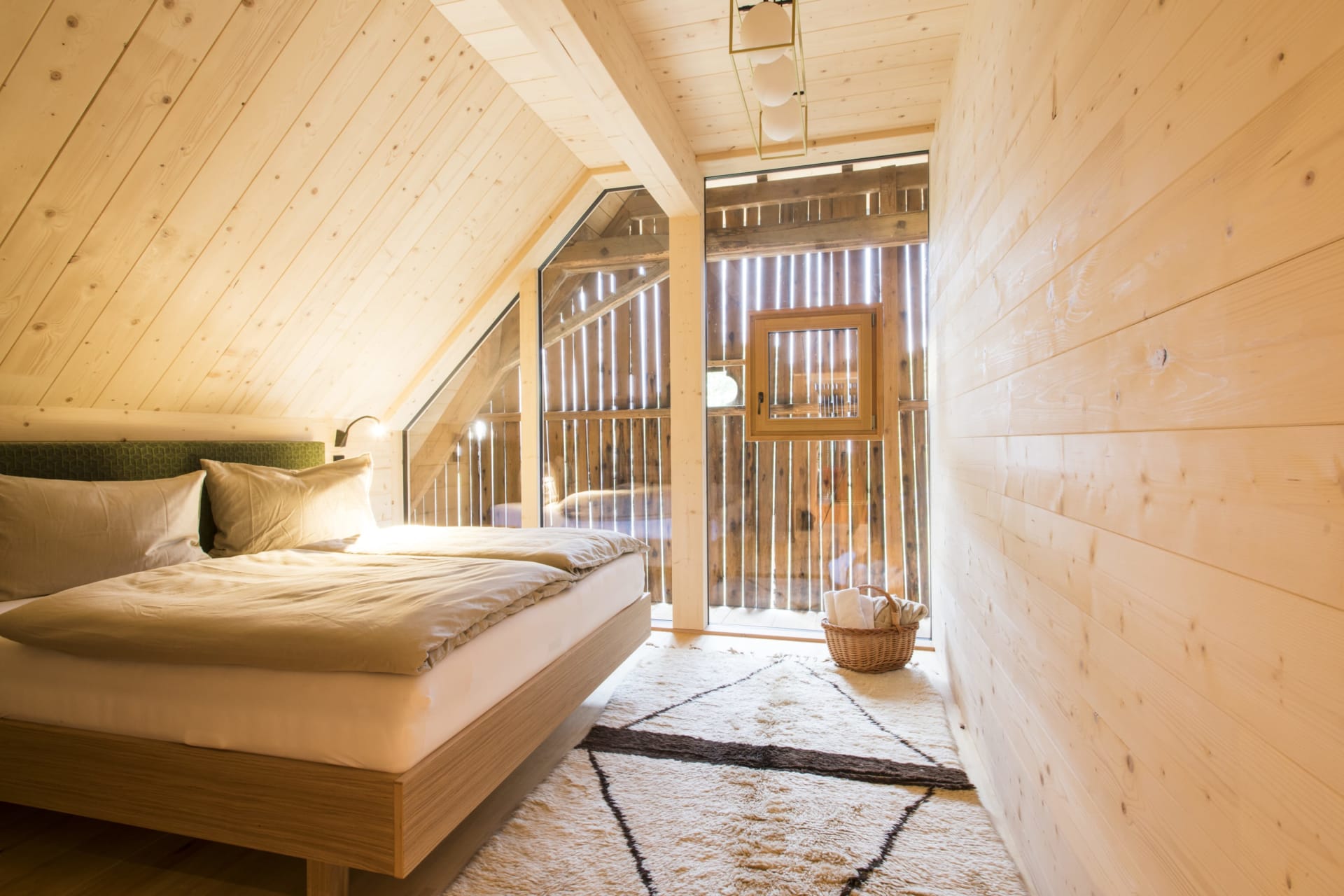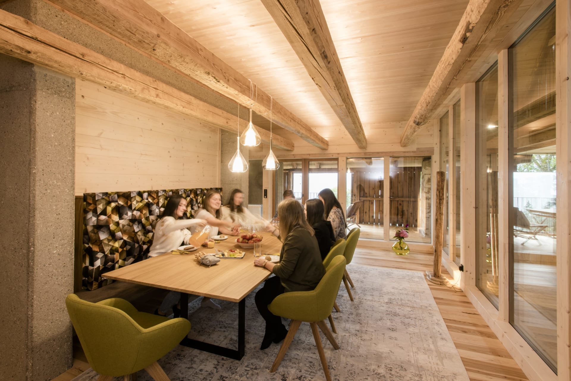 Die Außenfassade wurde im Wesentlichen beibehalten und bildet eine Symbiose mit dem aus Holz-Glas gestalteten Innenbereich. Dabei wurde besonders Wert auf regionales Handwerk, hochwertigste Ausstattung sowie 100 % ökologische Energieversorgung gelegt. Dies lässt Euren Urlaub zu einem unvergesslichen Erlebnis werden.