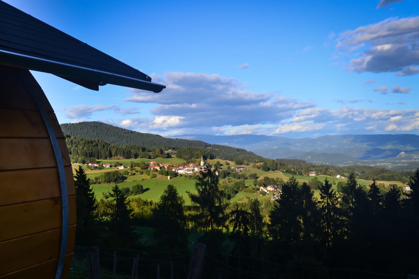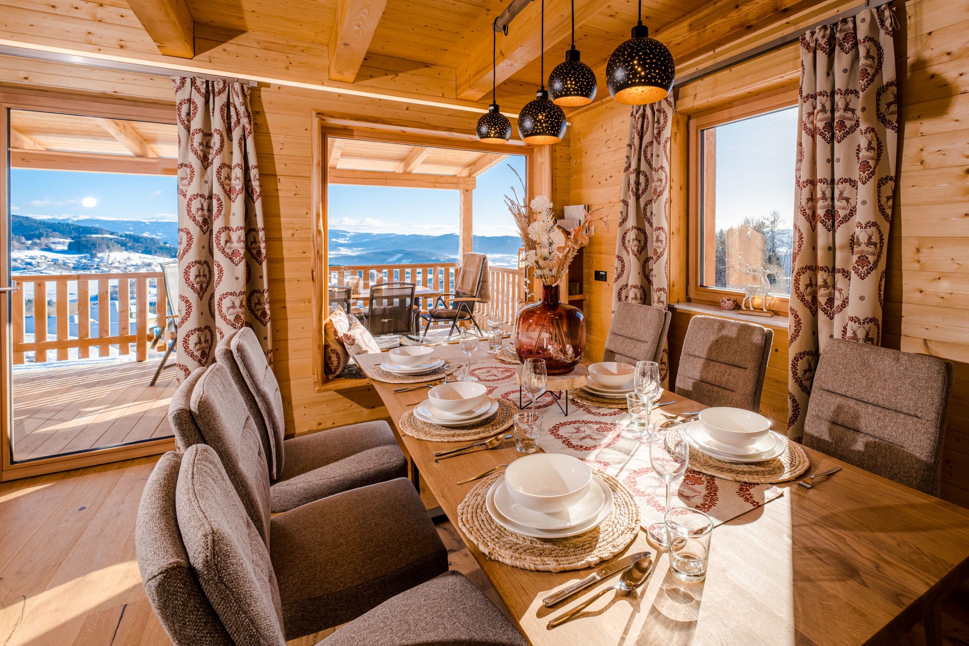 Hier wird “Family Time zu Quality Time”. Die gemütliche Terrasse besticht mit einem atemberaubenden Blick über weite Teile Kärntens und einer privaten Sauna.