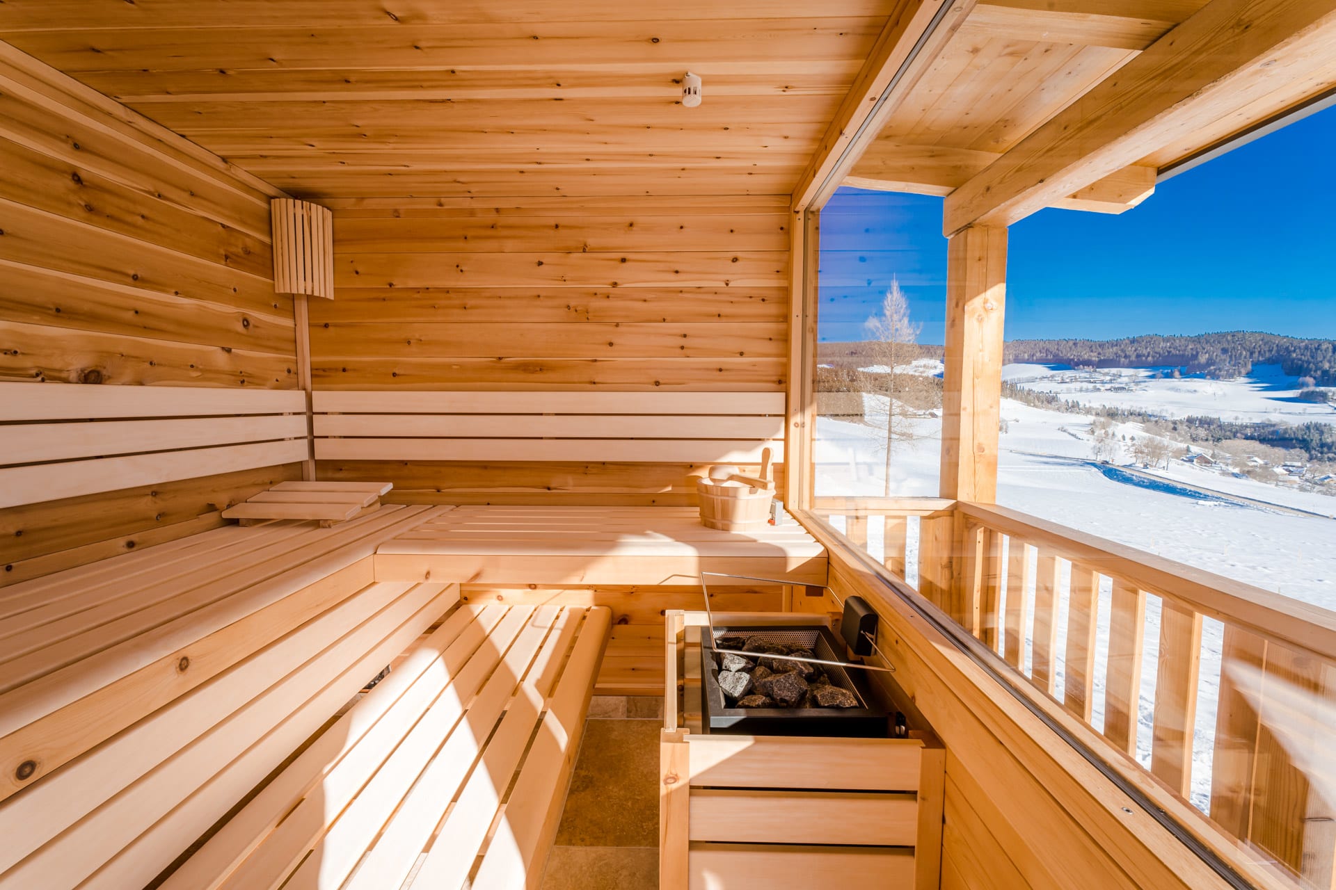 Ihr ganz persönlicher Rückzugsort ist das großzügige Wohlfühlbadezimmer. Verwöhnen Sie sich mit einem Bad in wohltemperiertem Wasser oder genießen Sie Entspannung unserer Physiotherm Infrarotkabine. Manche mögen es heiß und schwitzen lieber in der privaten Sauna mit Panoramablick. Nach einer anschließenden Dusche entspannen Sie sich noch einige Zeit im gemütlichen Relaxbett. Auf Wunsch organisieren wir für Sie auch eine wohltuende Massage.