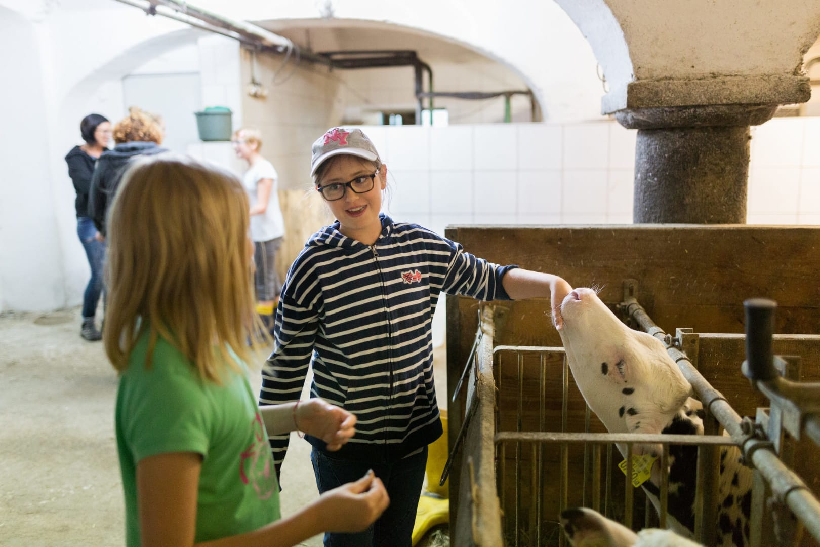 Natürlich kann auch bei der Stallarbeit und beim Versorgen der Tiere mitgeholfen werden.