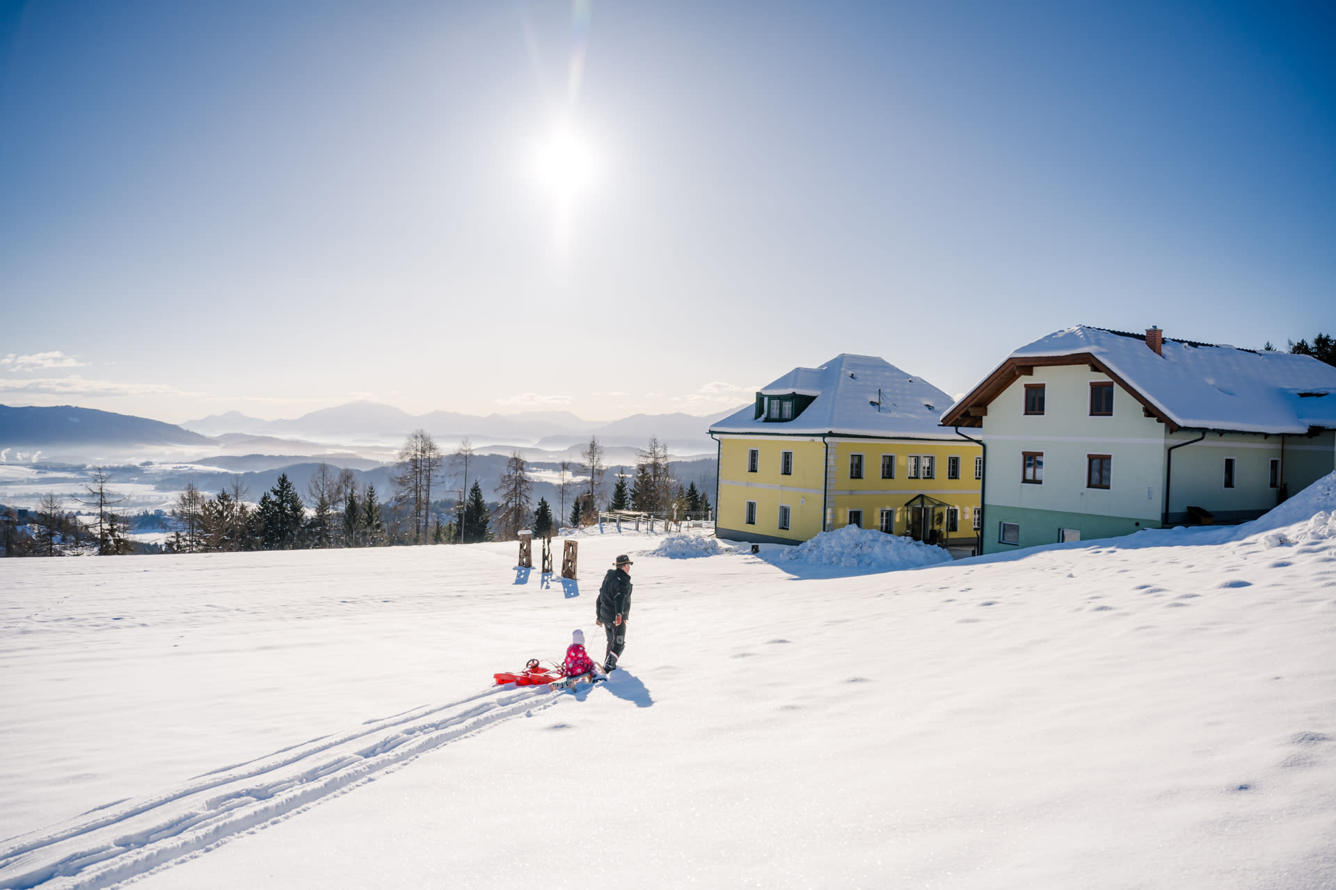 In näherer Umgebung gibt es auch mehrere Seen und Plätze, die man zum Eislaufen nutzen kann und eine Rodelbahn. Viele genießen einfach nur die Sonnenstrahlen bei Ihren Winterwanderungen auf der Glantaler Sonnseite. Erwachsene vergnügen sich auch beim Eisstockschiessen.