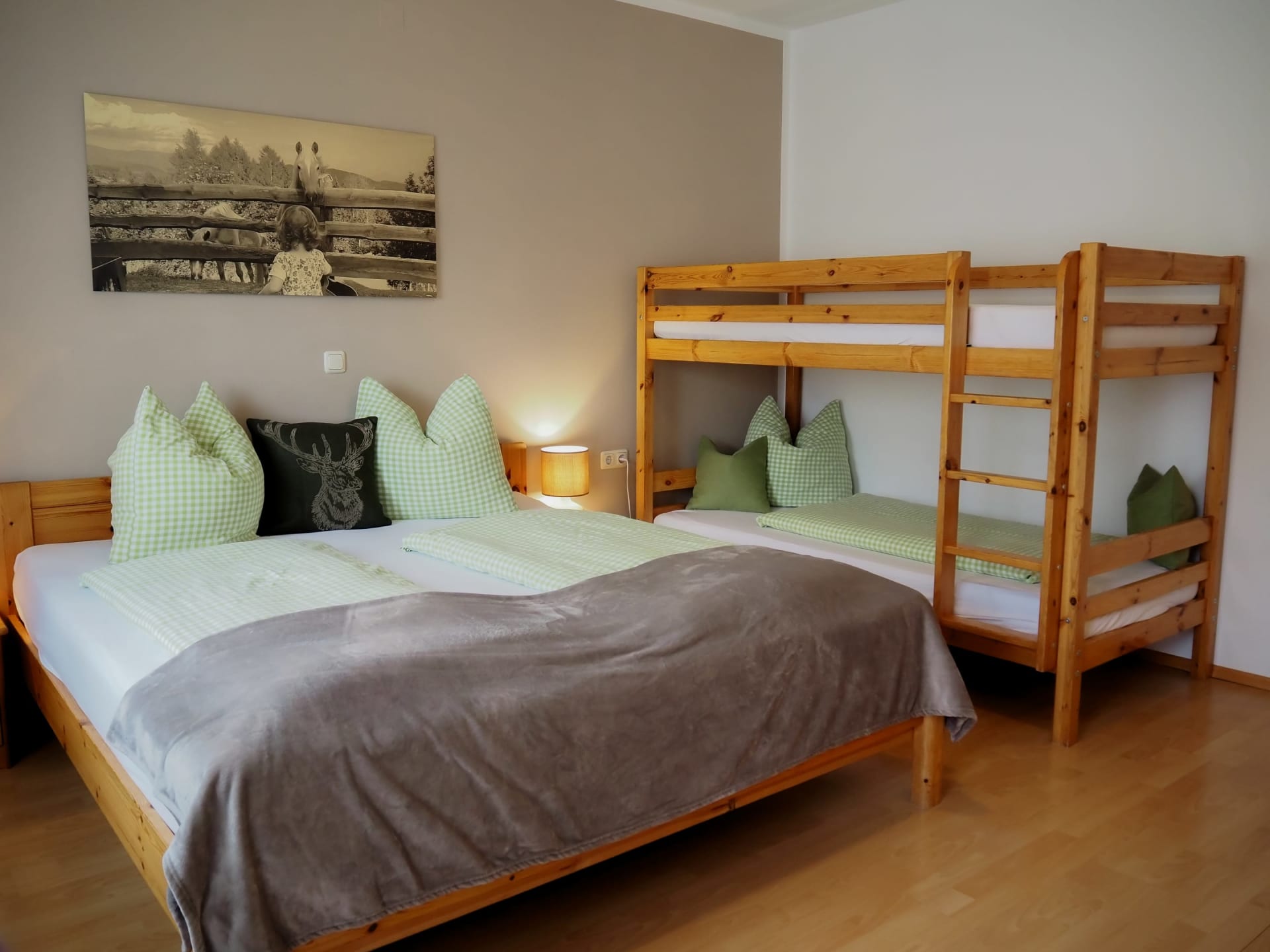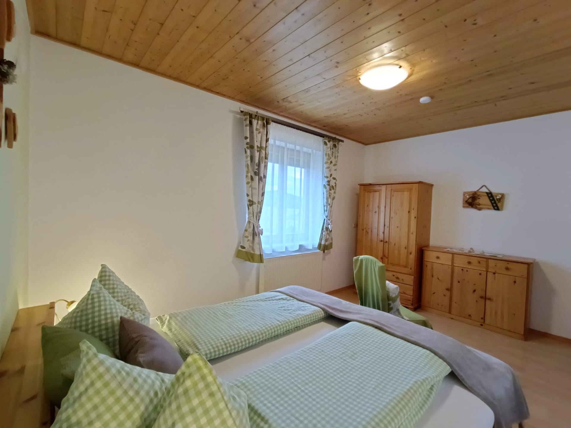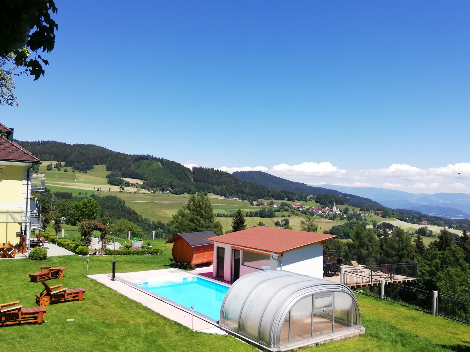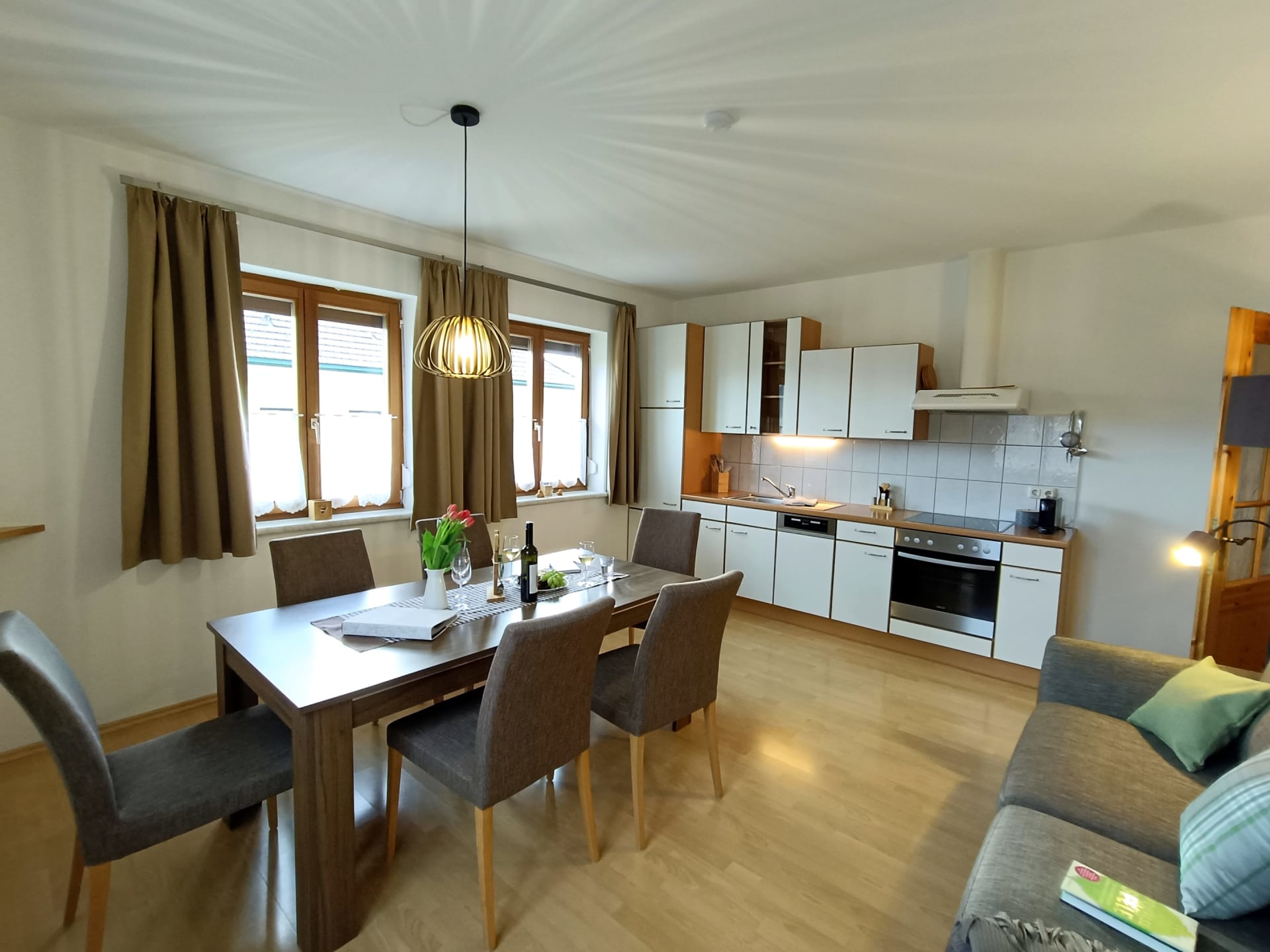 Die Ferienwohnung Magdalensbergblick ist mit Kieferholzmöbel gemütlich eingerichtet und komplett ausgestattet. Die Wohnung besteht aus einer großen Wohnküche, 2 Schlafzimmer, Badezimmer mit Dusche, Badewanne und Waschmaschine, WC, Vorzimmer und einem großen Balkon. Geschirrspüler, Kaffemaschine, SAT-TV, Bettwäsche, Handtücher und Geschirrtücher vorhanden. Gitterbett und Hochstuhl stellen wir Ihnen nach Absprache gerne zur Verfügung. 75 m²