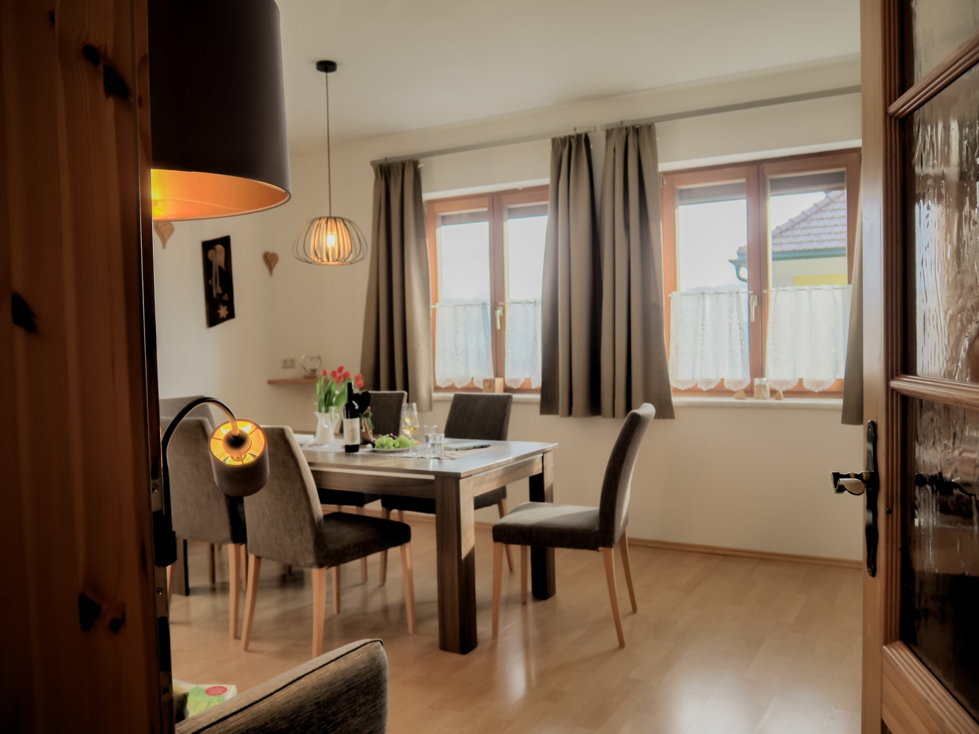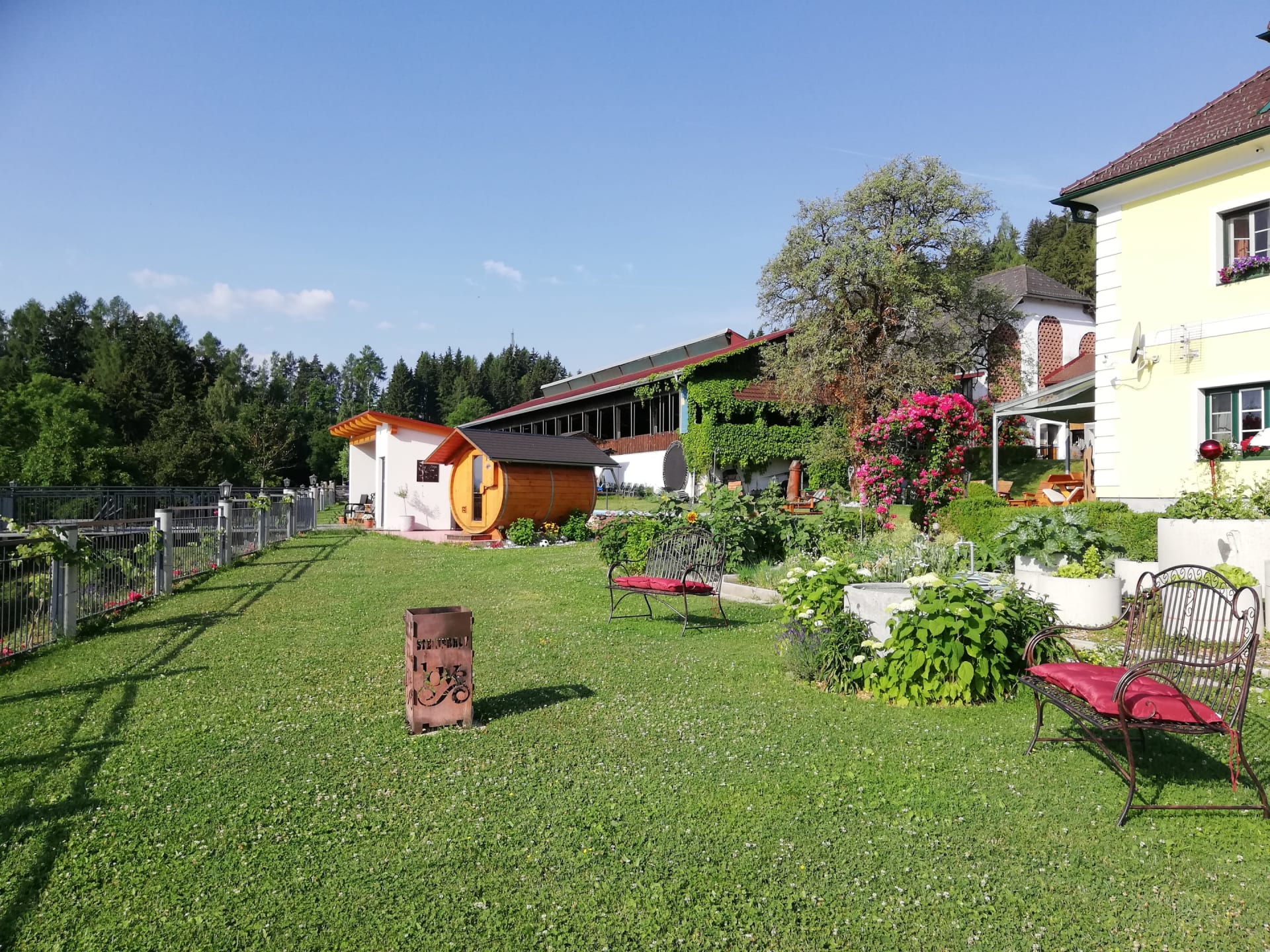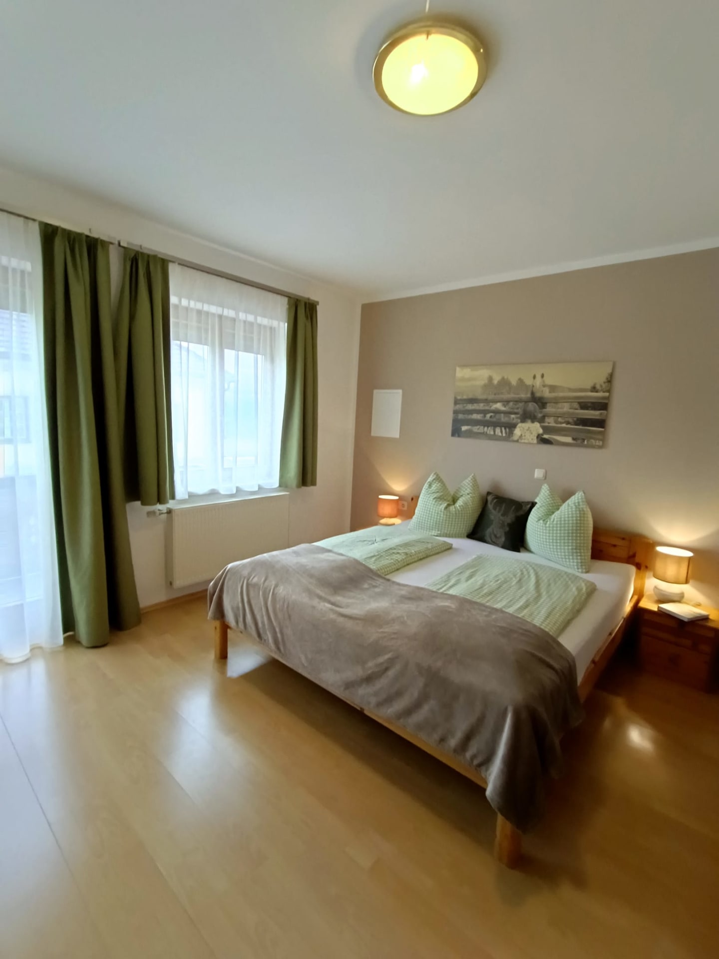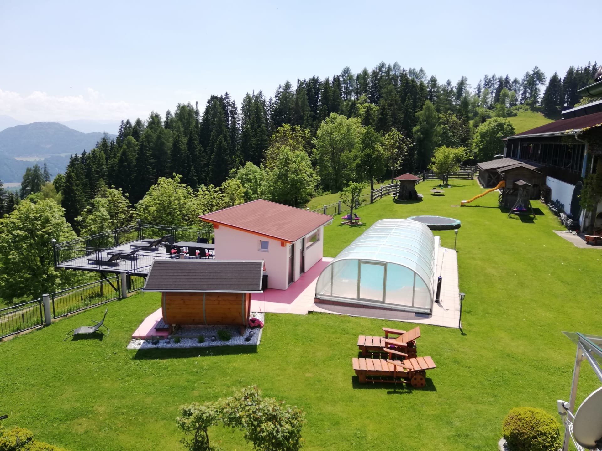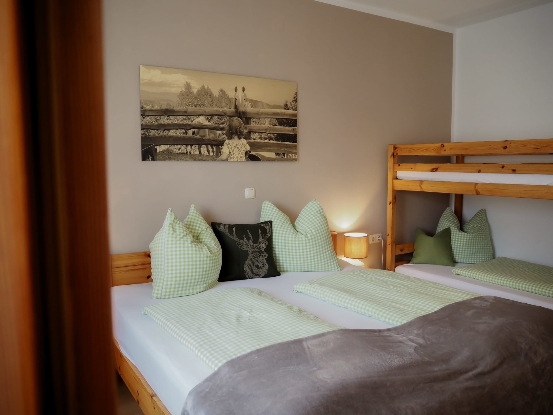 Die Ferienwohnung Magdalensbergblick ist mit Kieferholzmöbel gemütlich eingerichtet und komplett ausgestattet. Die Wohnung besteht aus einer großen Wohnküche, 2 Schlafzimmer, Badezimmer mit Dusche, Badewanne und Waschmaschine, WC, Vorzimmer und einem großen Balkon. Geschirrspüler, Kaffemaschine, SAT-TV, Bettwäsche, Handtücher und Geschirrtücher vorhanden. Gitterbett und Hochstuhl stellen wir Ihnen nach Absprache gerne zur Verfügung. 75 m²