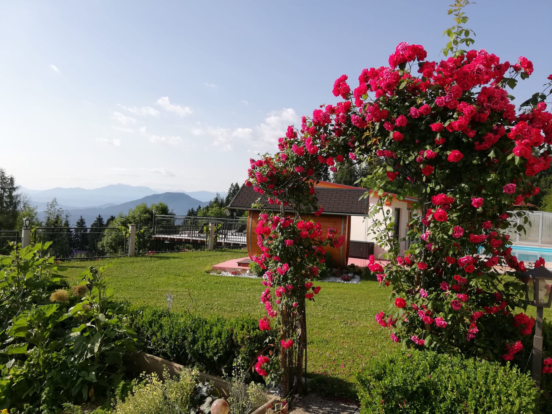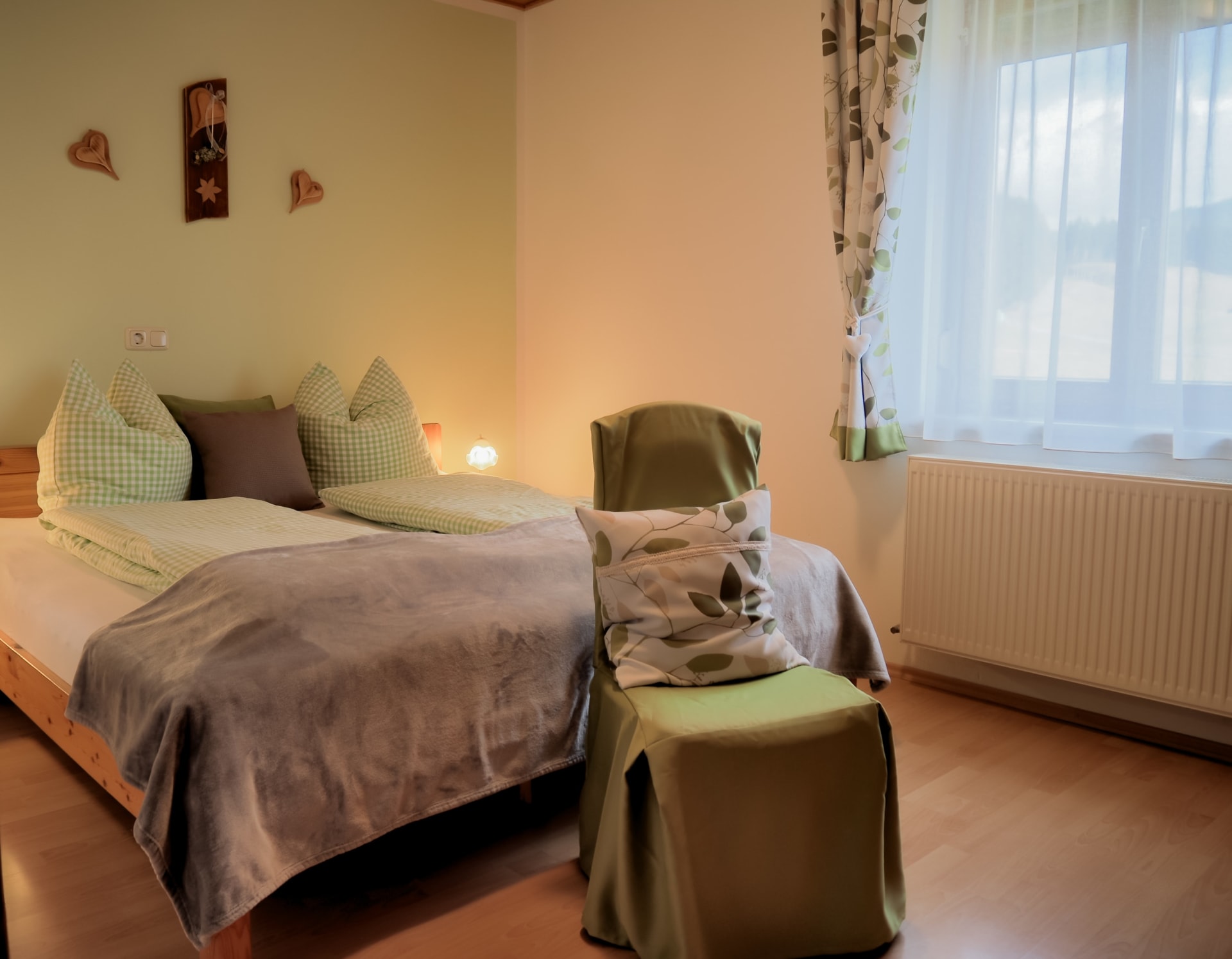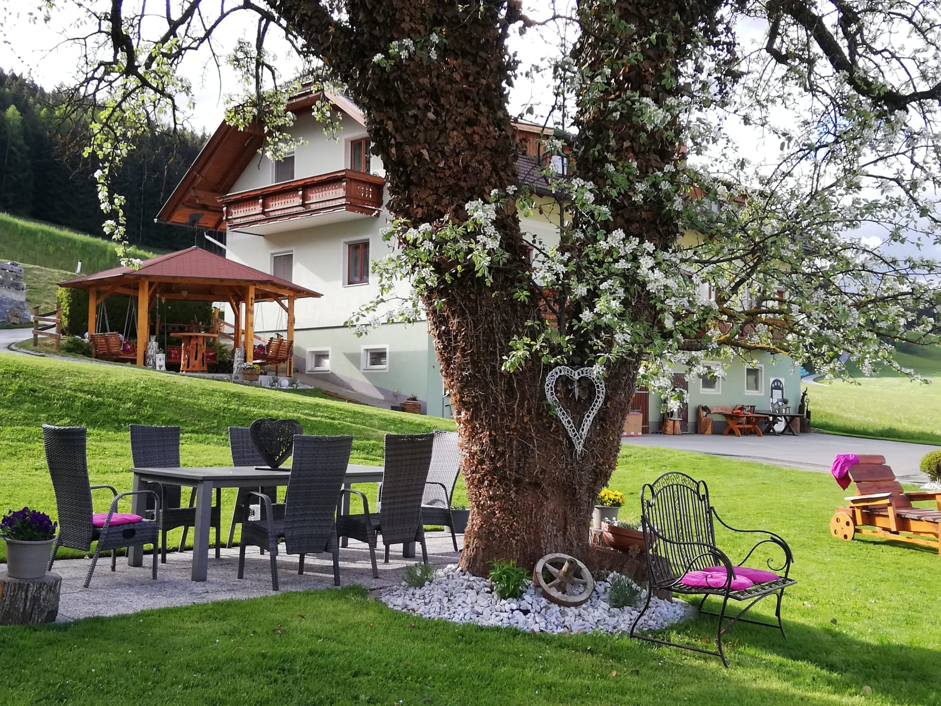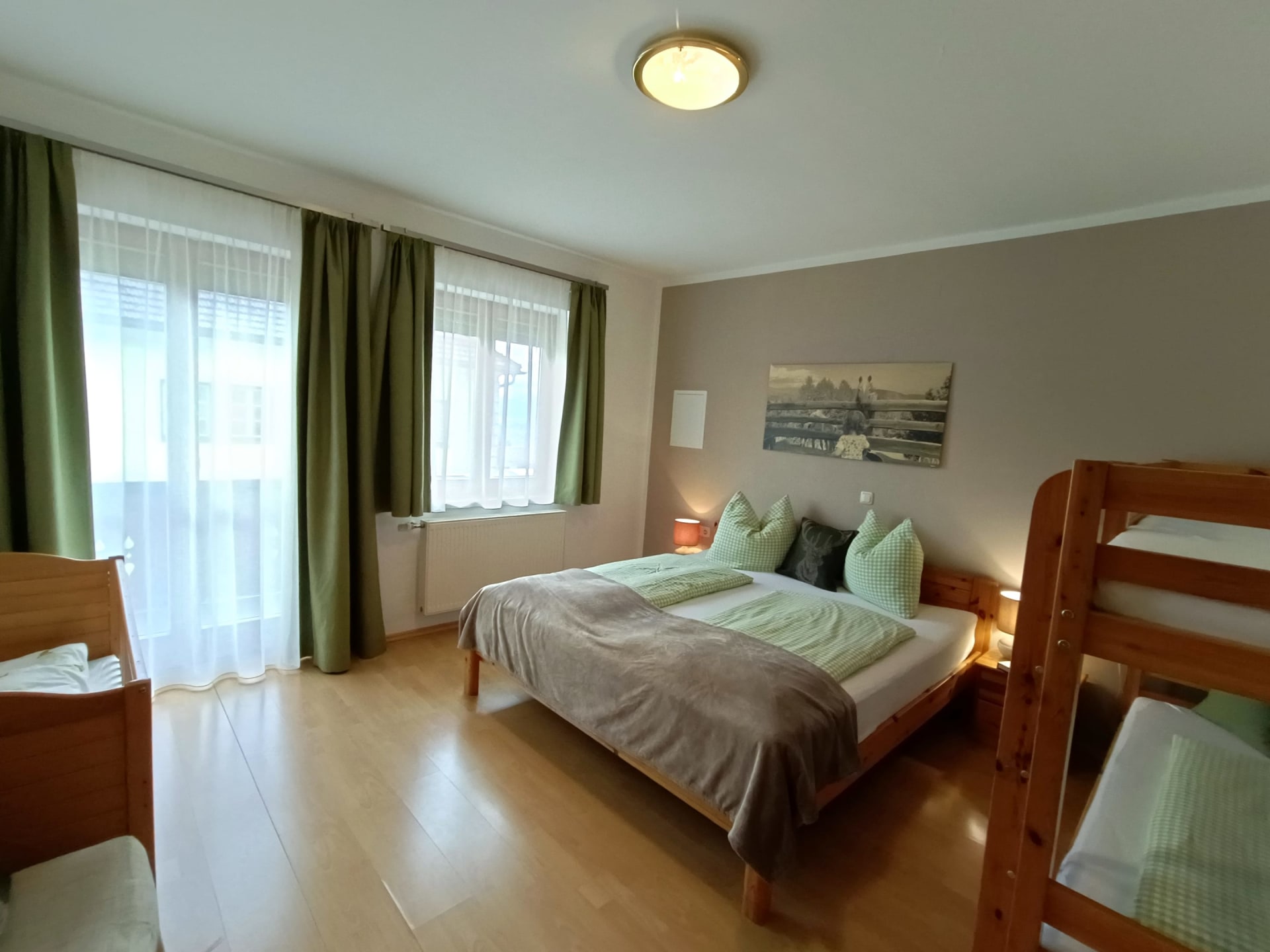 Die Ferienwohnung Magdalensbergblick ist mit Kieferholzmöbel gemütlich eingerichtet und komplett ausgestattet. Die Wohnung besteht aus einer großen Wohnküche, 2 Schlafzimmer, Badezimmer mit Dusche, Badewanne und Waschmaschine, WC, Vorzimmer und einem großen Balkon. Geschirrspüler, Kaffemaschine, SAT-TV, Bettwäsche, Handtücher und Geschirrtücher vorhanden. Gitterbett und Hochstuhl stellen wir Ihnen nach Absprache gerne zur Verfügung. 75 m²