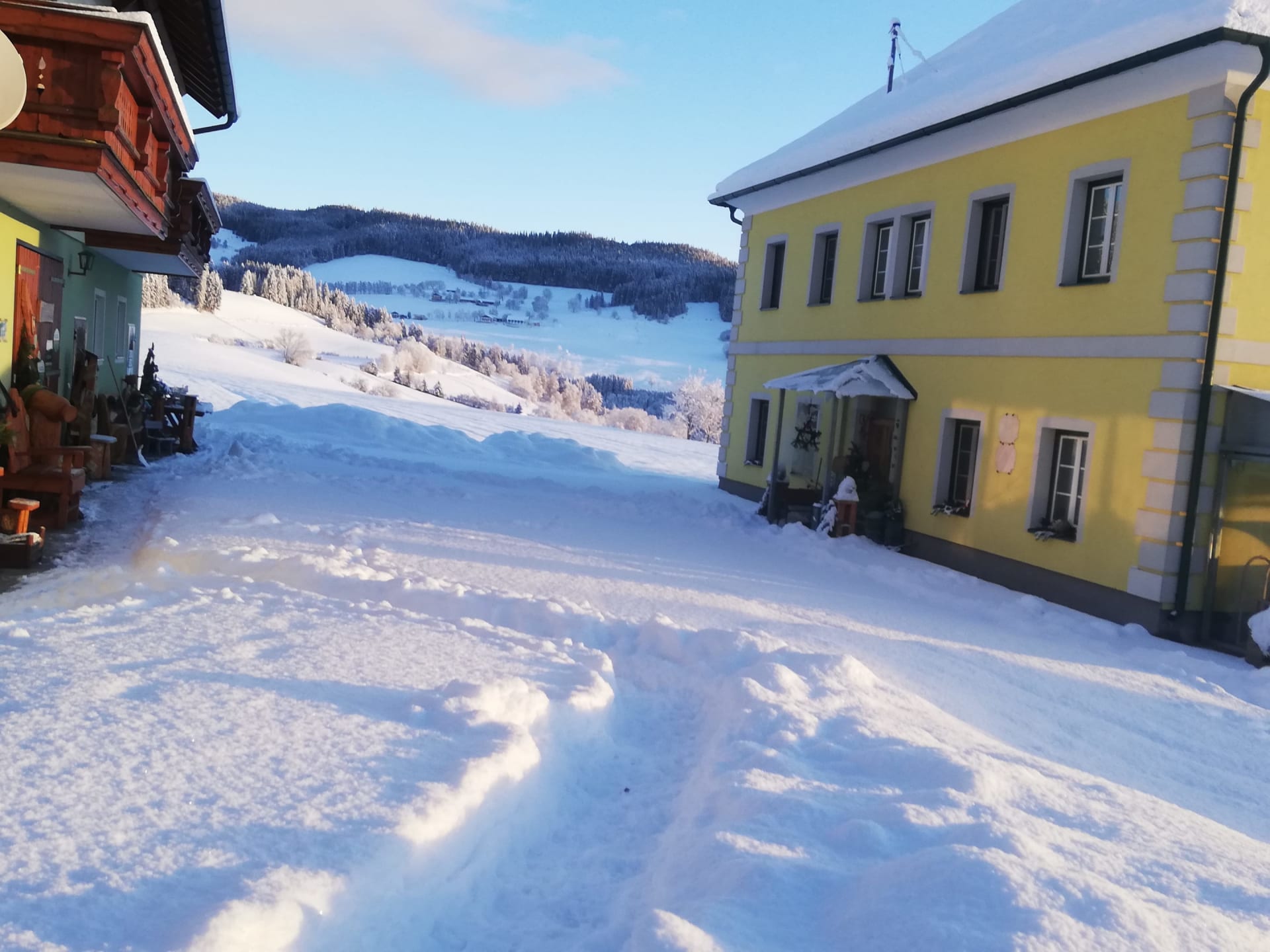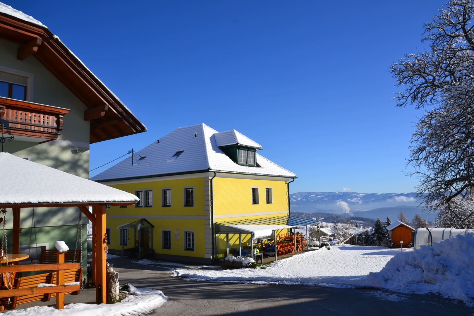 In näherer Umgebung gibt es auch mehrere Seen und Plätze, die man zum Eislaufen nutzen kann und eine Rodelbahn. Viele genießen einfach nur die Sonnenstrahlen bei Ihren Winterwanderungen auf der Glantaler Sonnseite. Erwachsene vergnügen sich auch beim Eisstockschiessen.