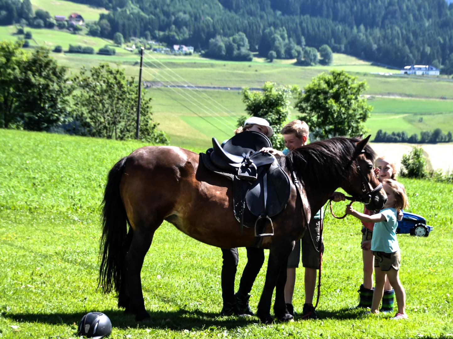 Natürlich kann auch bei der Stallarbeit und beim Versorgen der Tiere mitgeholfen werden.