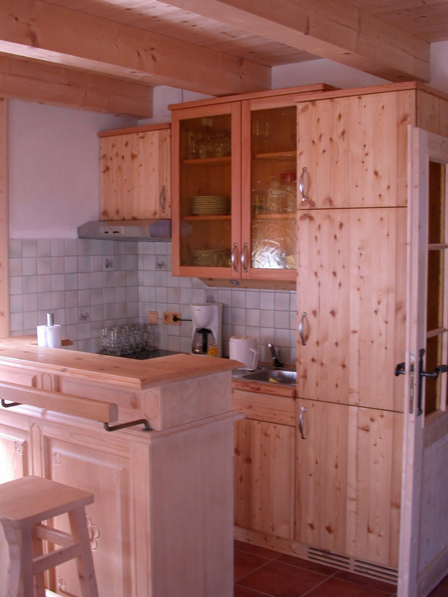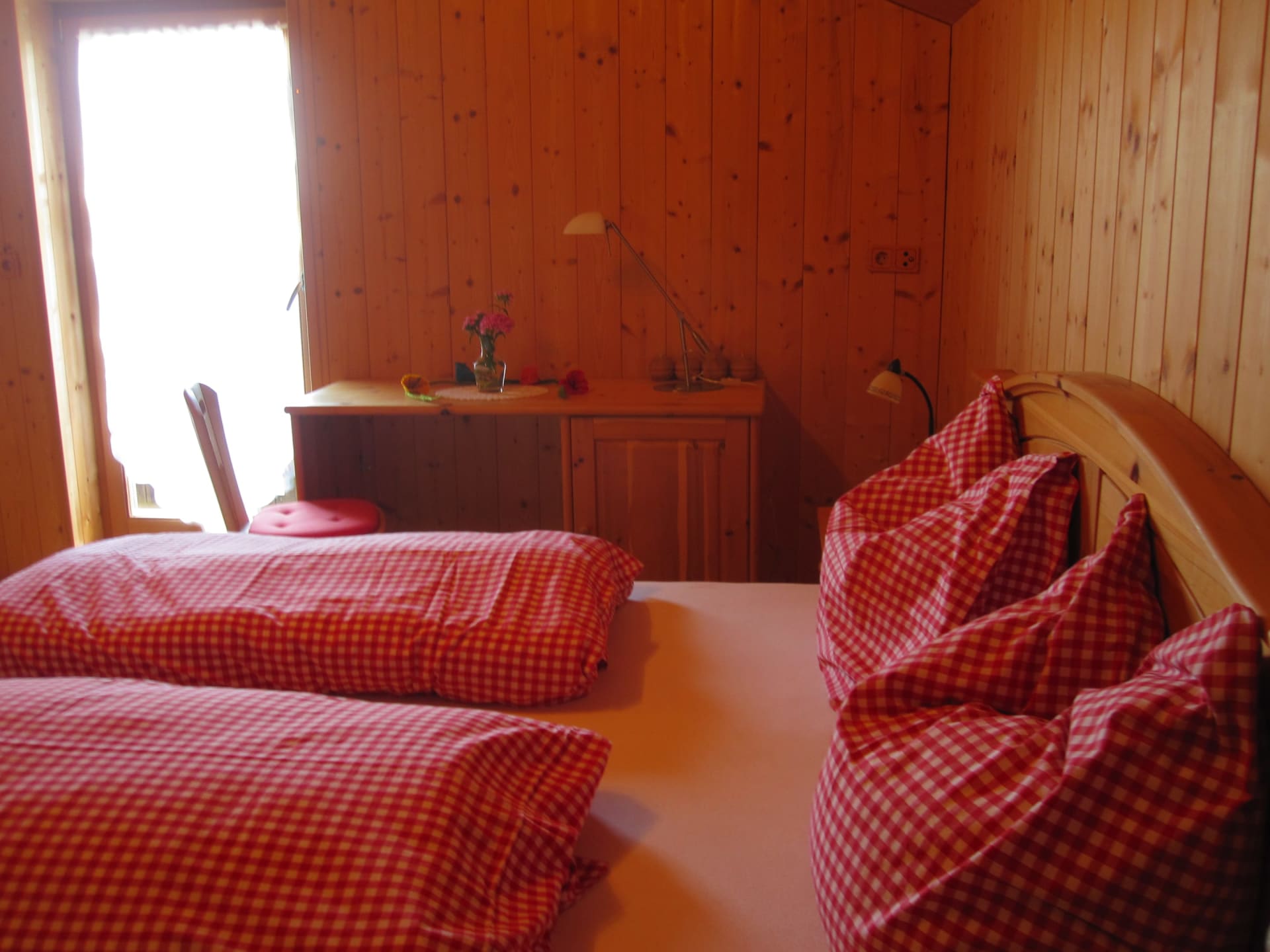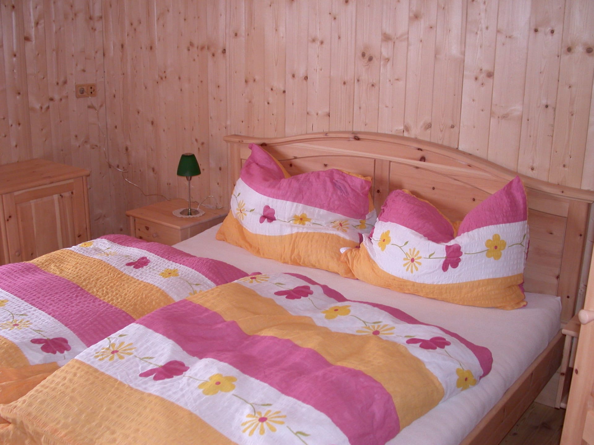 Neu erbautes Bio-Holzhaus. Große Wohnstube mit Kochecke (Gefrierkombination, Geschirrspüler, E-Herd), Kachelofen mit Sichtfenster, Sitzecke, Wohncouch, Sat-TV. Über eine Treppe zwei Doppelzimmer (eines mit Ausziehbett), ein Einzelzimmer. Zwei Badezimmer (Dampfdusche oder Wanne) und WC. Südseitige Terrasse.