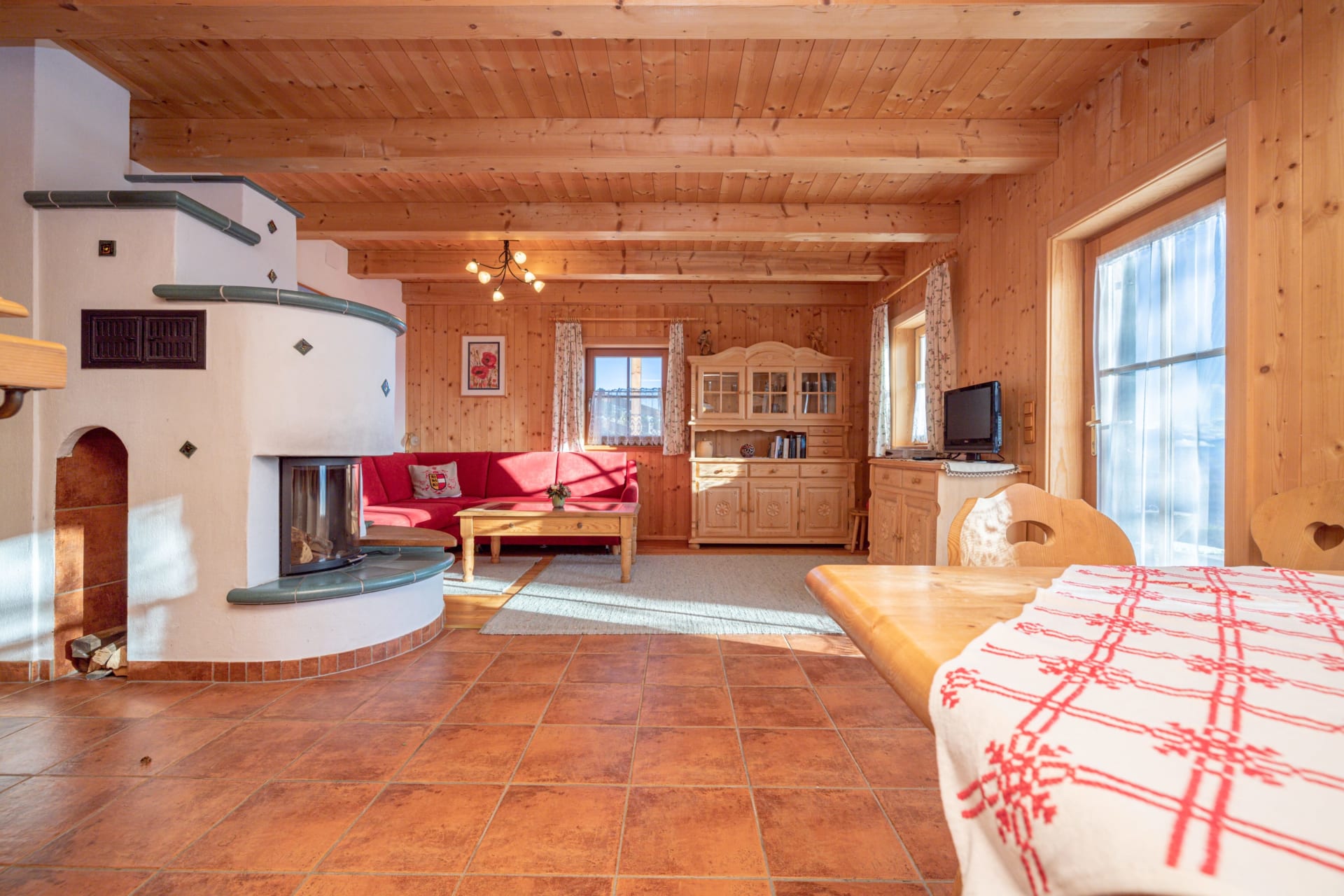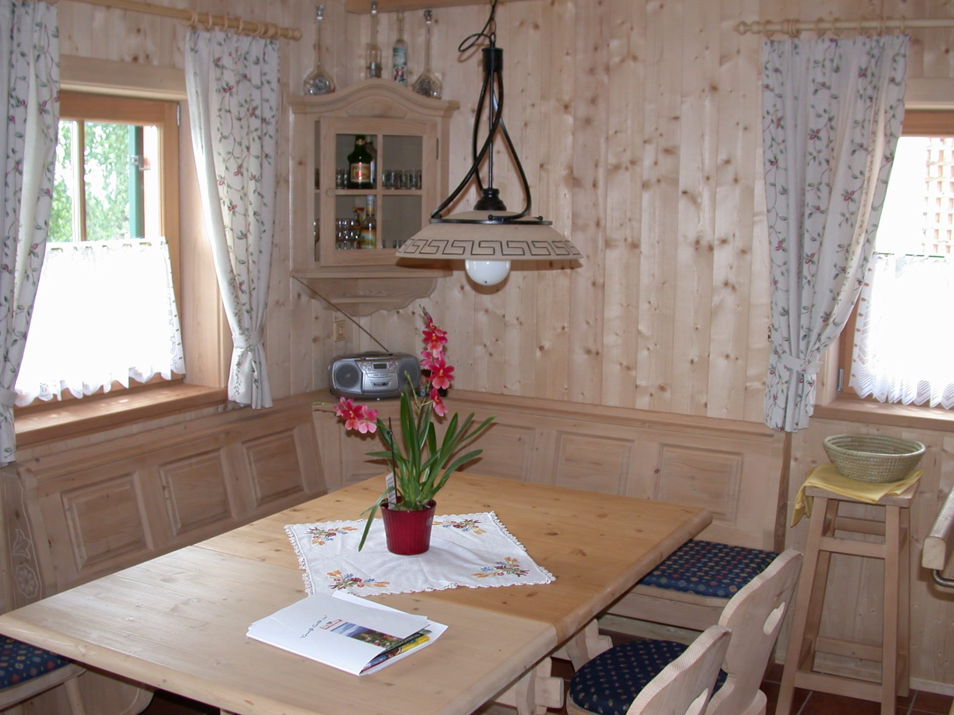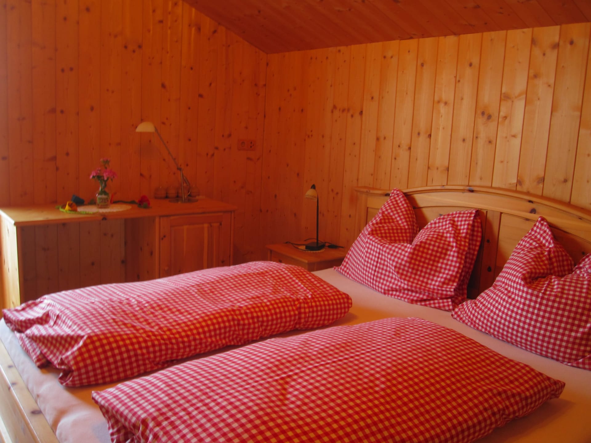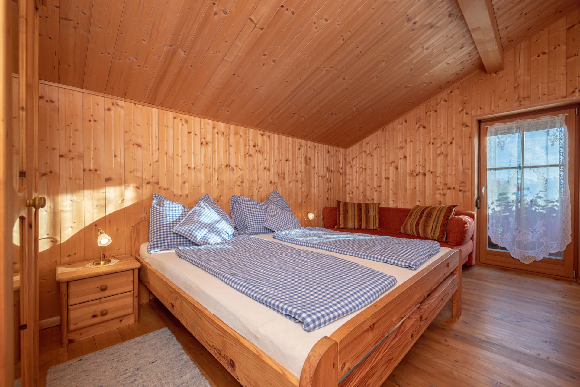 Neu erbautes Bio-Holzhaus. Große Wohnstube mit Kochecke (Gefrierkombination, Geschirrspüler, E-Herd), Kachelofen mit Sichtfenster, Sitzecke, Wohncouch, Sat-TV. Über eine Treppe zwei Doppelzimmer (eines mit Ausziehbett), ein Einzelzimmer. Zwei Badezimmer (Dampfdusche oder Wanne) und WC. Südseitige Terrasse.