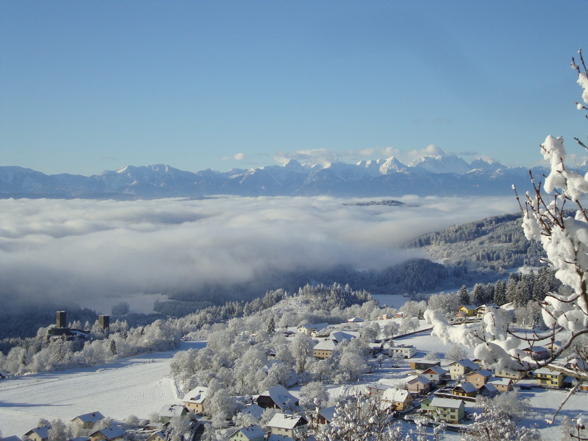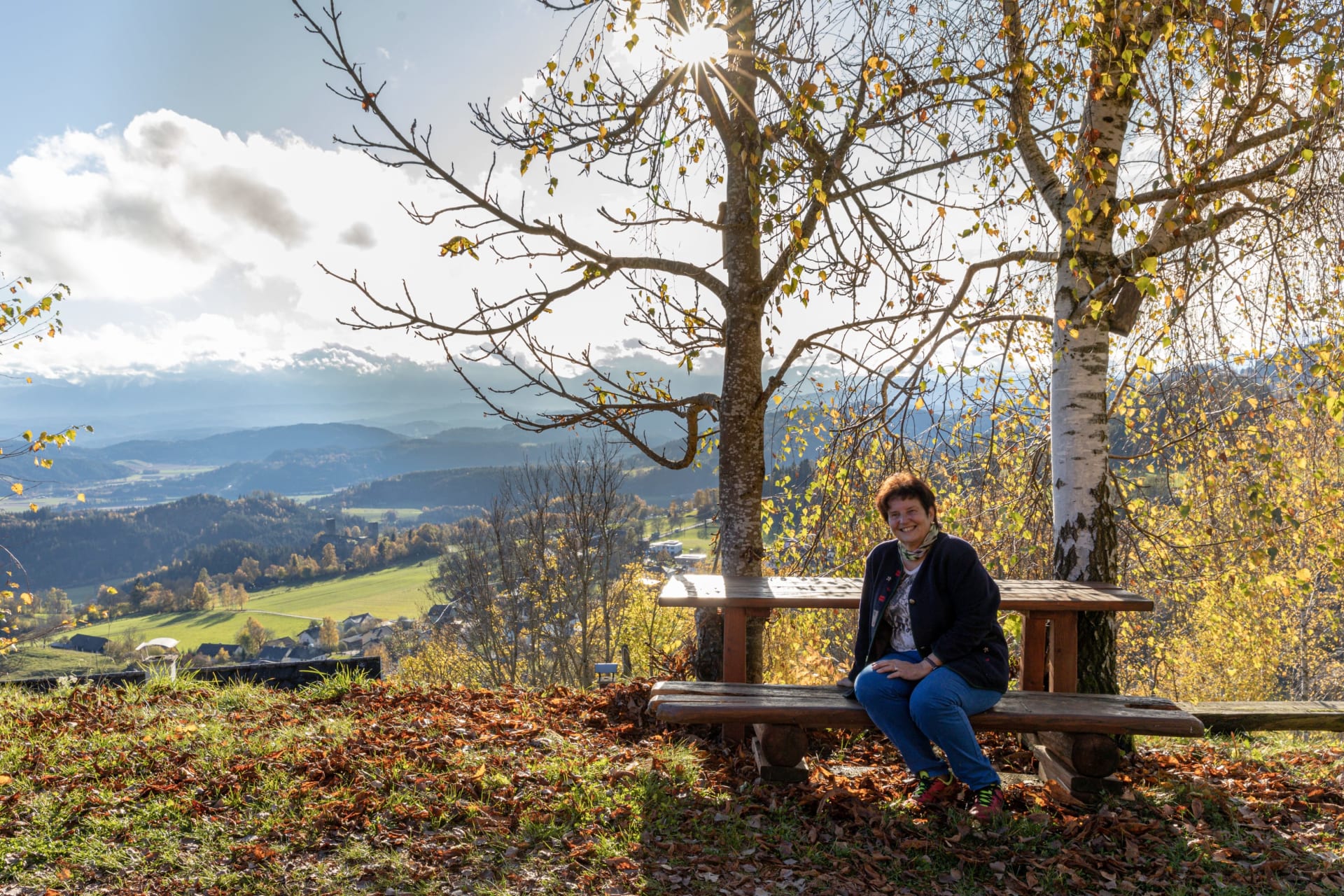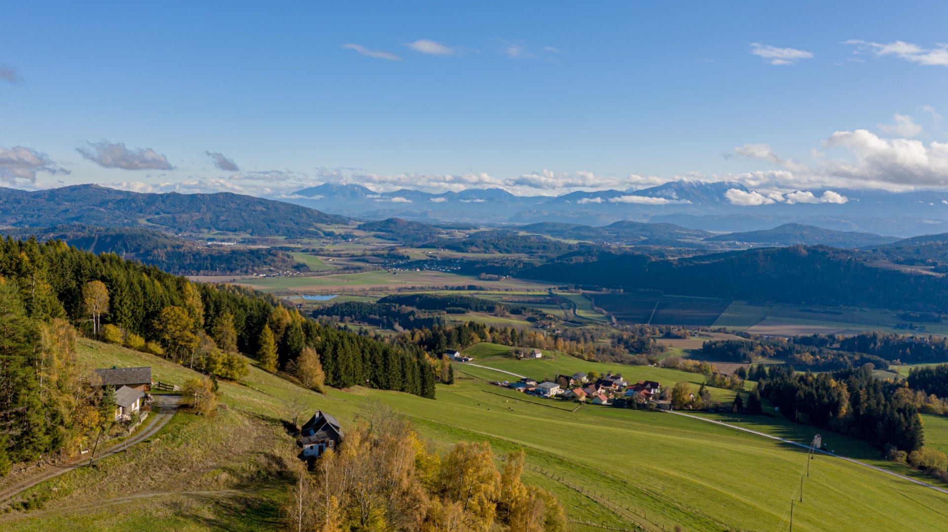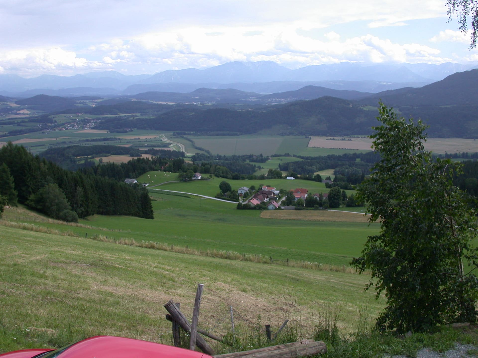 Lage: Am Waldrand, Anhöhe oberhalb des Dorfes, mit weitem Blick über Mittelkärnten.