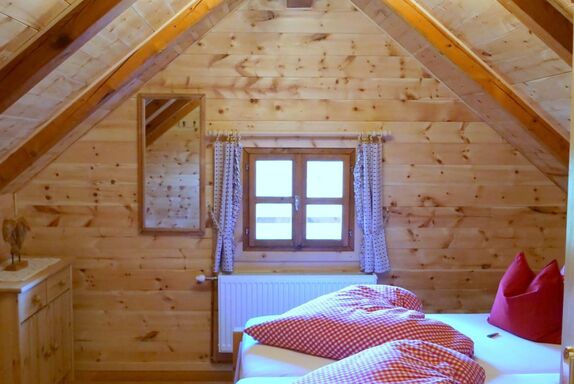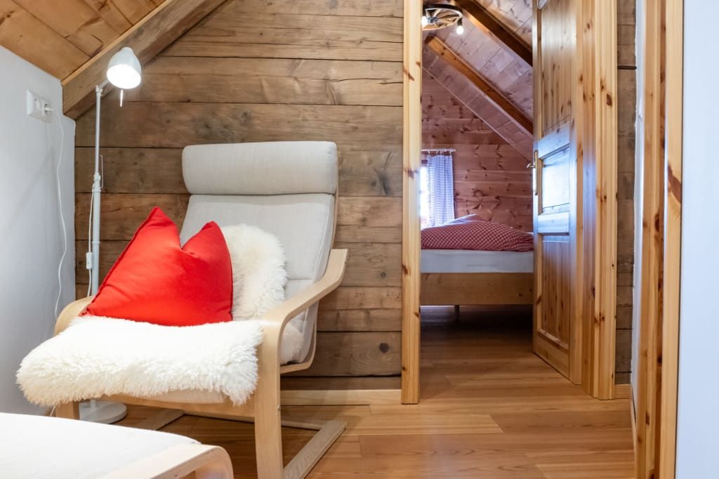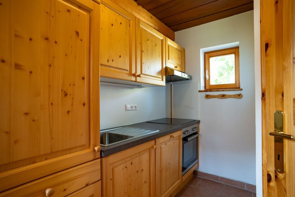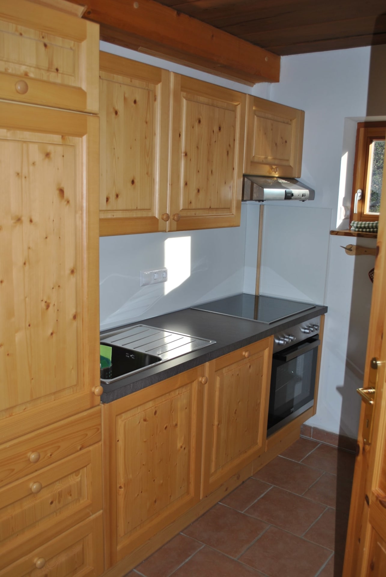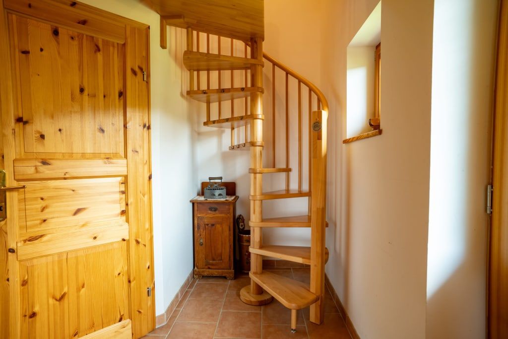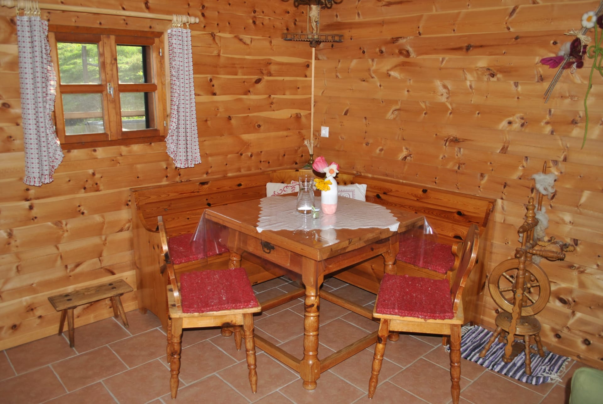 Der Zirben-Troadkasten wurde mit natürlichen Materialien gebaut, im Erdgeschoss befinden sich der Wohnbereich, die Küche und das Badezimmer, über eine Wendeltreppe geht es in den ersten Stock, dort gibt es ein Schlafzimmer mit einem Doppelbett und eines mit einem Einzelbett.