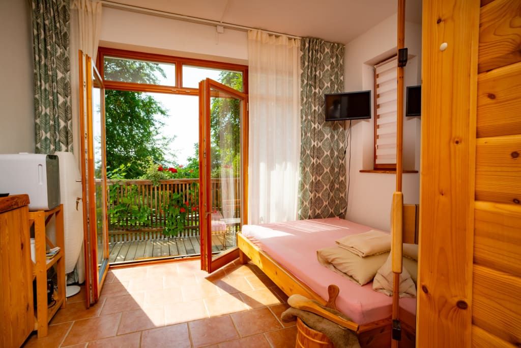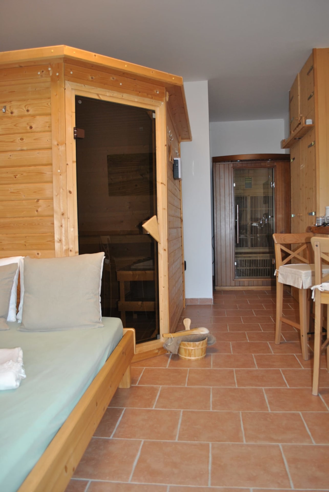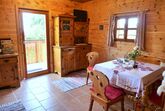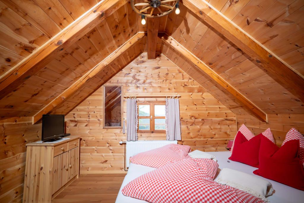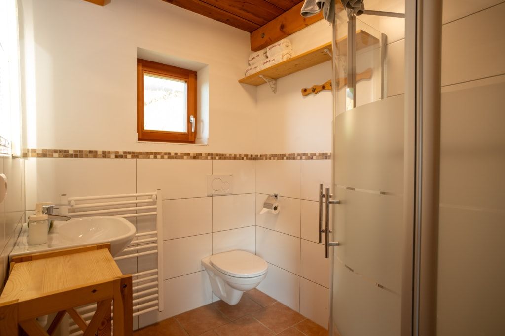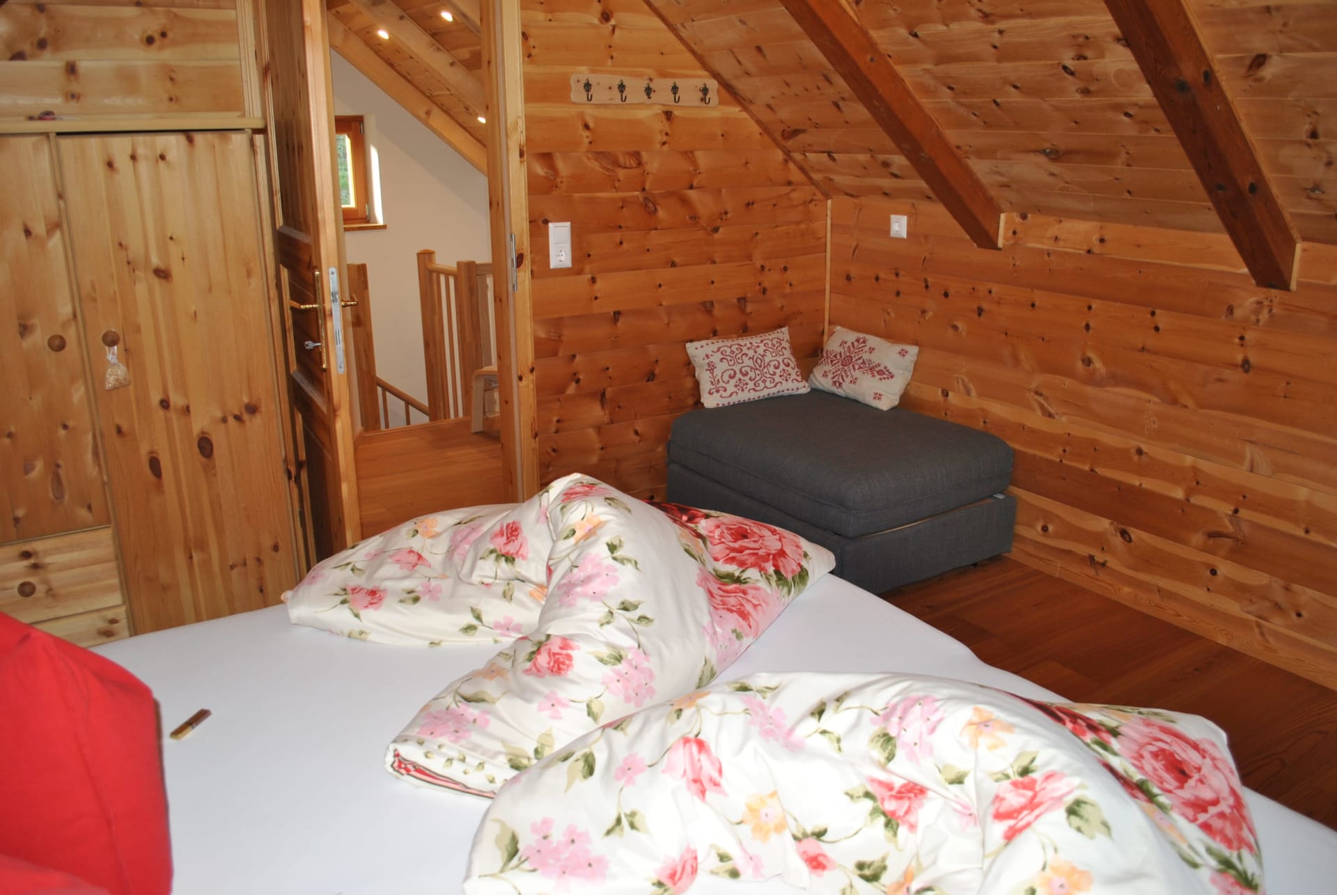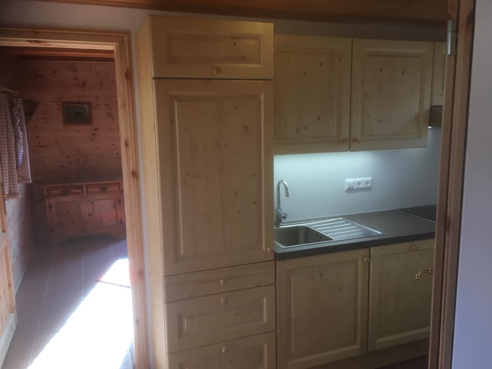 Der Zirben-Troadkasten wurde mit natürlichen Materialien gebaut, im Erdgeschoss befinden sich der Wohnbereich, die Küche und das Badezimmer, über eine Wendeltreppe geht es in den ersten Stock, dort gibt es ein Schlafzimmer mit einem Doppelbett und eines mit einem Einzelbett.