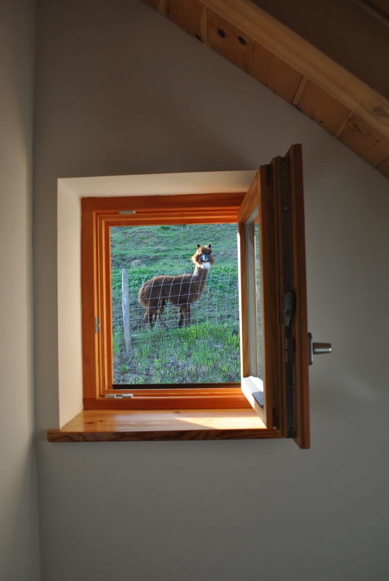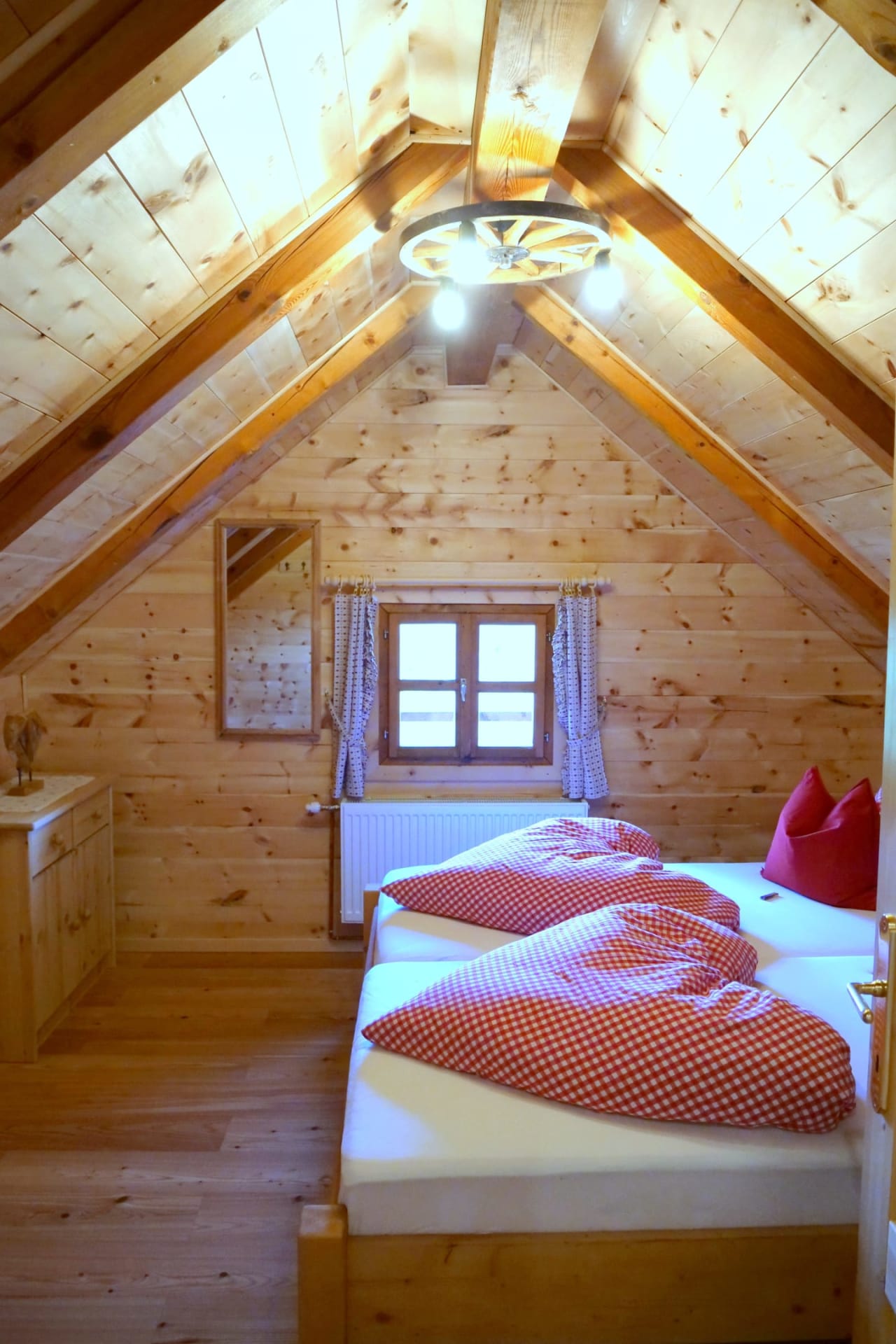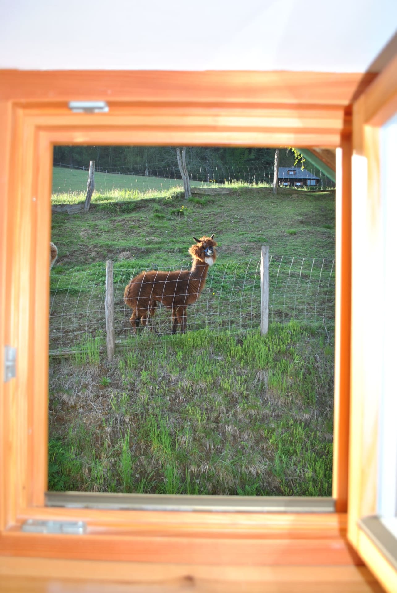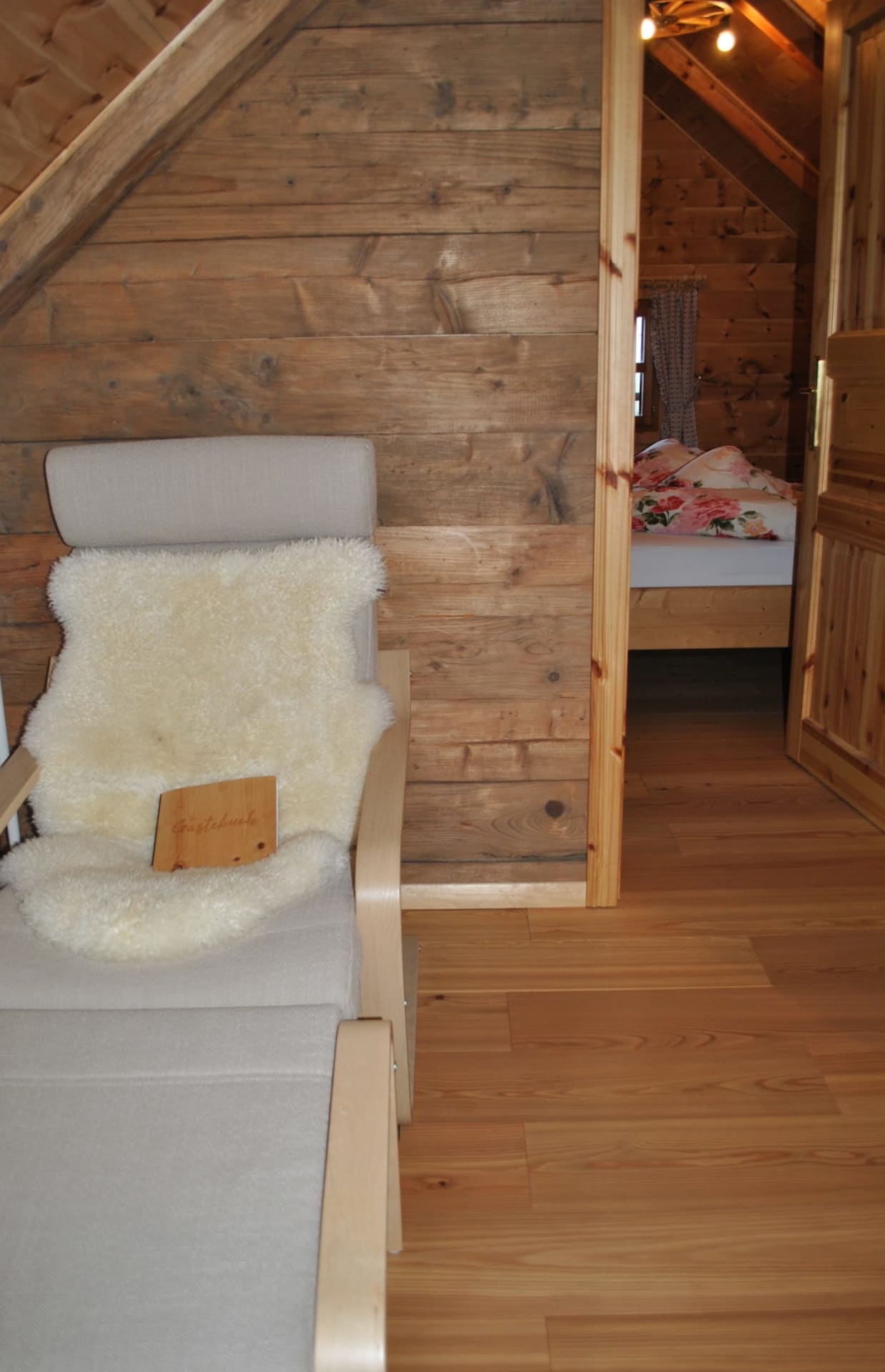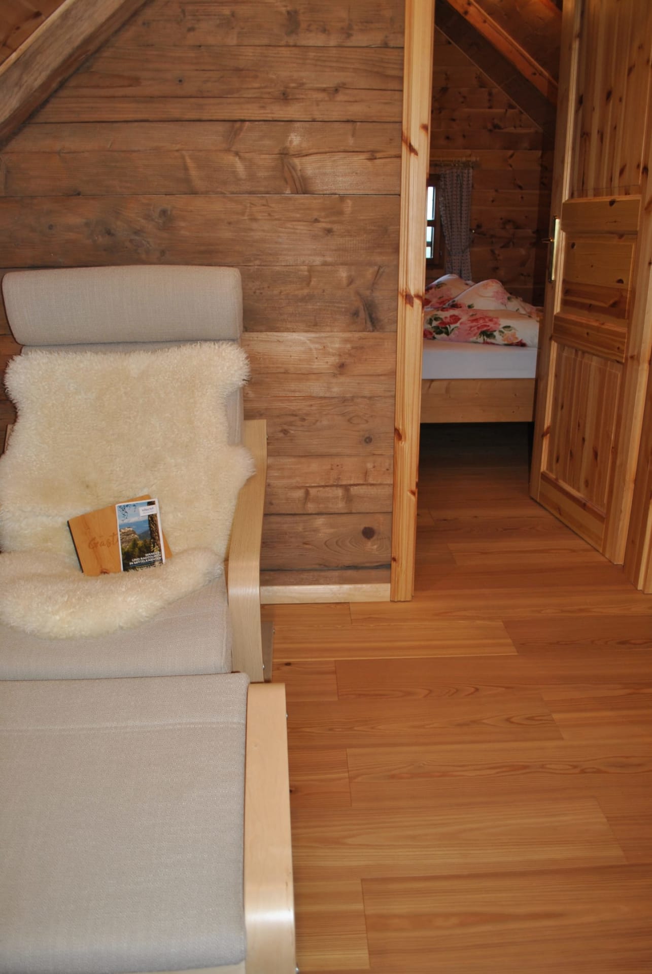 Die Wände wurden mit unbehandelten Zirbenbrettern verkleidet, dadurch wird im ganzen Haus ein wohliger Geruch verstöhmt, der Sie eingehüllt in Lamadecken besonders ruhig schlafen lässt.