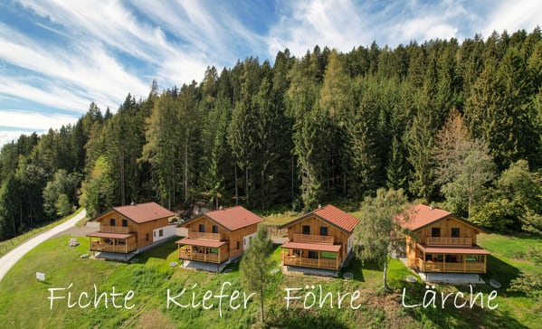 Die Ferienhäuser wurden mit sogenanntem Mondphasenholz aus unserem eigenen Wald, in vier verschiedenen Holzarten, nachhaltig im Holzriegelbau errichtet.