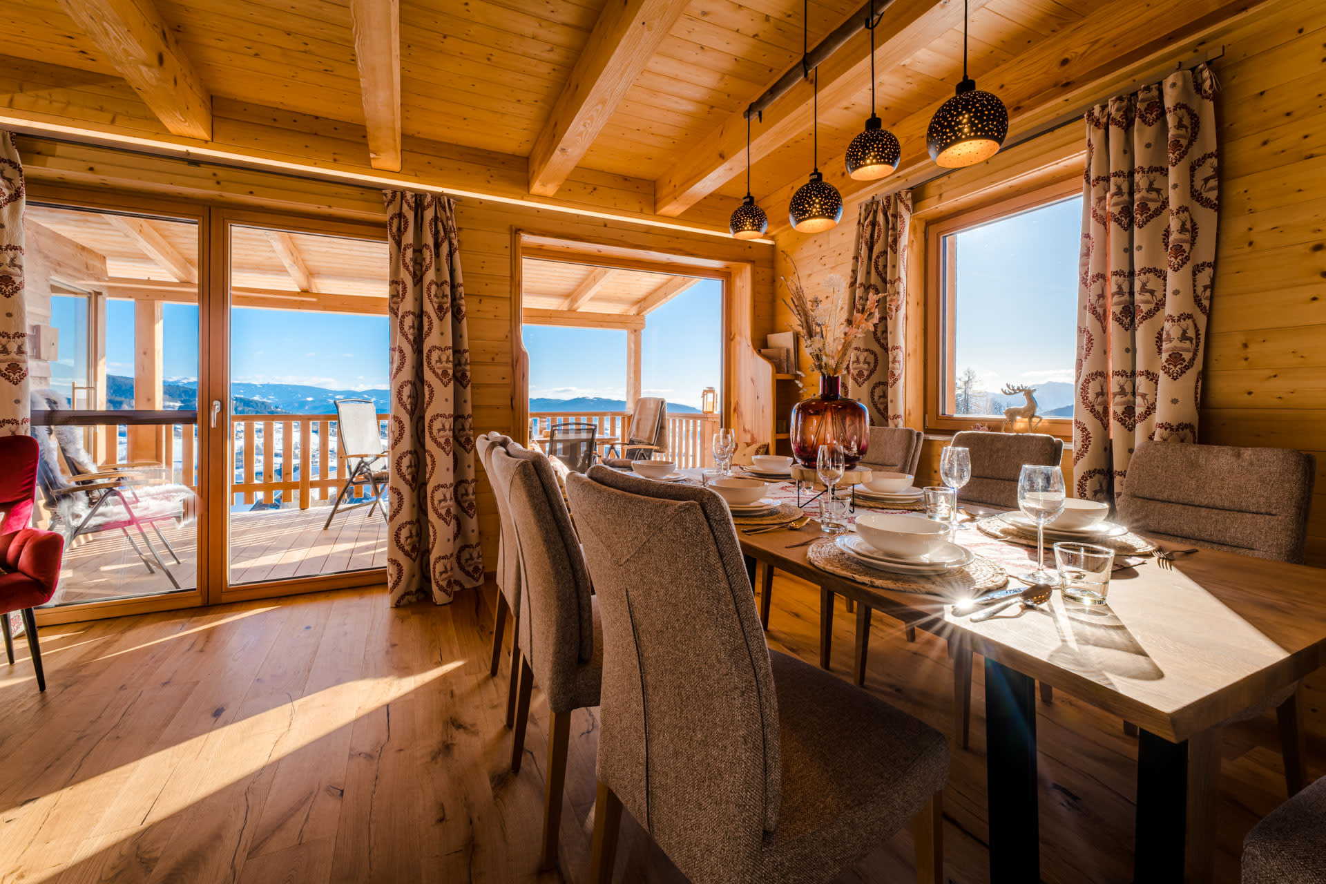 Hier wird “Family Time zu Quality Time”. Die gemütliche Terrasse besticht mit einem atemberaubenden Blick über weite Teile Kärntens und einer privaten Sauna.