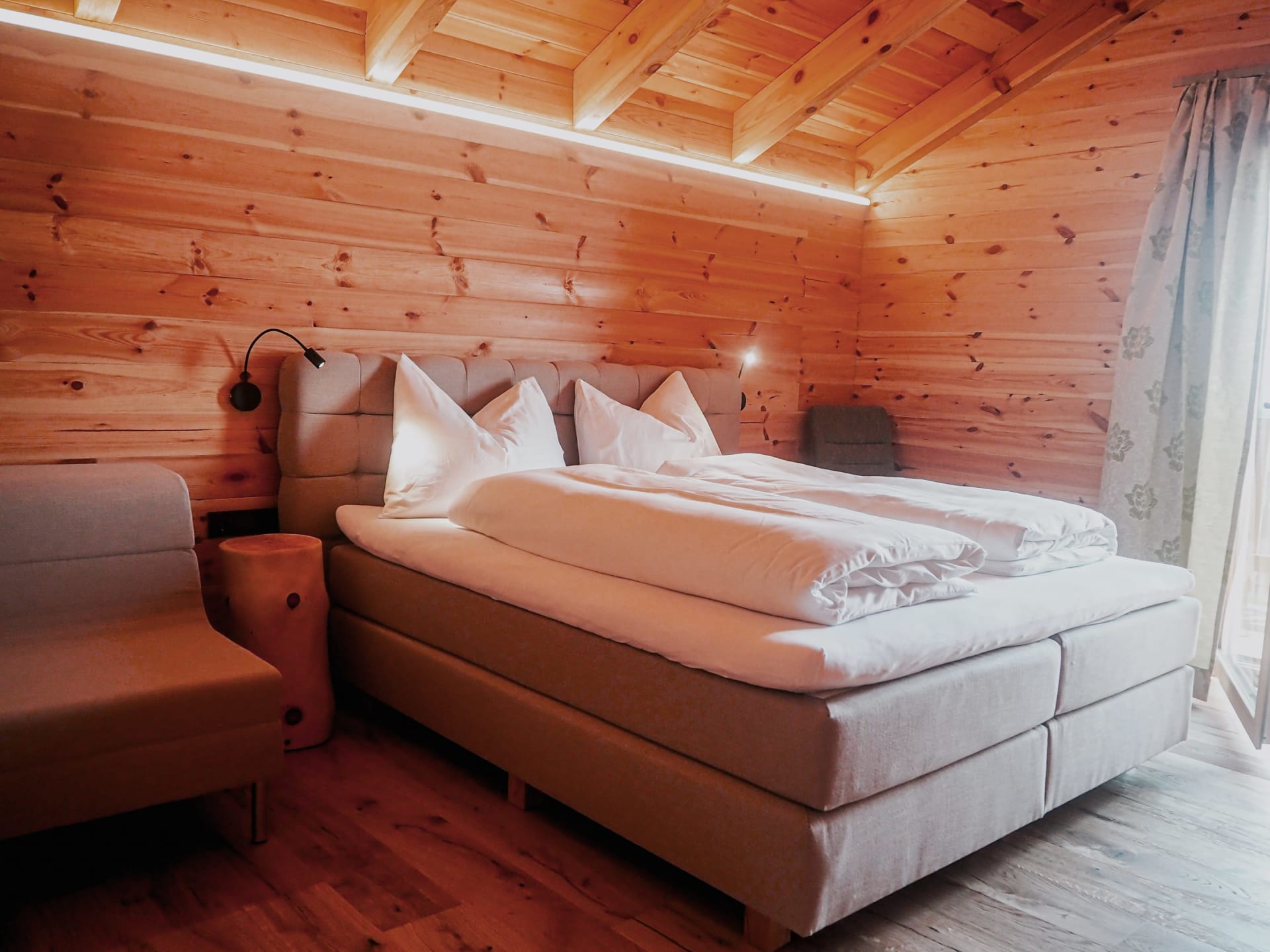 Unsere Chalets sind gemütlich, modern und liebevoll eingerichtet und strahlen durch die sanften Farben und natürlichen Stoffe einen besonderen Charme aus. In drei Schlafzimmer finden 6 bis 8 Personen Platz, das Erdgeschoss ist barrierefrei. Lichtdurchflutete Räume sorgen für Wohlbefinden und Wärme und somit für einen unbeschwerten Urlaub in Zweisamkeit, mit der Familie oder mit Freunden.