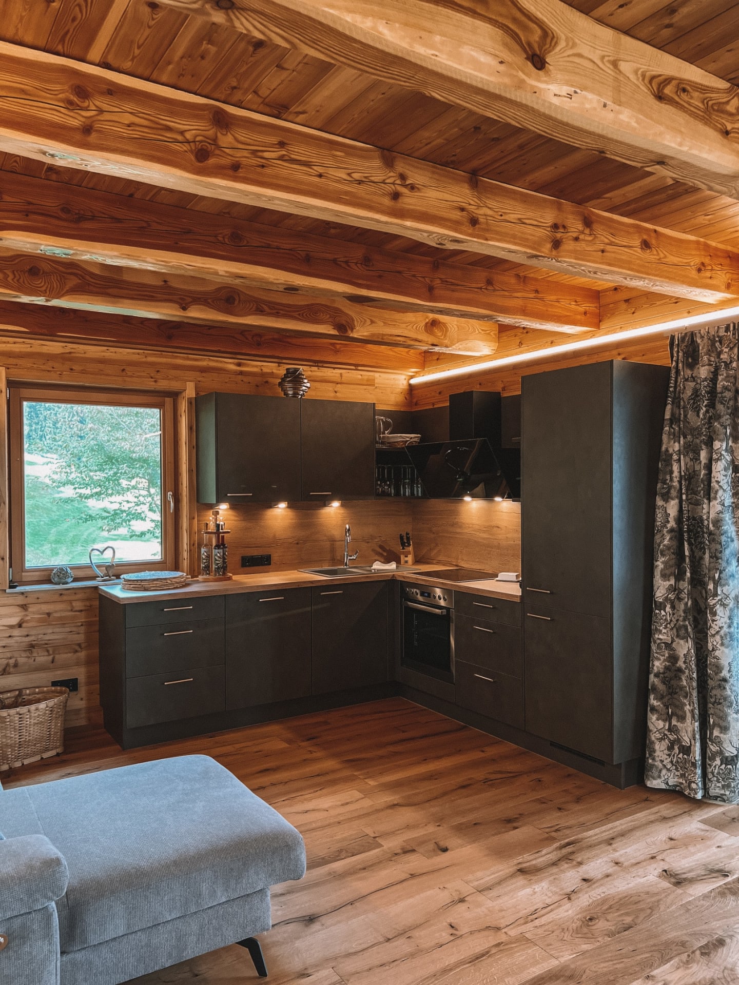 Das Chalet verfügt über eine große Wohnküche mit hochwertiger Ausstattung, ein Schlafzimmer mit Doppelbett und Dusche, zwei Schlafzimmer mit Doppelbett und Balkon, ein großes Wohlfühlbadezimmer mit Infrarotkabine und zwei separate Toiletten. Die Sauna mit Panoramafenster befindet sich auf der Terrasse.