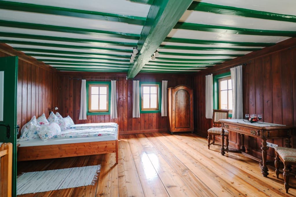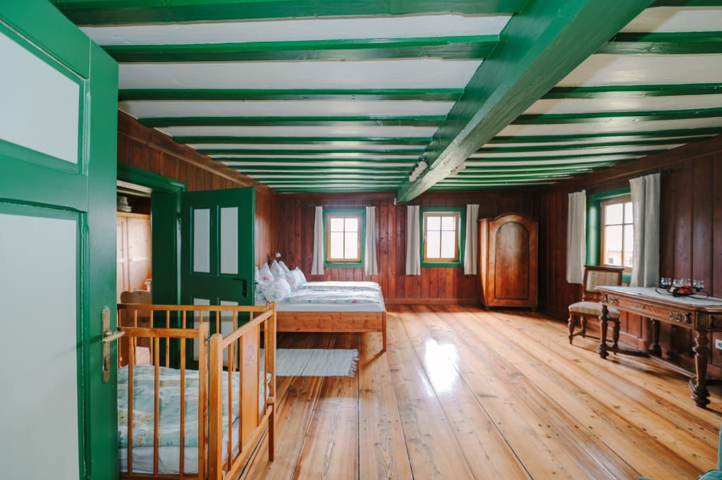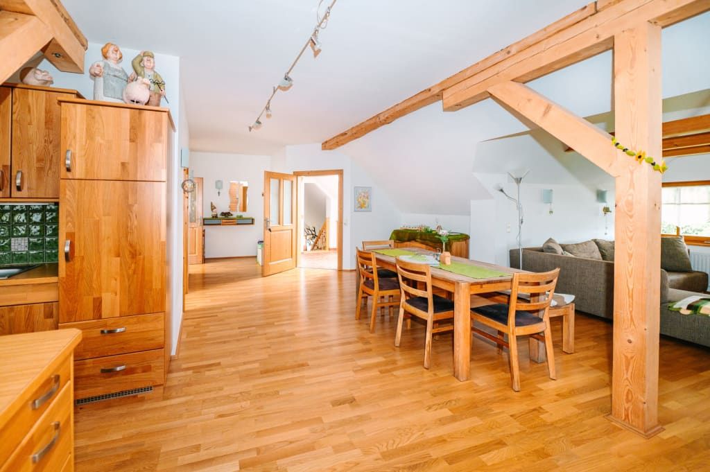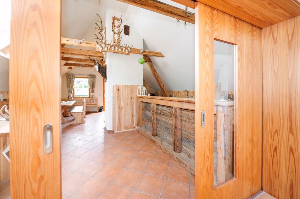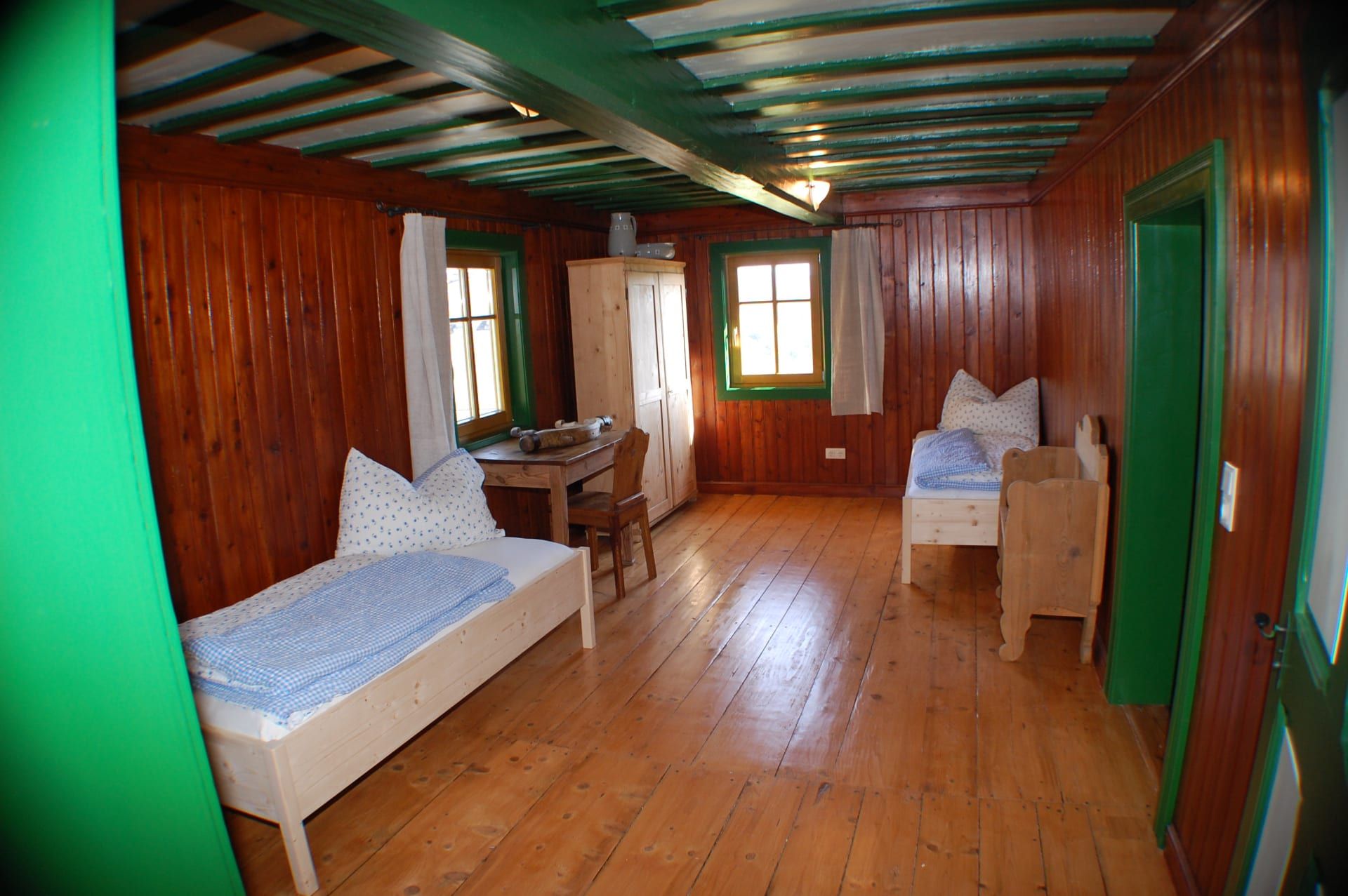 Die Ferienwohnung befindet sich im Altbauteil und wurde liebevoll und sorgfältig renoviert. Die alten Lärchenböden, Wandvertäfelungen und Holztüren wurden behalten und sorgen für ein ganz besonderes Wohnambiente. Die Wohnung verfügt über eine sehr komplett ausgestattete Wohnküche (mit Geschirrspüler, E-Herd mit Backrohr, Kaffeemaschine, Wasserkocher, Mixer, Toaster, ...), Erwachsenenschlafzimmer, Kinderschlafzimmer, Bad mit Waschtisch, Dusche, Fön,. Bis zu 6 Personen mit eigenem Balkon