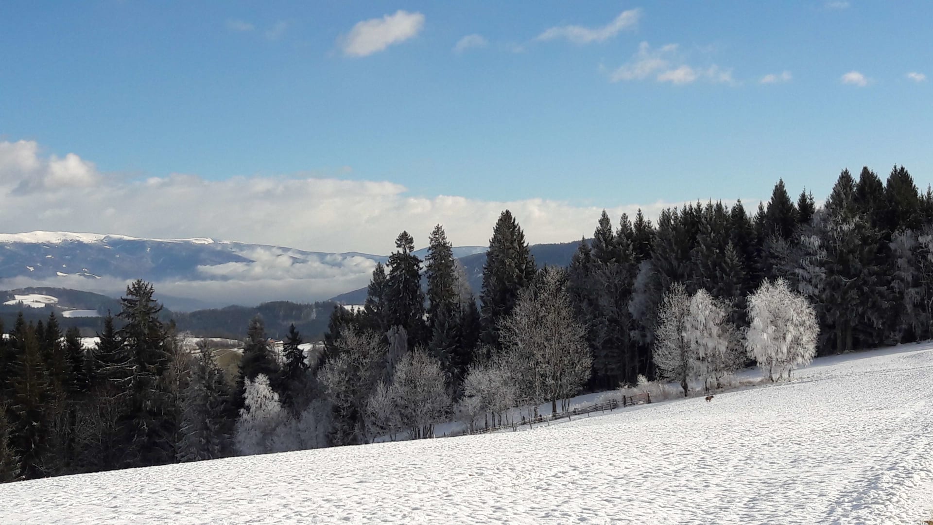 Hier kannst du bei gemütlichen Winterspaziergängen klare, frische Bergluft einatmen und die Winterkulisse der wunderschönen Kraßnitz genießen! 🌨️🚶♂️