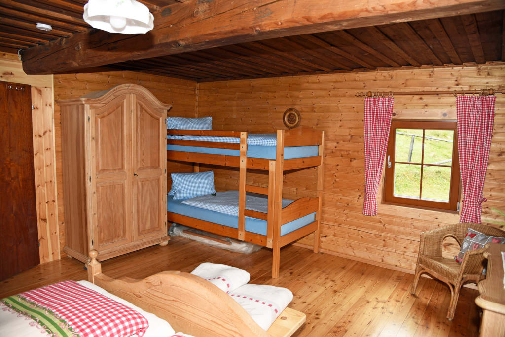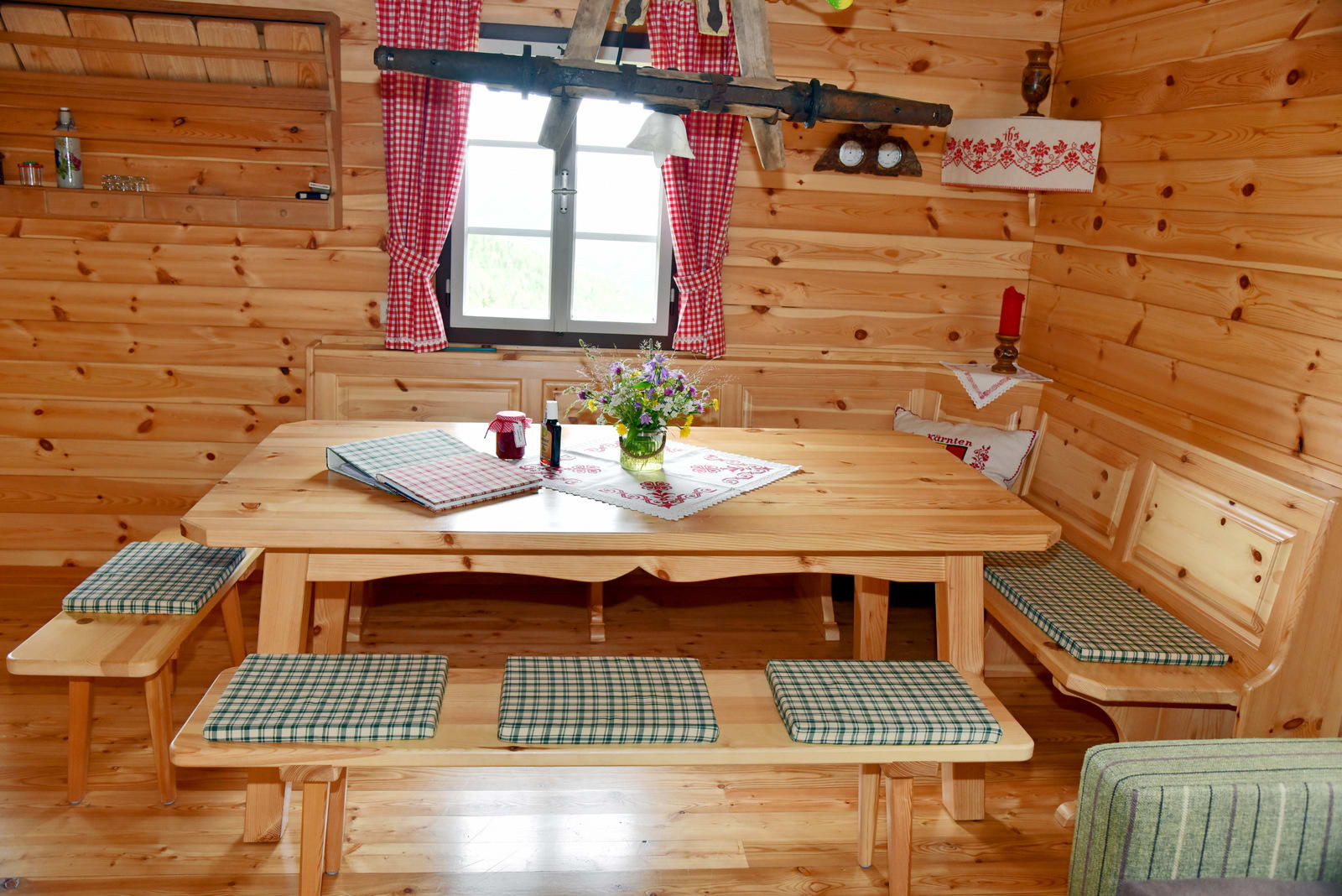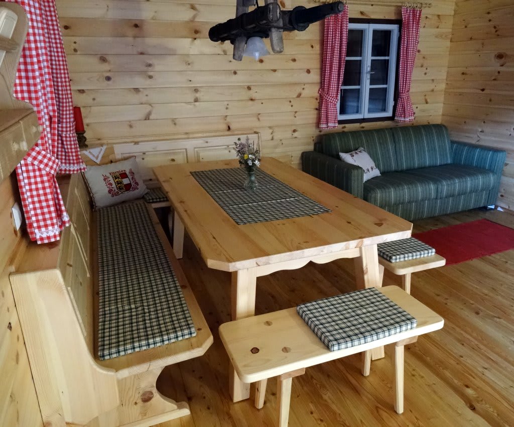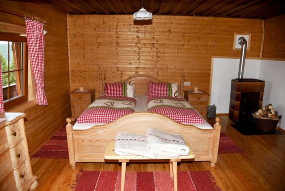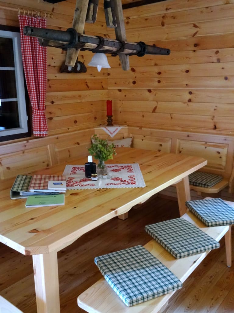 Apropos gemütlich: Trotz herrlicher Alleinlage auf 1140 Metern Seehöhe spielt dieses ehemalige Bergbauernhaus für bis zu 6 Personen alle Stückln: Die Möbel sind aus eigenem Holz gefertigt, gekocht wird auf dem Holzherd. Die Couch in der Wohnstube bietet 2 Personen Platz, ein Schlafzimmer mit Doppelbett und Stockbett ist ideal für Familien. Kühlschrank und Beleuchtung werden per Solarstrom betrieben, euer Handy (super Empfang!) oder euren Laptop könnt ihr ebenfalls aufladen. Und eure eigenen Batterien? Die ladet ihr am besten beim Spazieren im Wald auf, beim Schwammerlsuchen oder beim Grillen vor der Hütte.
