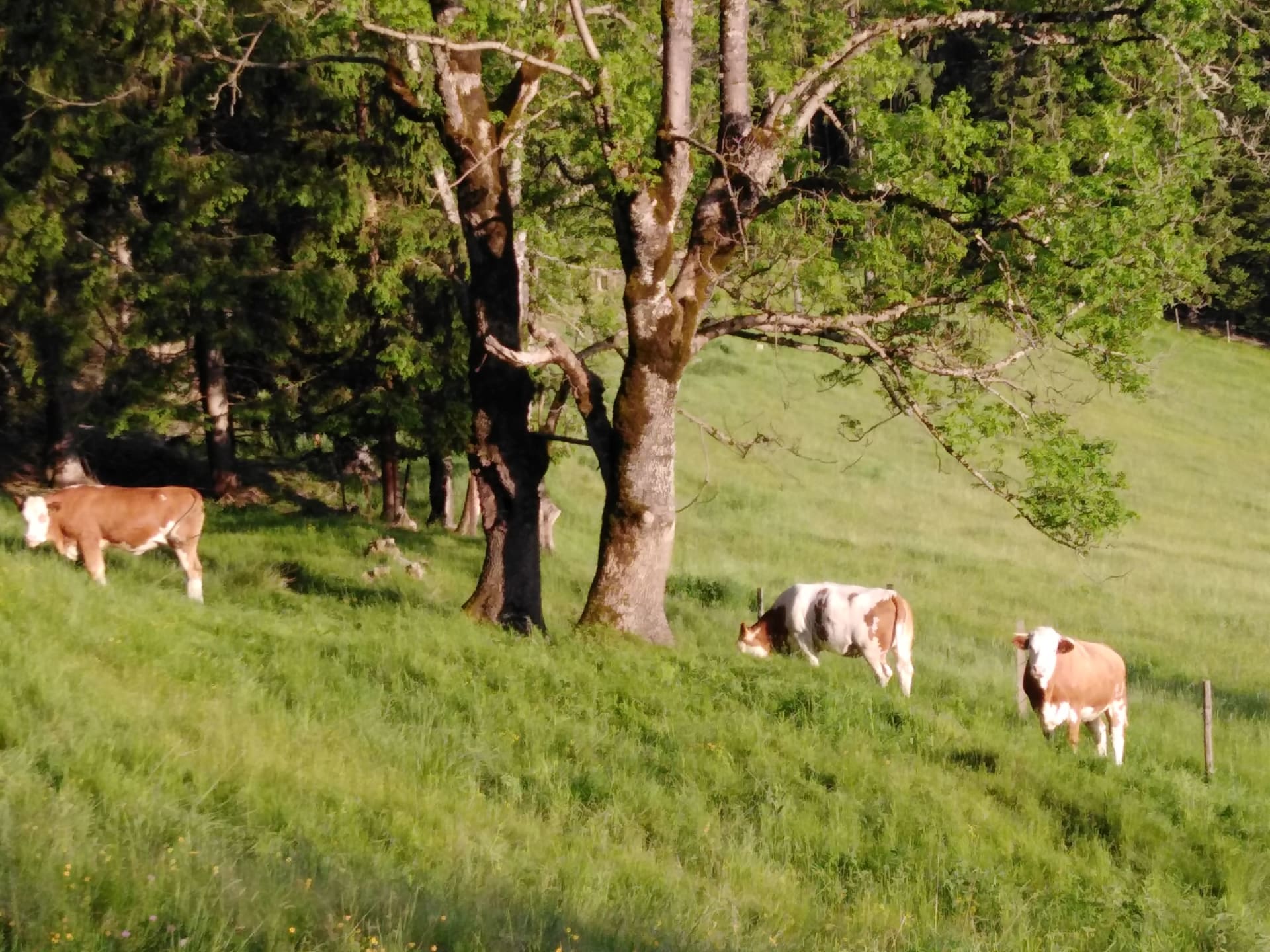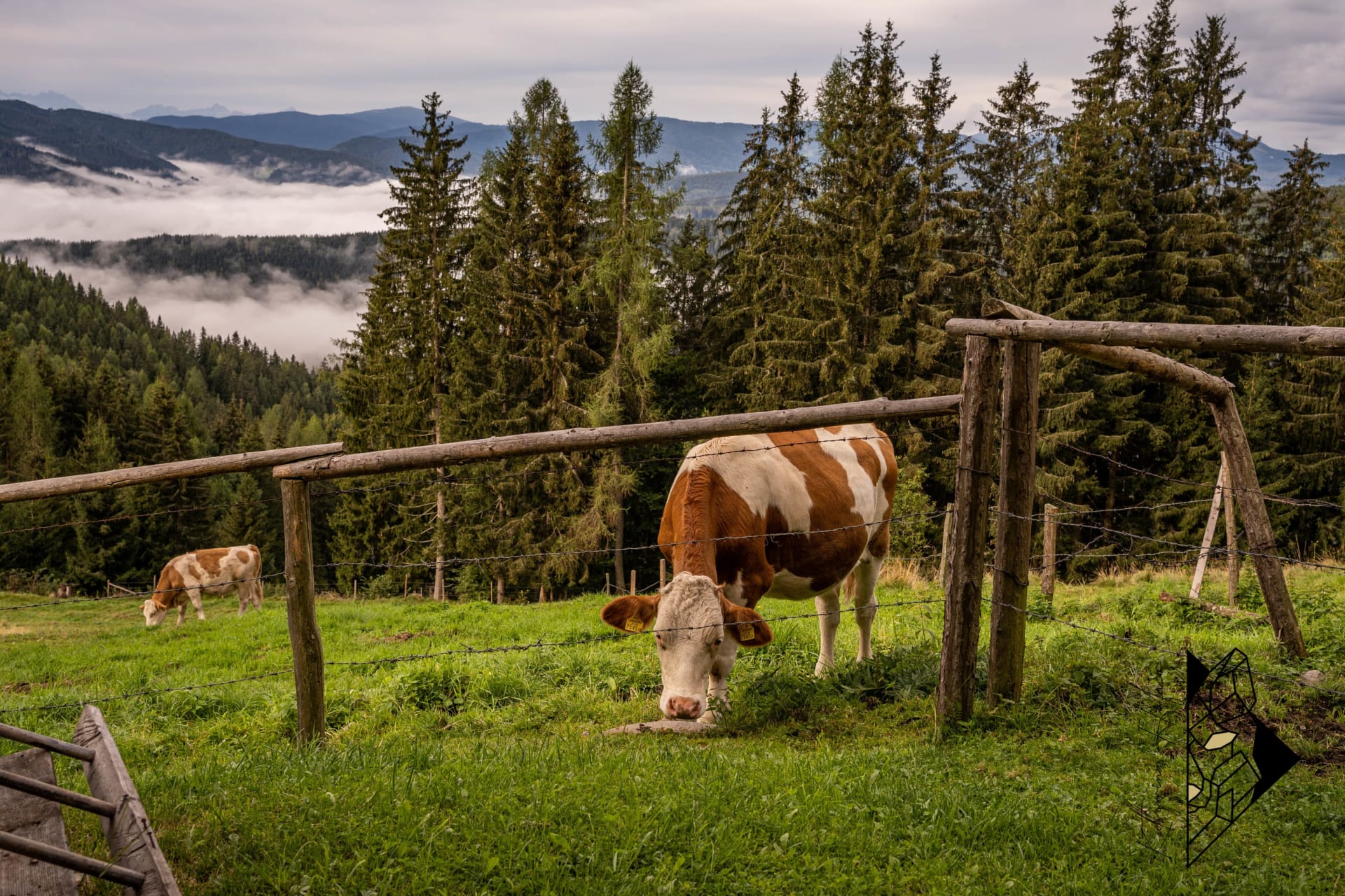 „Wo liegt eure Hütte?“, werden wir gerne gefragt. Darauf gibt es viele Antworten - und alles sind gleichermaßen wahr: „In Sternschnuppen-Lage“, zum Beispiel. „Mitten im Wald, wunderbar zum Wandern und Pilze suchen.“ „Zwischen Bäumen und Bergen, mit herrlichem Weitblick.“ Oder: „Im Kuh-Wohnzimmer.“ Denn tatsächlich werdet ihr den Fernseher nicht vermissen - von der gemütlichen Wohnküche aus könnt ihr live den Kühen beim Grasen zusehen.