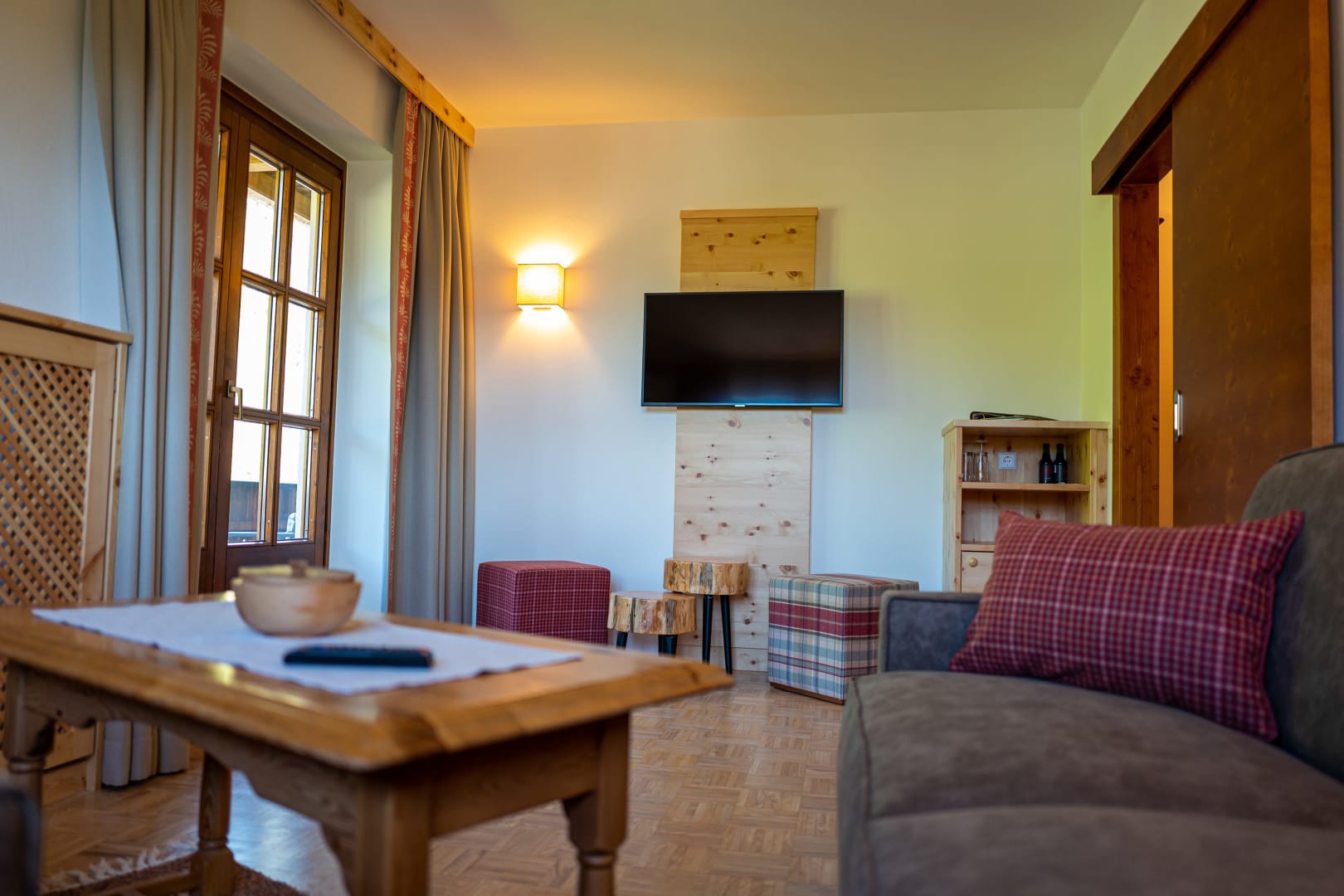 Doppelzimmer mit Wohnteil, Bad oder Dusche, WC getrennt, Balkon, Minibar, TV, Telefon, W-Lan
