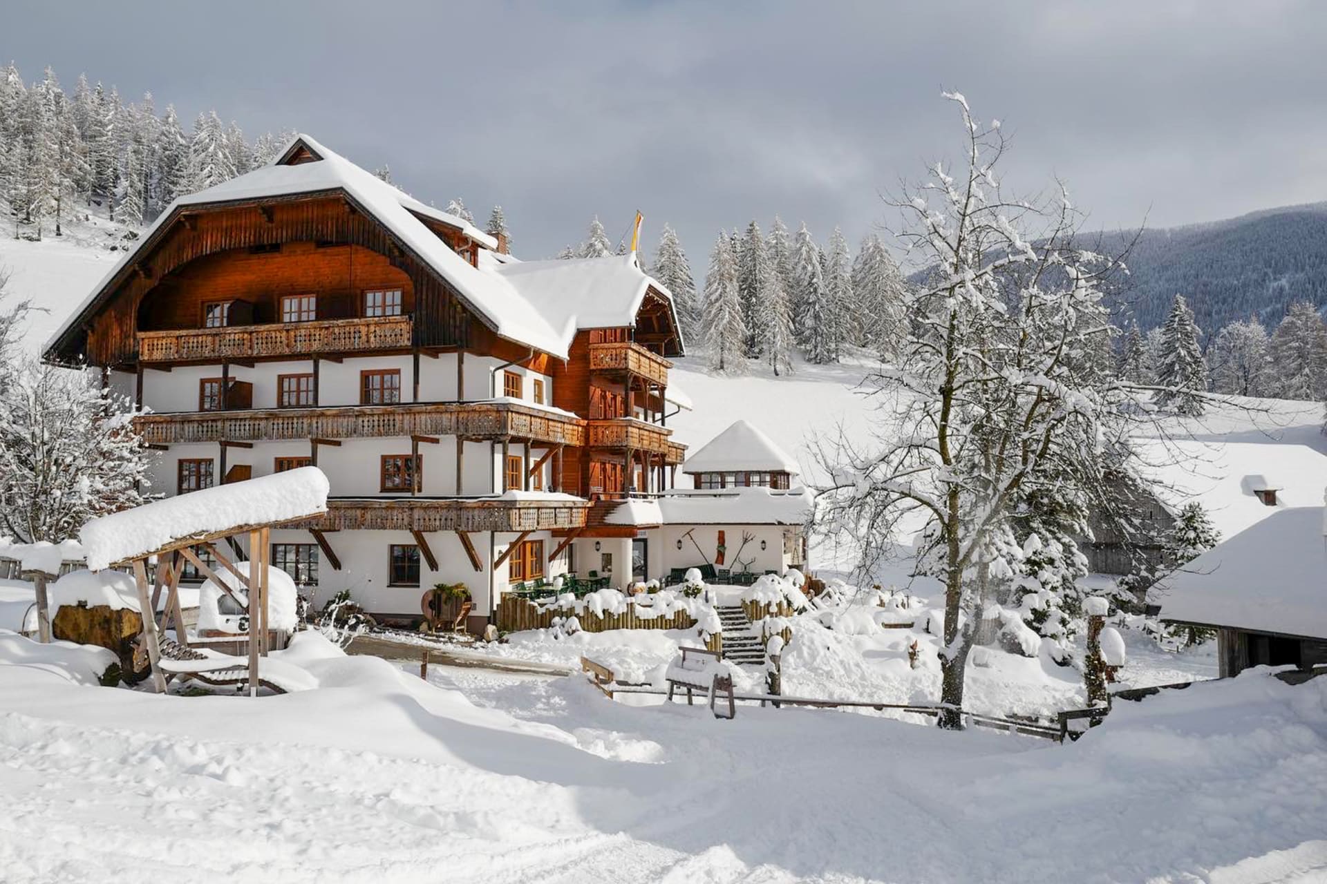 Erkunde die vielen Geschichten des Bergdorfes St. Oswald und der Familie Hinteregger mit ihrer mehr als 550 jahre alten Tradition. Genießt unsere regional bäuerlichen Slow Food Produkte zum Frühstück und Abendessen.