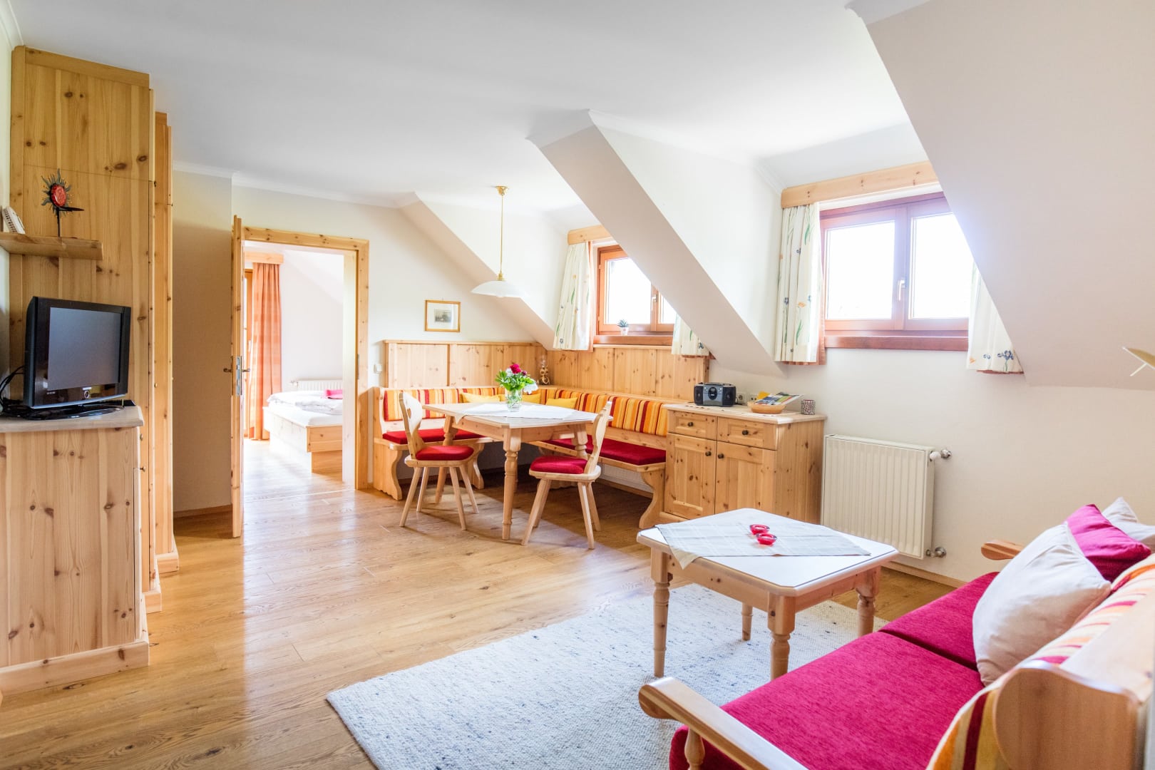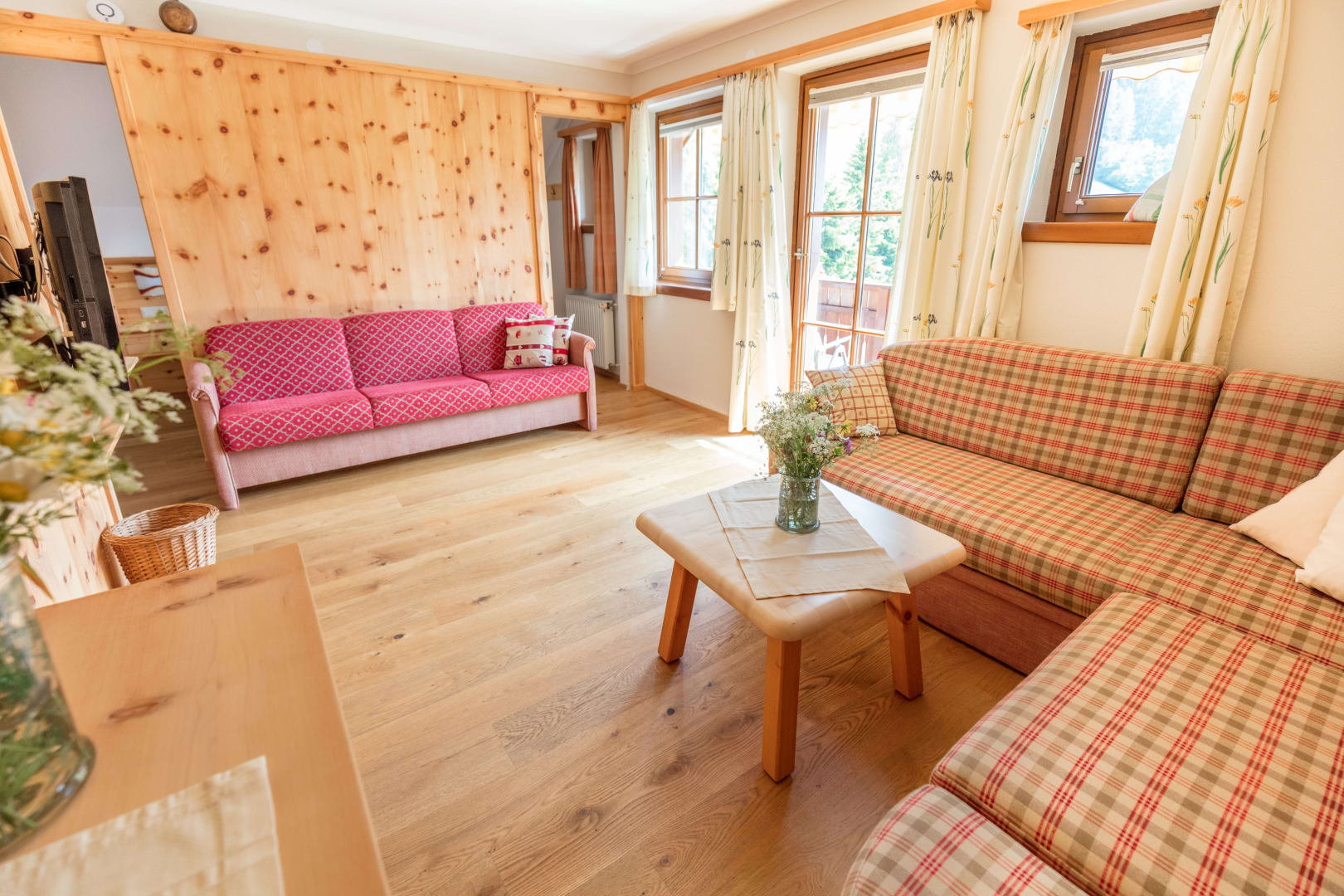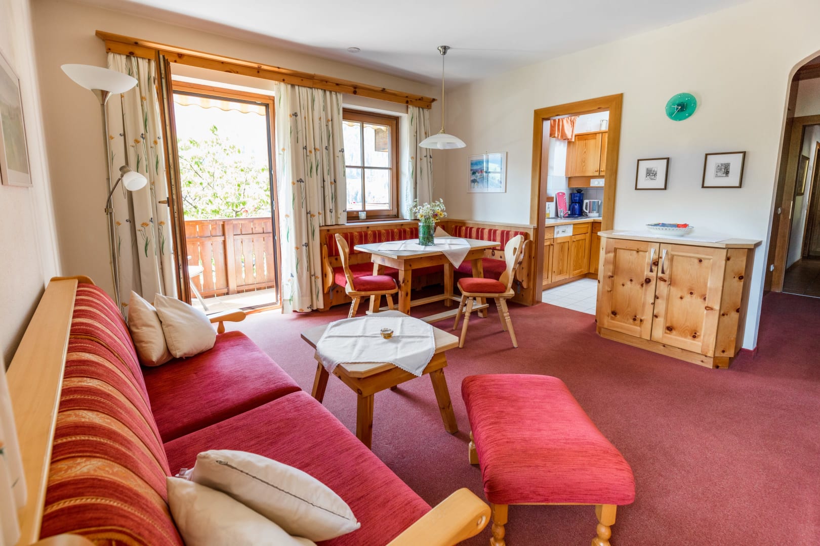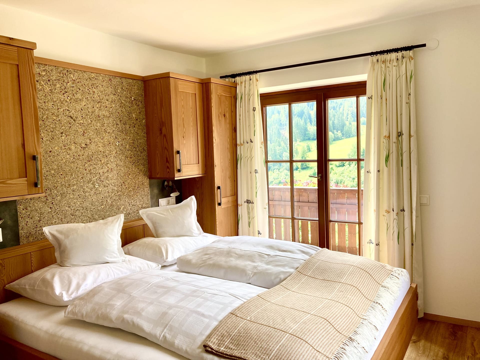 Helle sonnige Zirbenholzwohung mit einem duftenden Zirbenschlafzimmer, Schlaf- / Wohnraum, komplett eingerichtete Küche mit Essecke, Dusche/WC, großer Balkon mit herrlichem Blick auf die Berge und in das Kirchheimer-Tal.