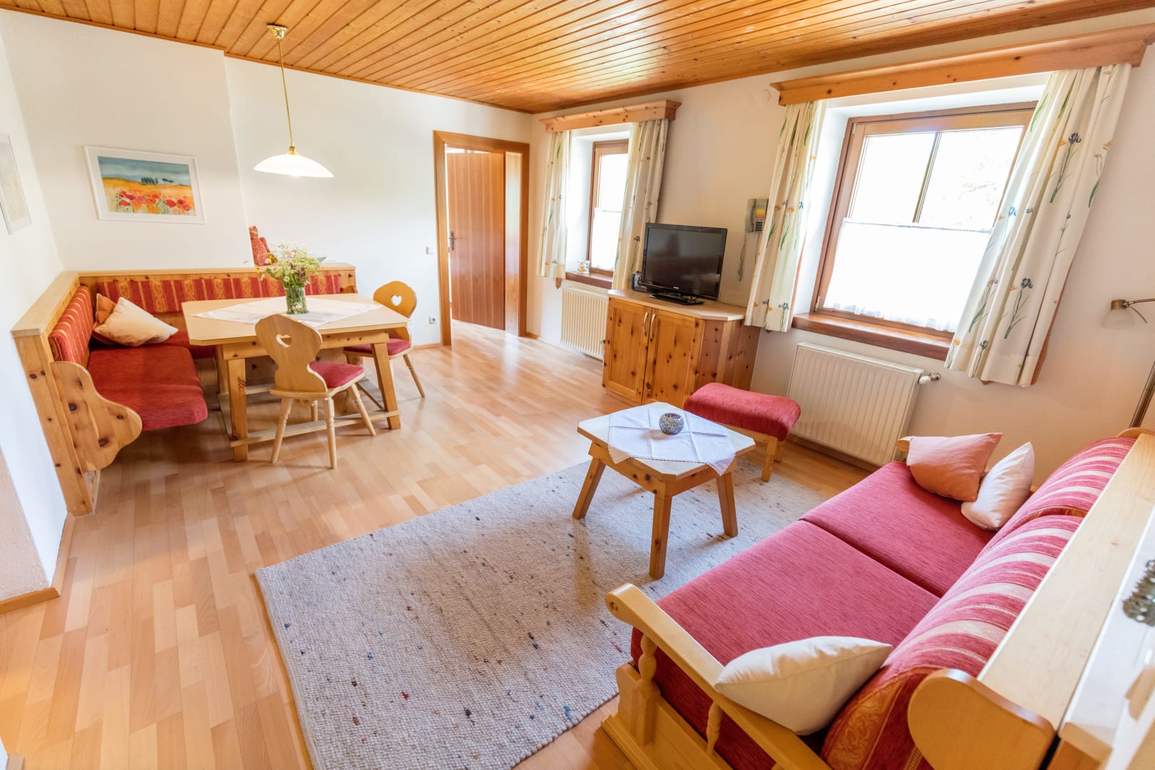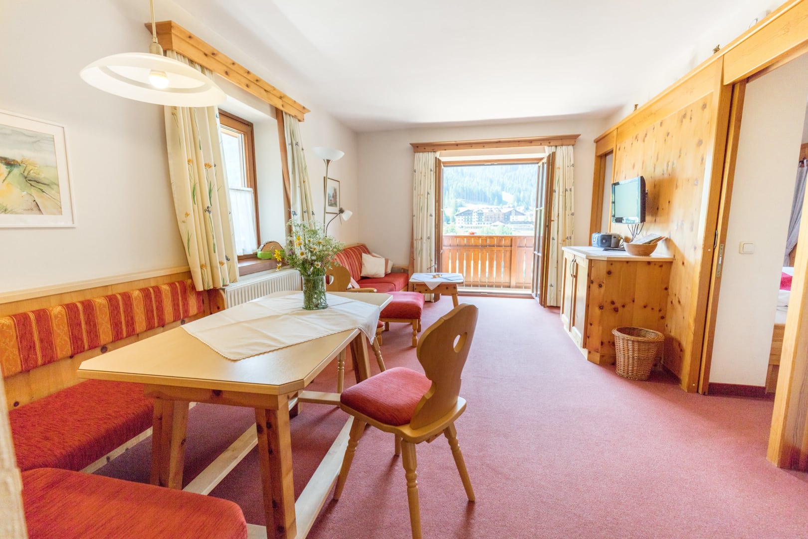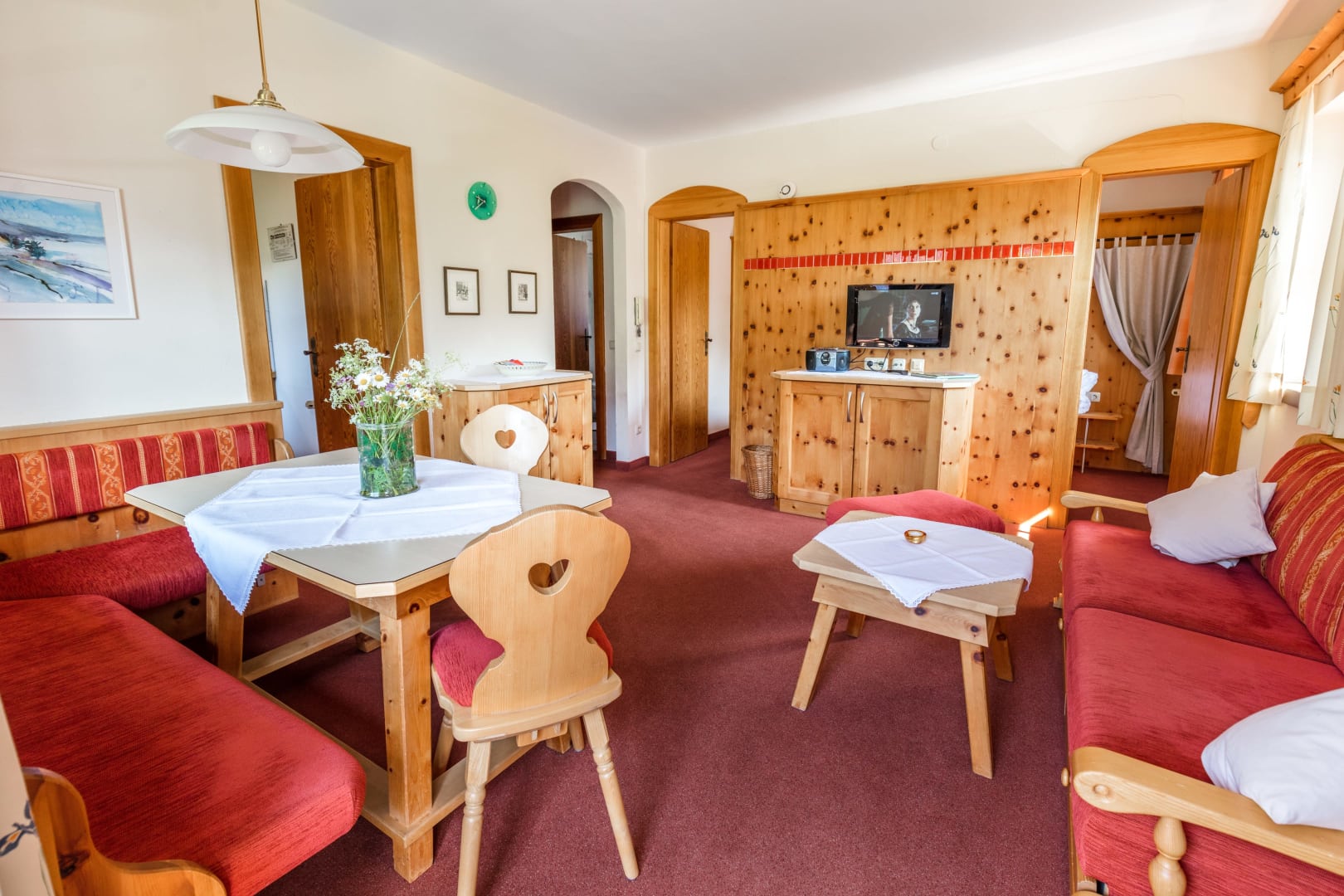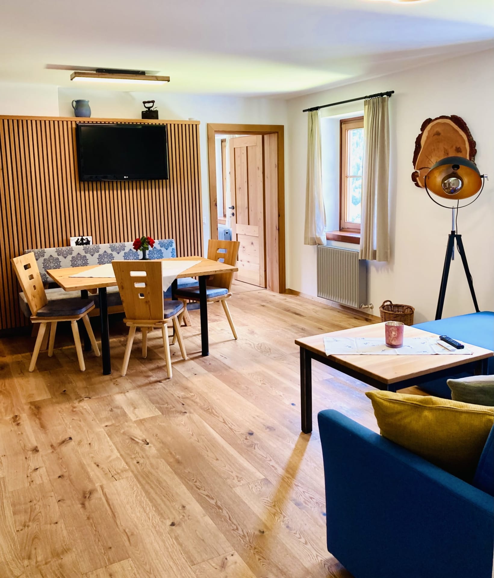 Helle sonnige Zirbenholzwohung mit einem duftenden Zirbenschlafzimmer, Schlaf- / Wohnraum, komplett eingerichtete Küche mit Essecke, Dusche/WC, großer Balkon mit herrlichem Blick auf die Berge und in das Kirchheimer-Tal.