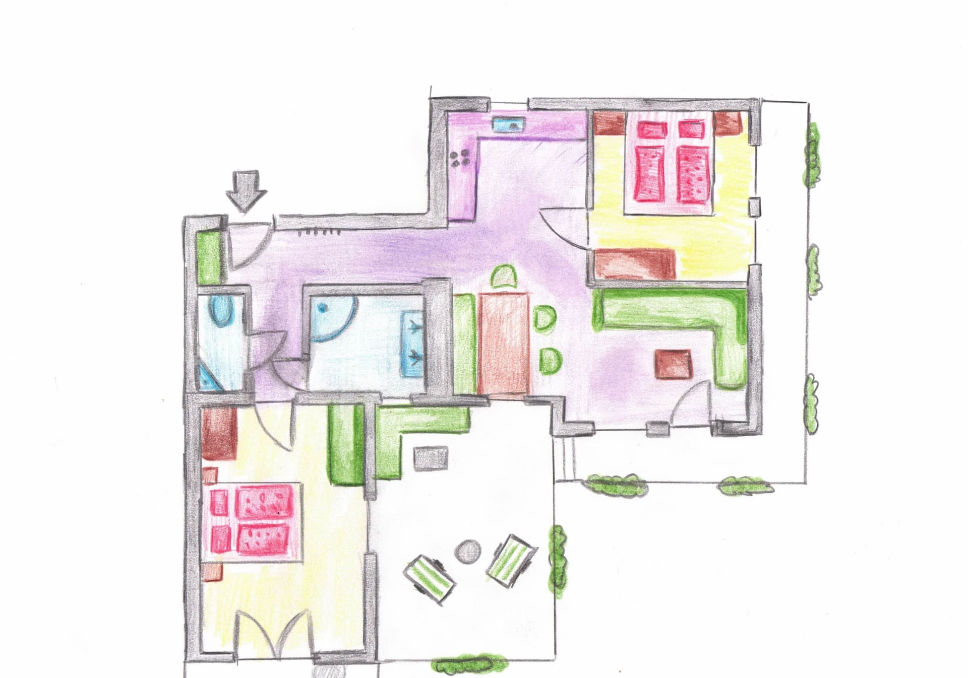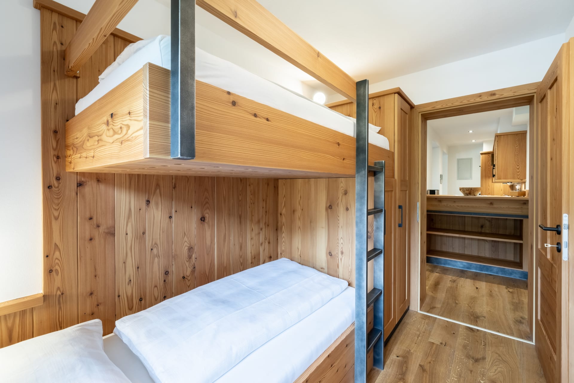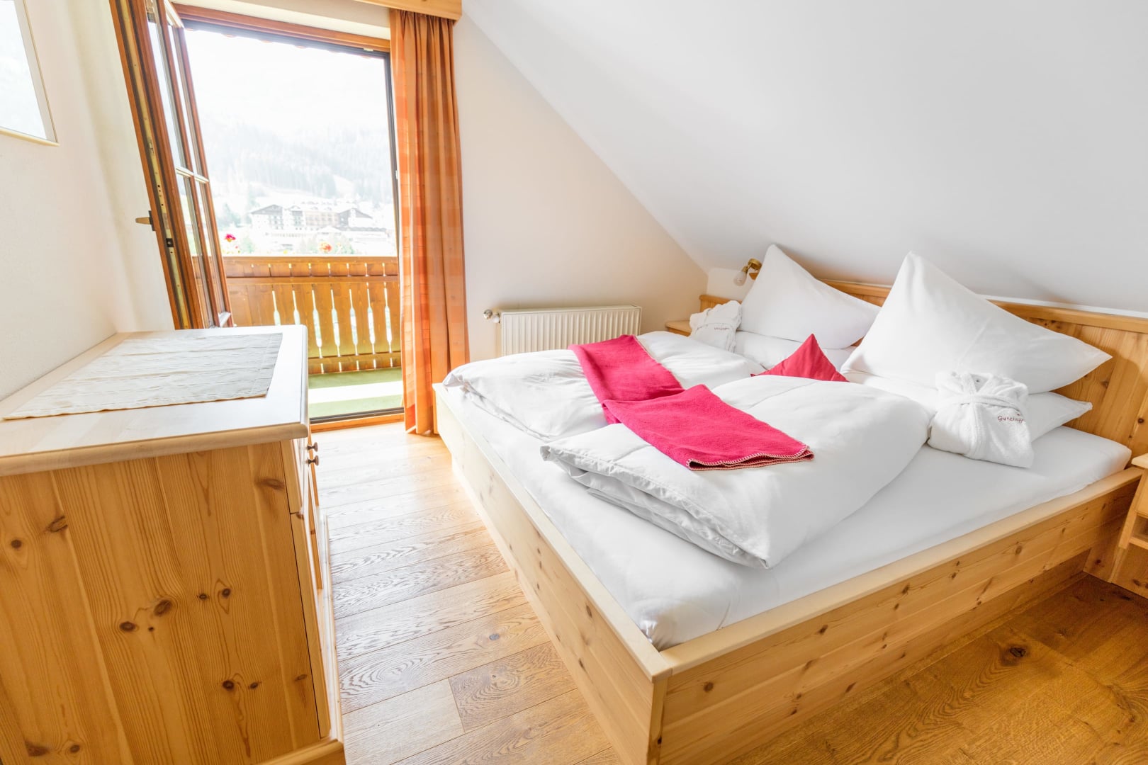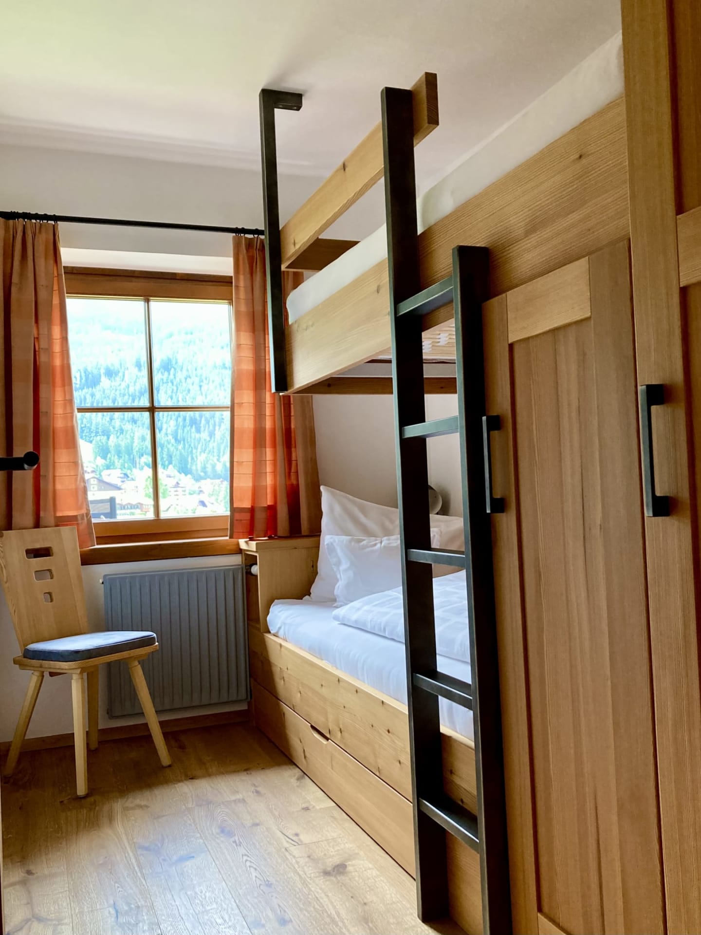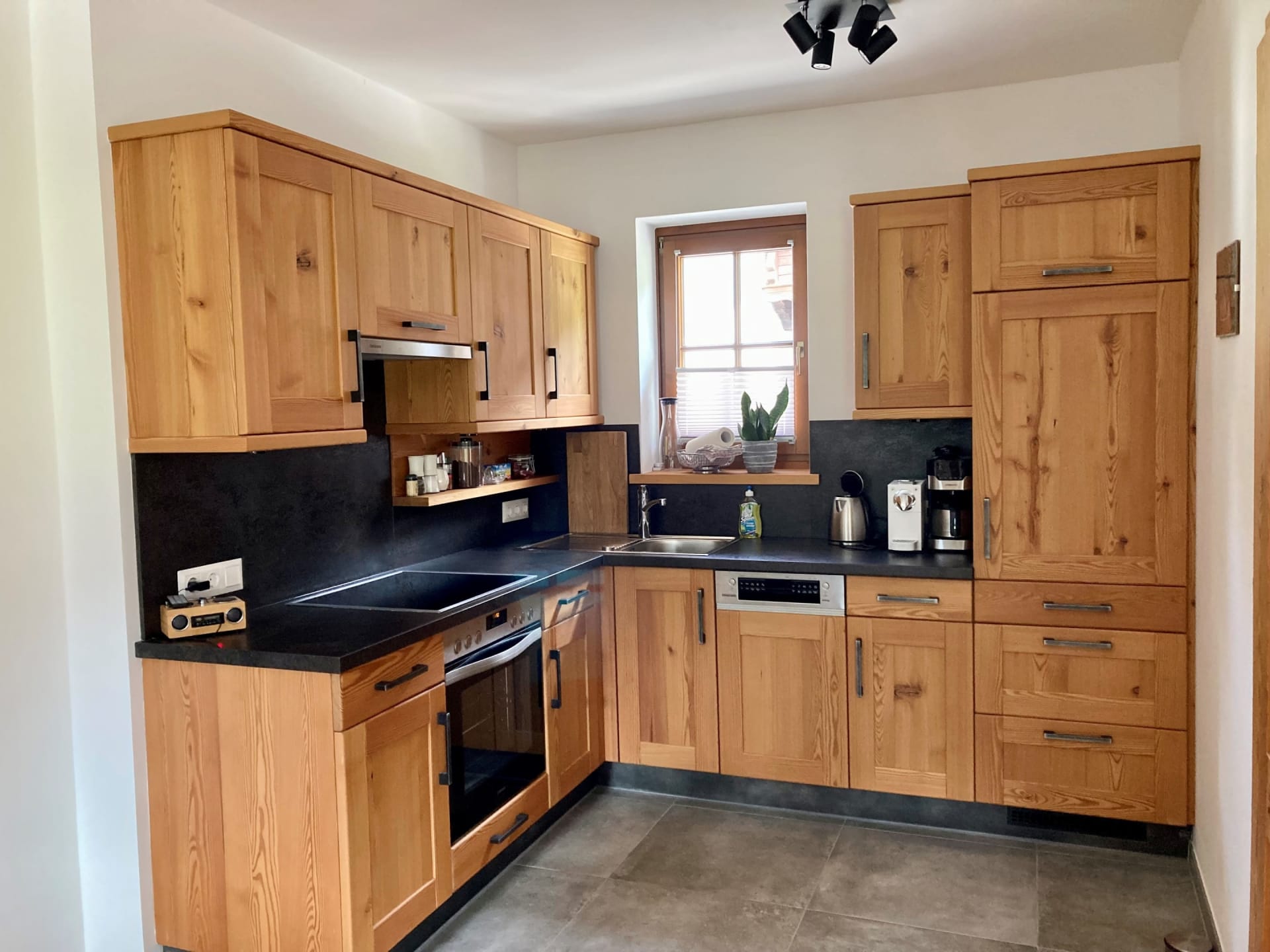 Unser Appartement aus heimischen Lärchenholz ist ausgestattet mit einer voll eingerichteten Küche, zwei Schlafzimmer, Wohnraum, Bad, WC, Radio, Sat-TV, WLAN und einer großen Terrasse mit Blick auf das Kirchheimertal.