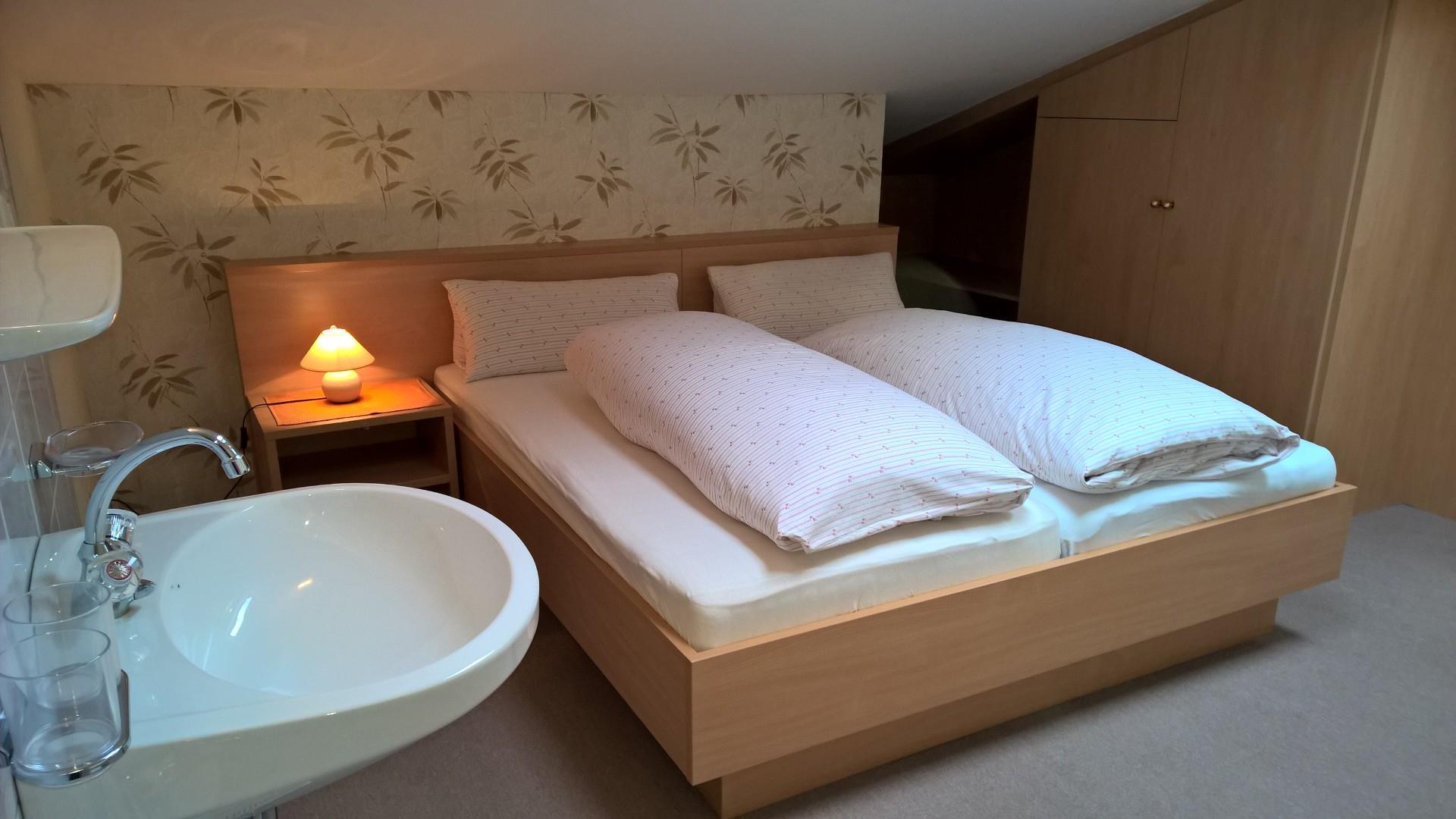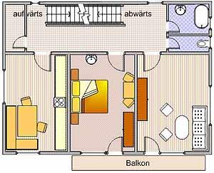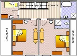 Größe: ca. 120 m², Ober- u. Dachgeschoß, große Wohnküche, Wohnzimmer, 1 Schlafzimmer mit Doppelbett und Waschbecken, Bad, WC, Südbalkon, 2 Mansardenzimmer mit Doppelbett und Dusche / WC sowie 1 kleines Einzelzimmer.
