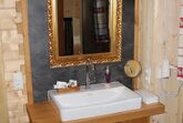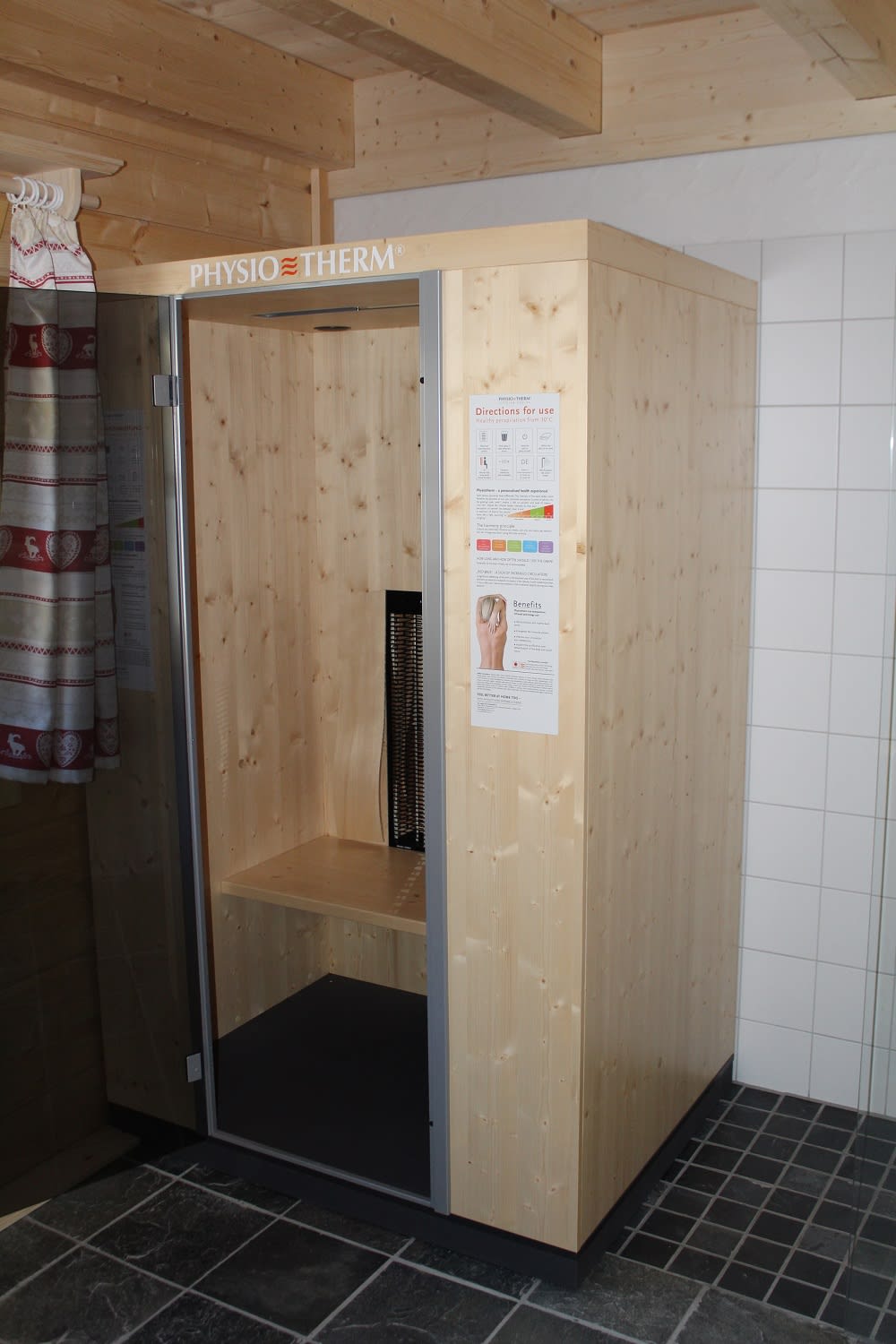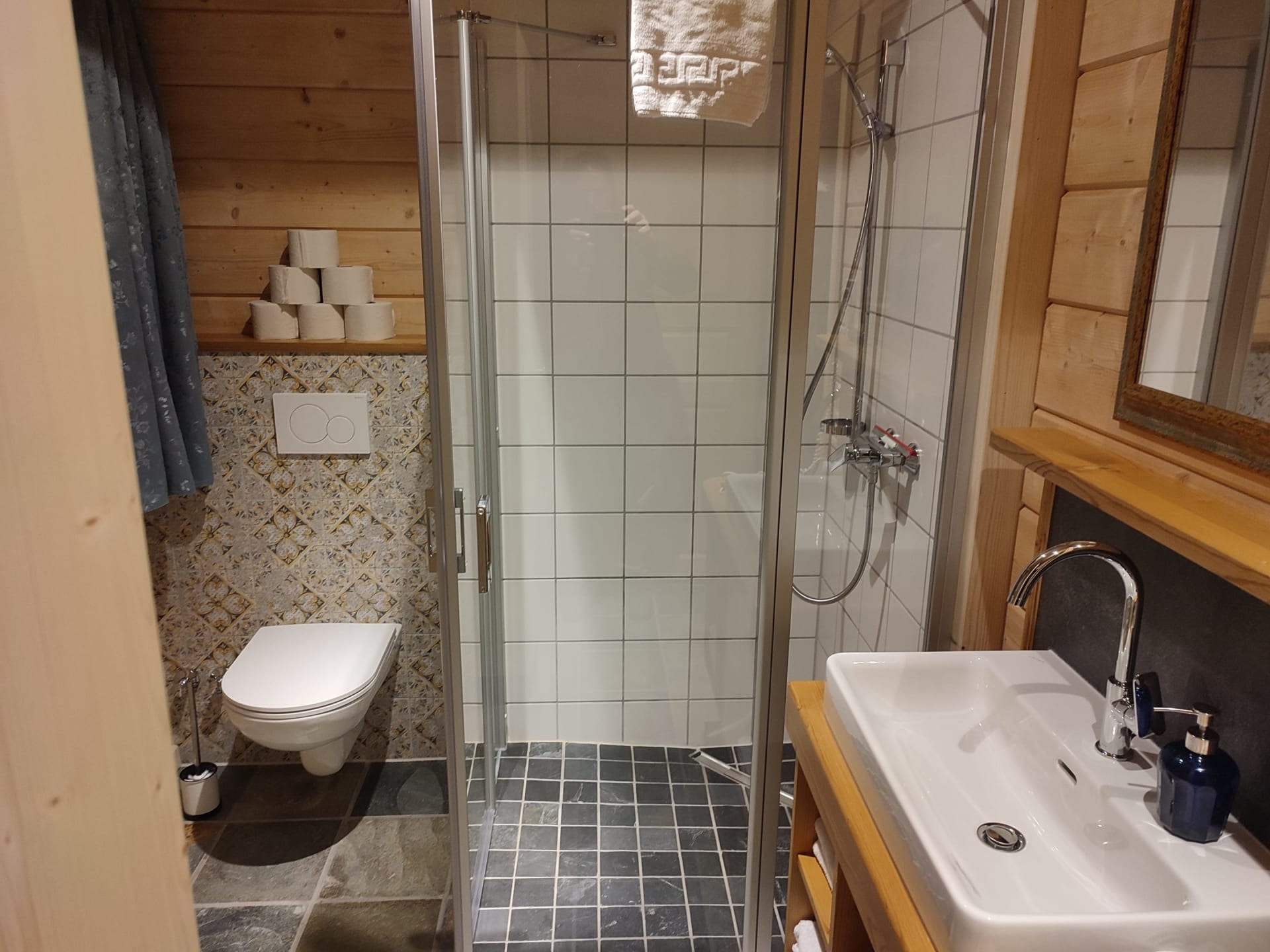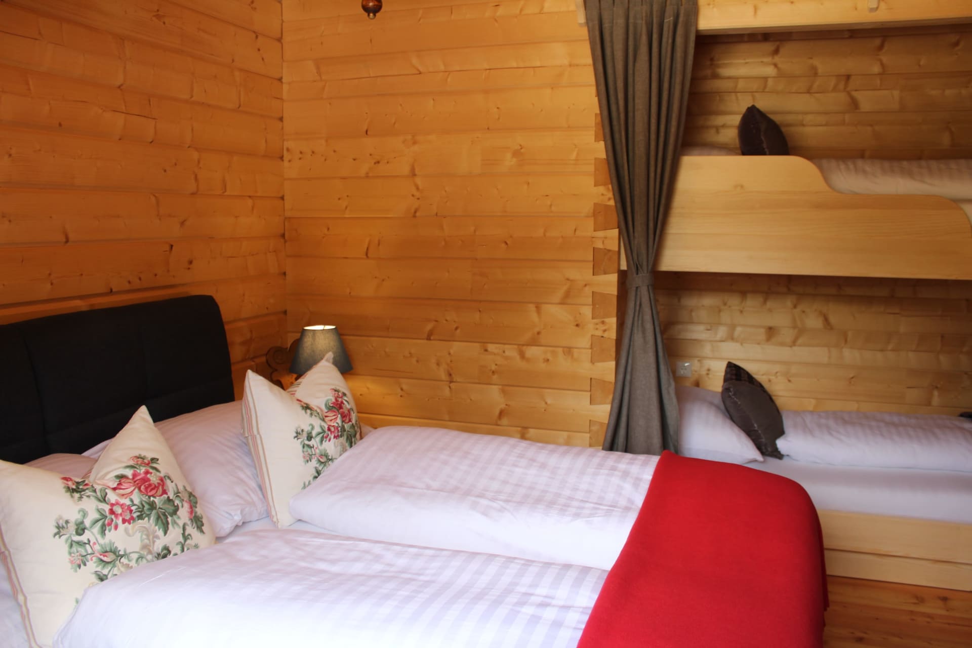 Als Ausstattung bieten wir eine komplett ausgestattete Massivholzwohnküche, eine Essecke mit Eckbank. Weiters ein Wohnzimmer mit ausziehbarer Couch, SAT Flachbild TV, ein Schlafzimmer mit Box Spring Doppelbett, Stockbett, ein Bad mit Infrarotkabine, Dusche und Waschbecken. Das WC ist separat. Die Böden sind aus Natursteinen, im Schlafzimmer ein heimischer Lärchen Boden. Beheizt wird das Chalet über einer Fußbodenheizung. Sie lieben es urig, dann sind Sie genau richtig und heizen das Chalet zusätzlich mit einem Kachelofen mit kleiner Herdplatte.